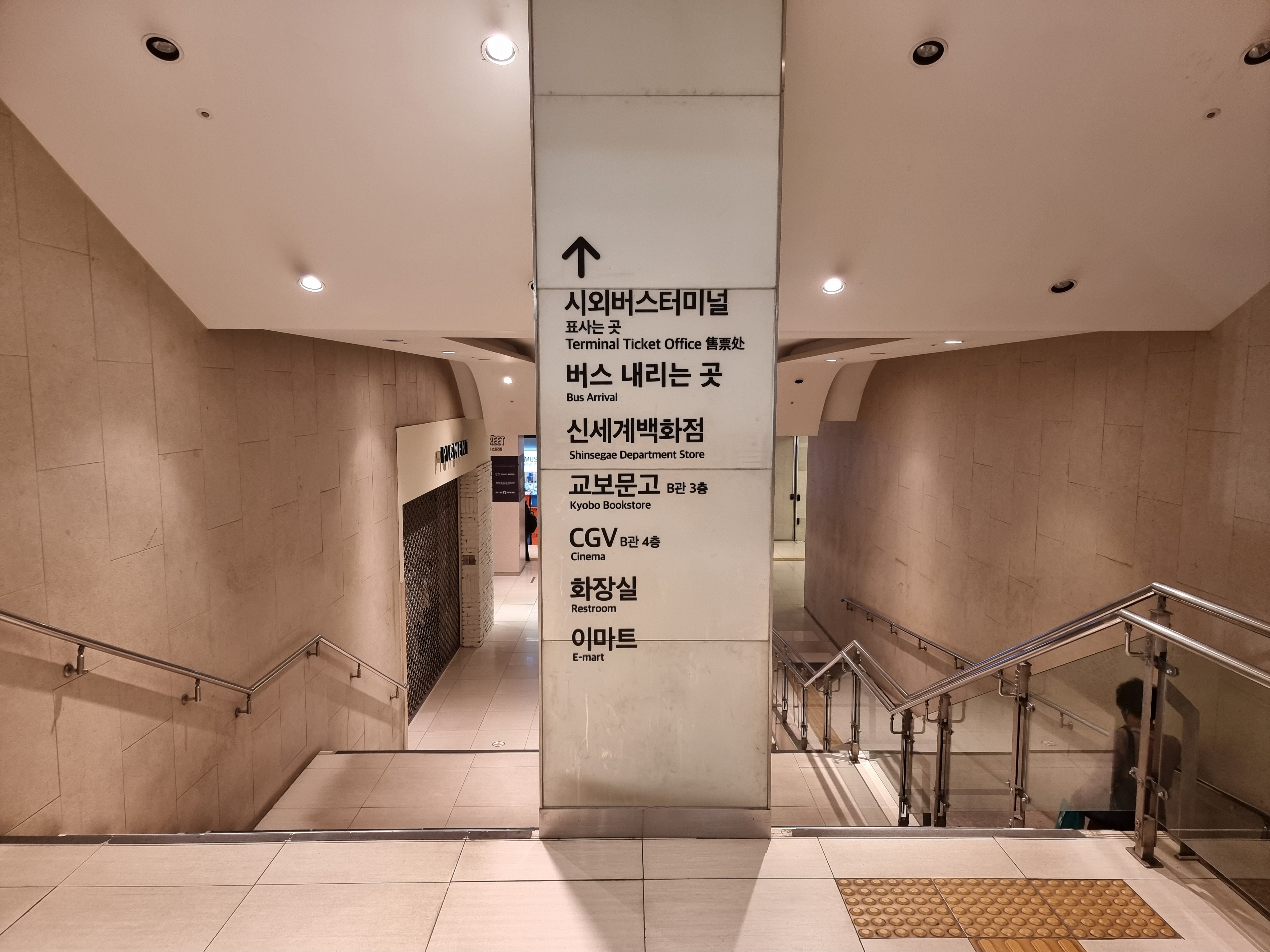 신세계 백화점앞 빨강가방 조형물 옆에 천안터미널 입구가 있다.입구를 통해서 들어가서 지하로 내려가서 우측으로 보면 천안 시외버스 터미널 매표소가 나온다.