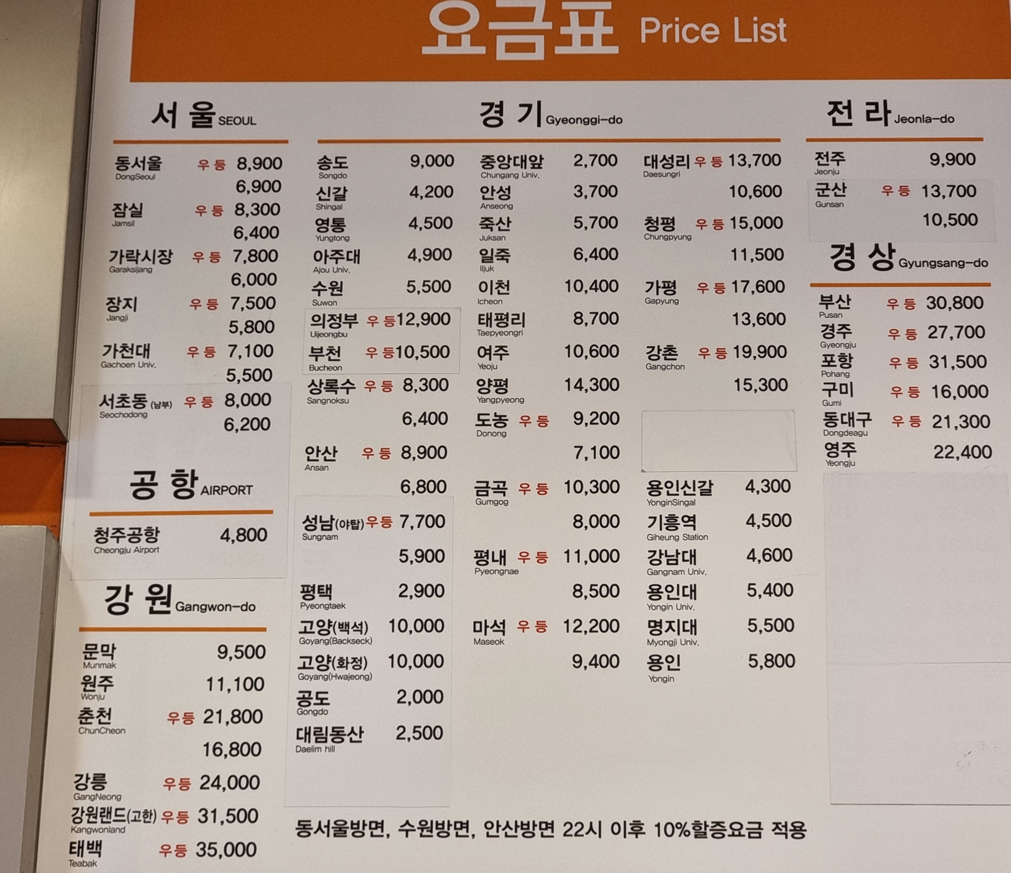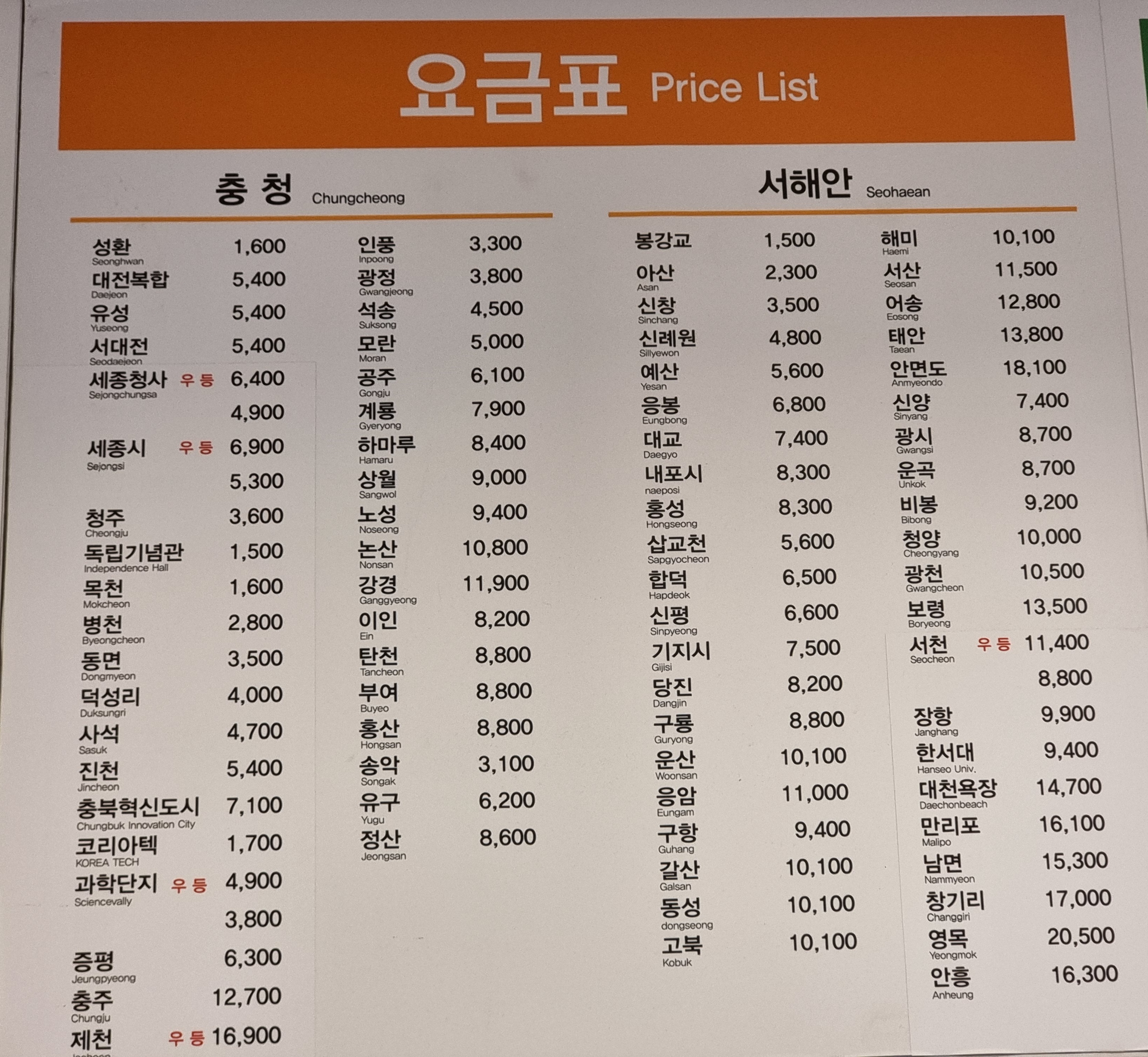 그리고 서초동 남부 터미널은 우등요금은 8,000원이고 일반은 6,200원이다.