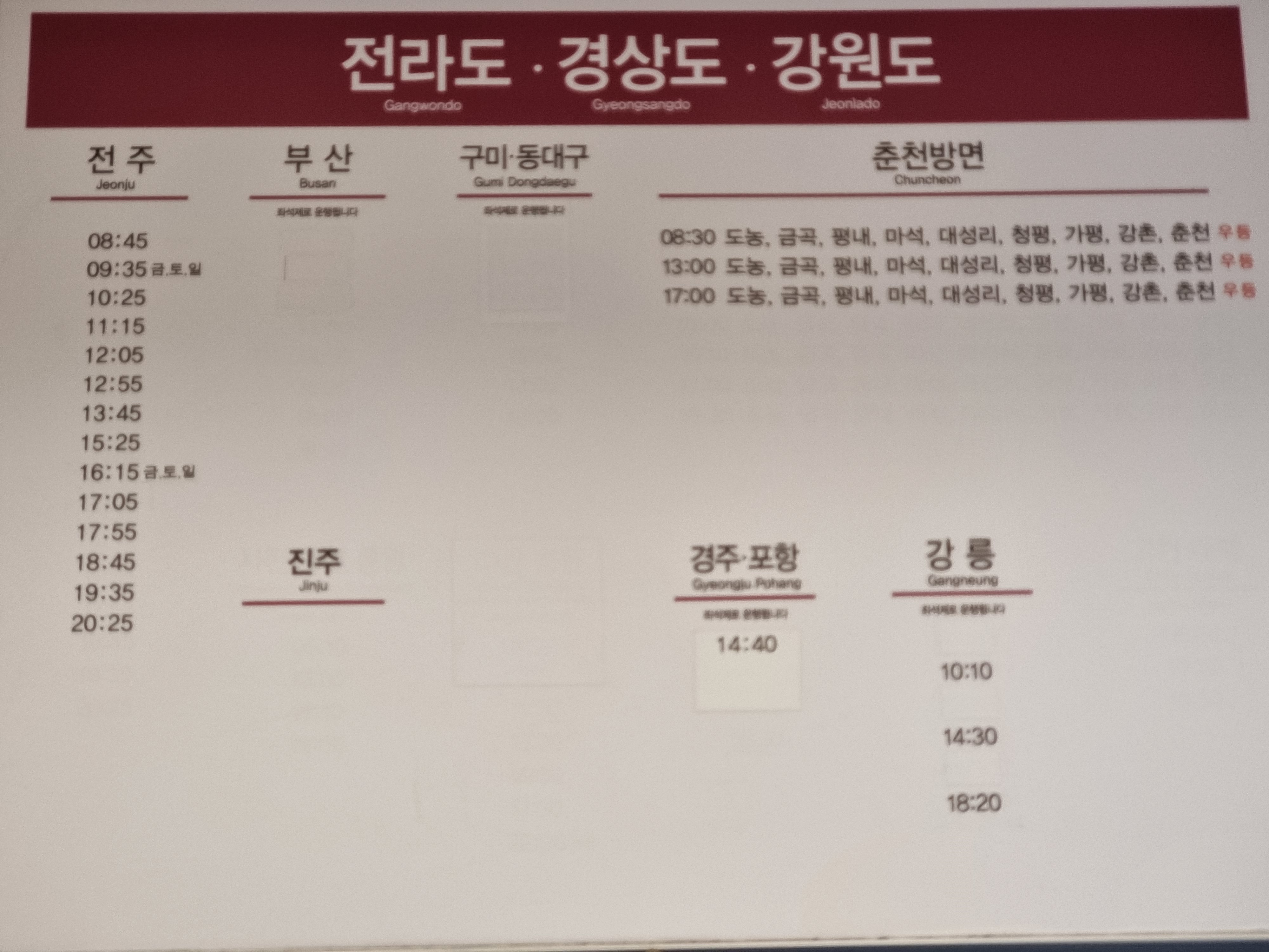2022년 3월1일 현재 천안 시외버스 터미널 시간표에 대하여 알아보자.