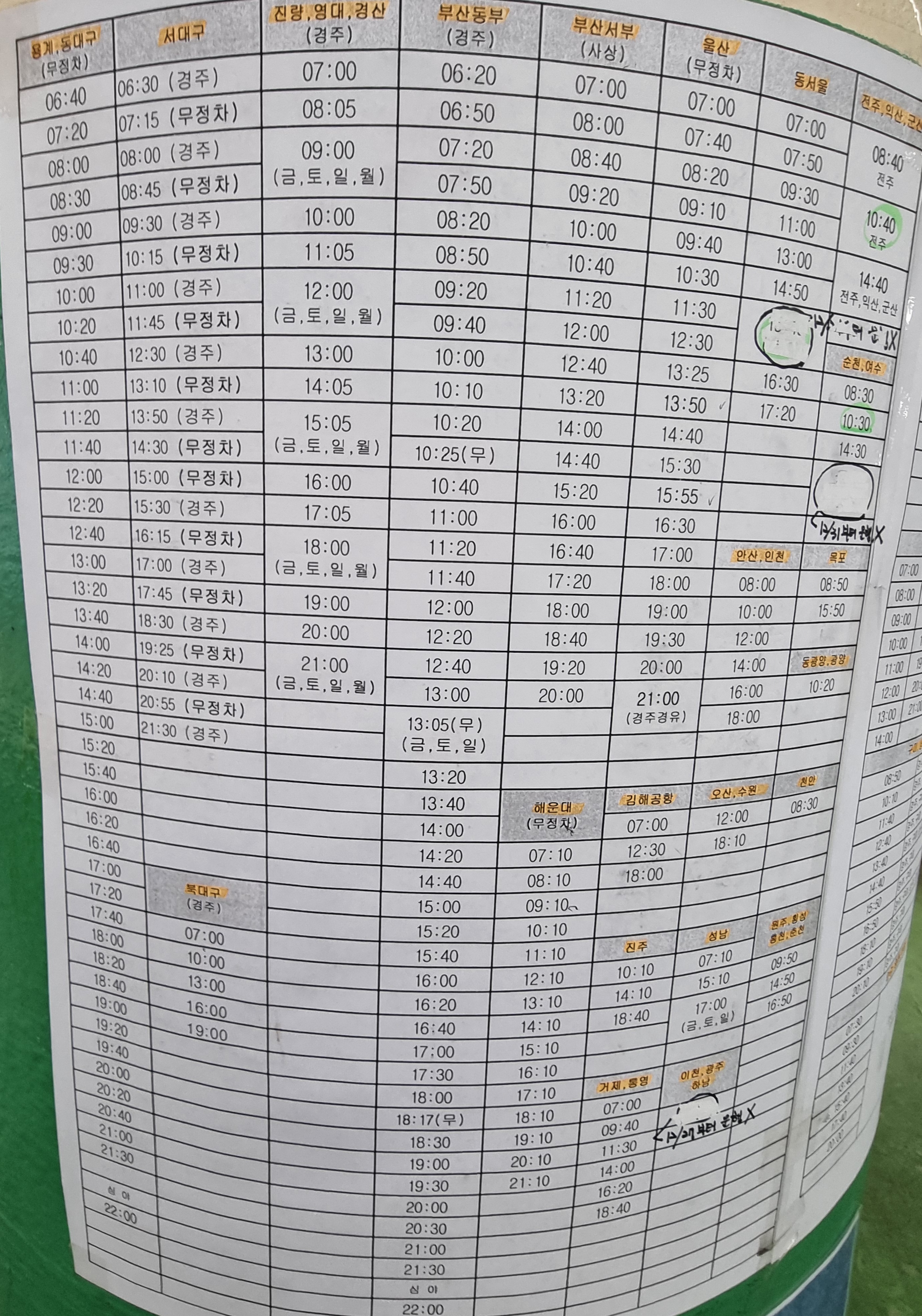 -경주,언양,양산,창원,김해,마산방면 시간표