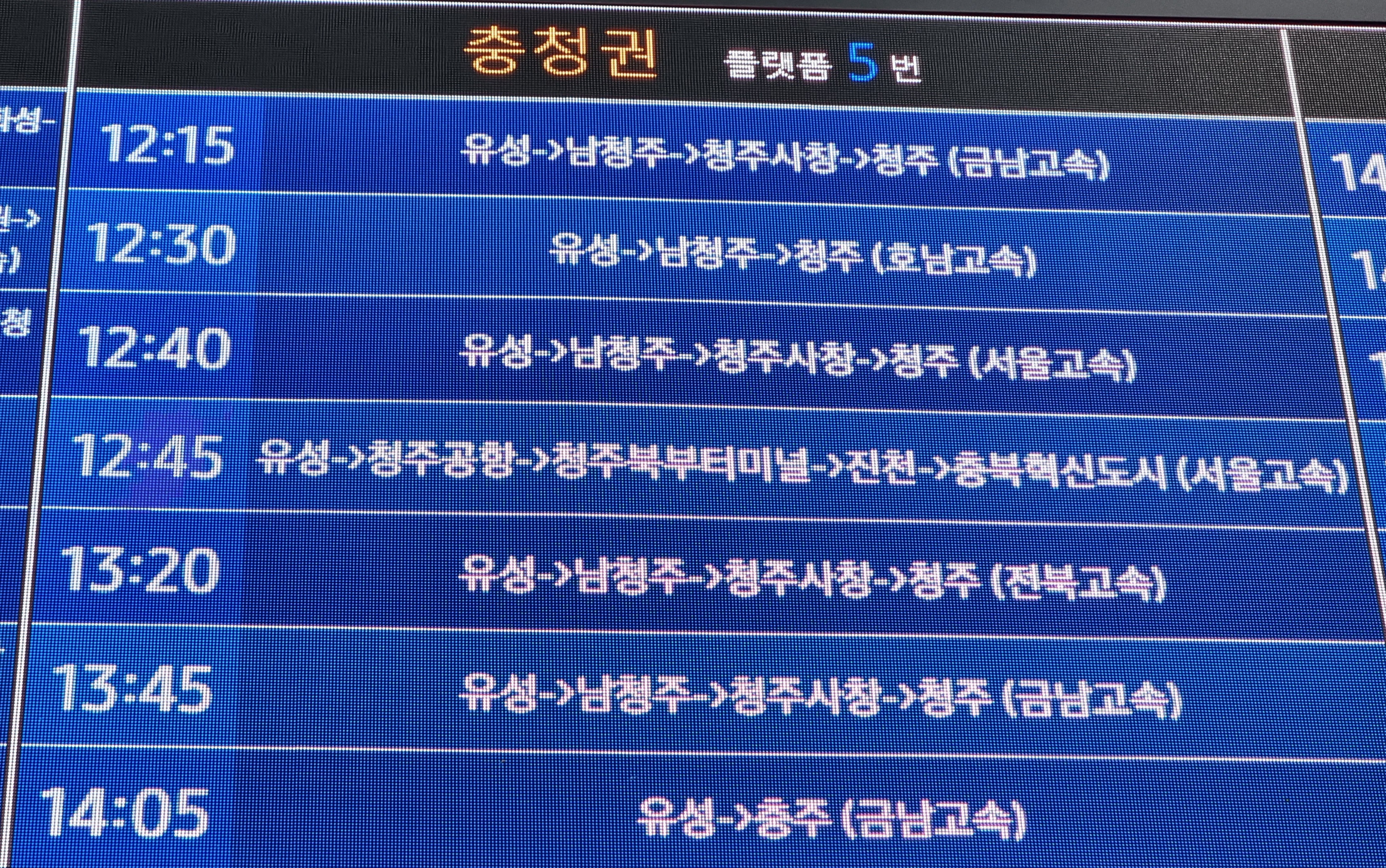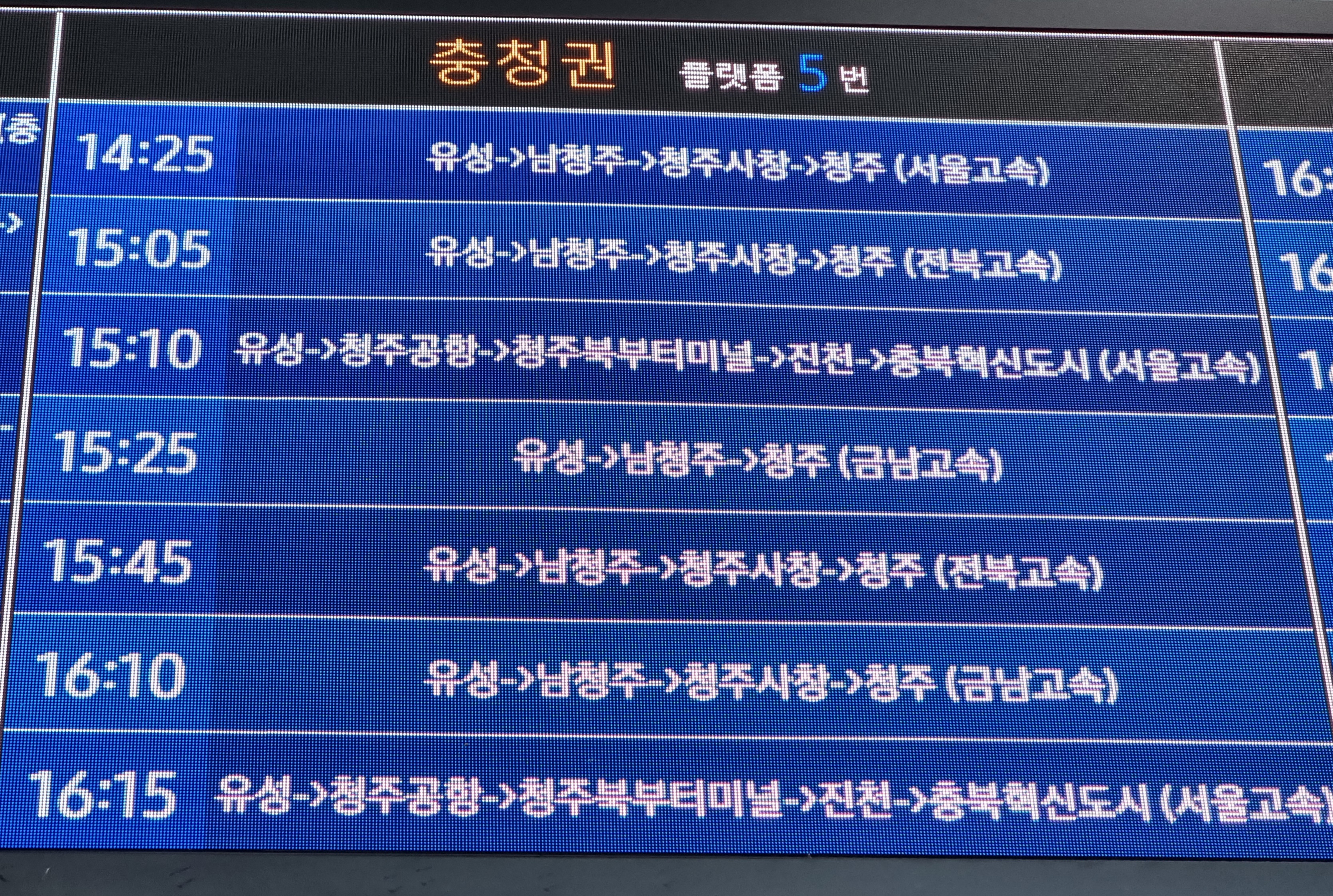 유성터미널에서 청주가는 버스는 07시 20분에 대전청사를 여유하여 남청주를 지나 청주까지 운행한다.