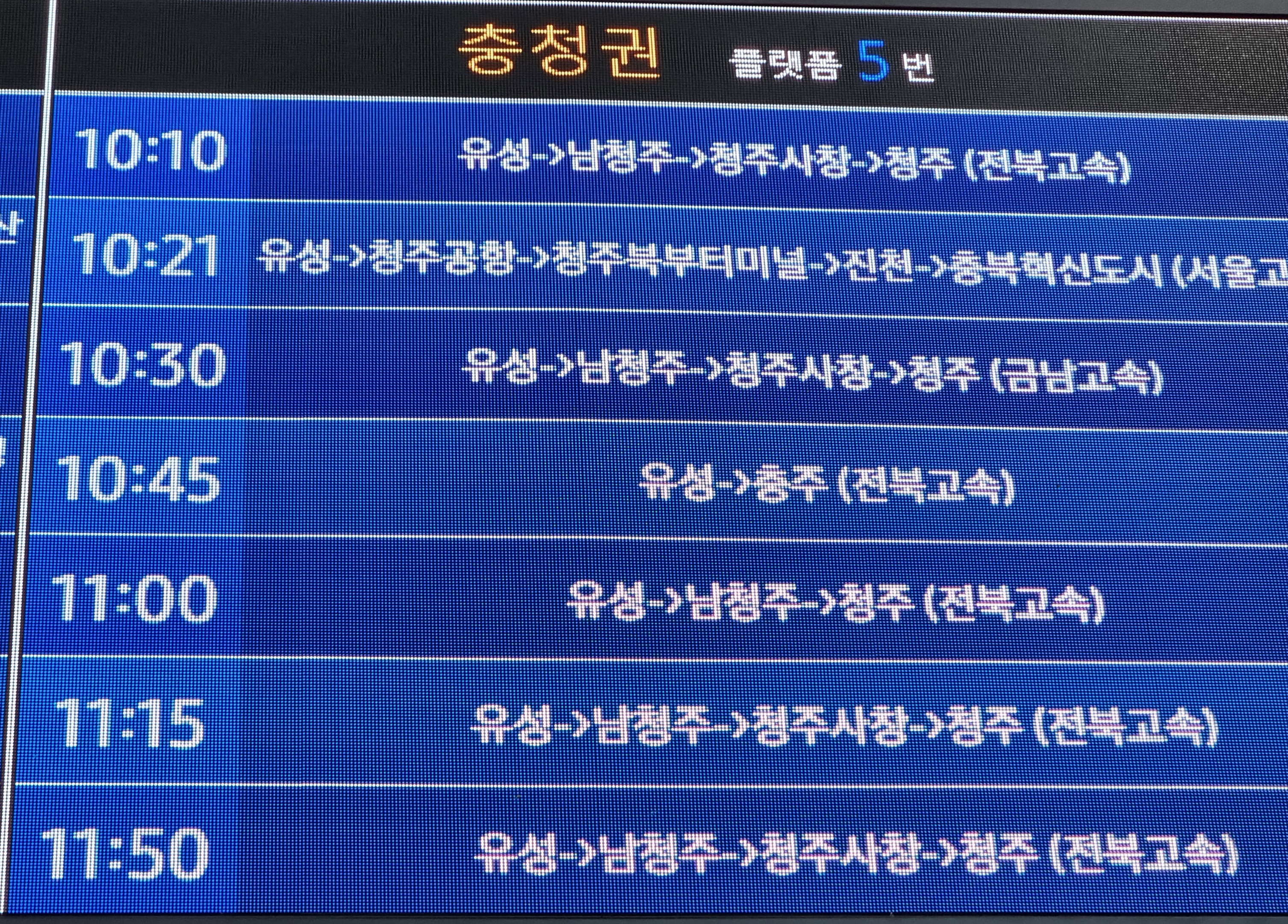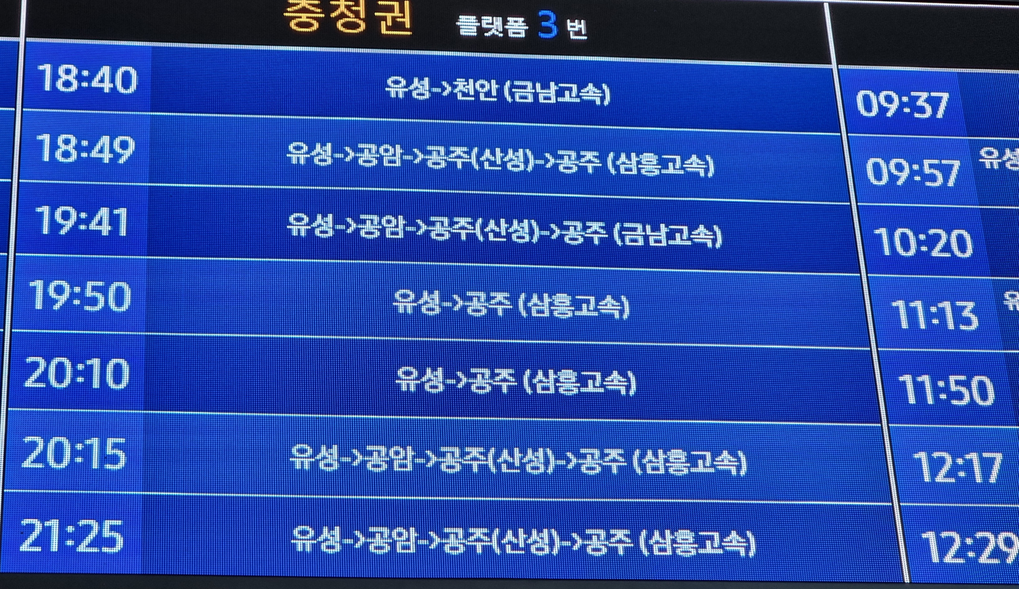 유성에서 출발하는 10시 차는 영통을 경유한다.