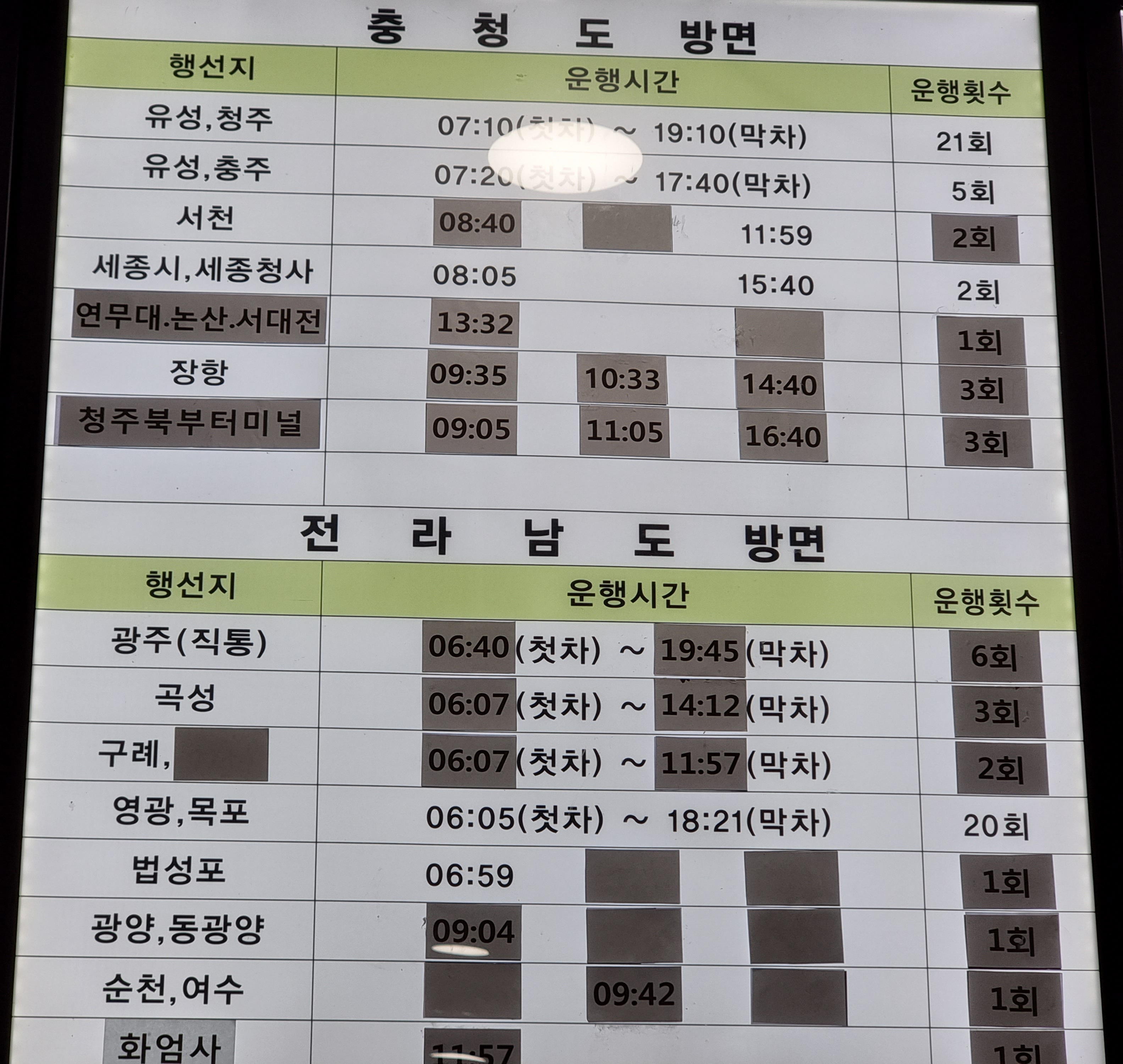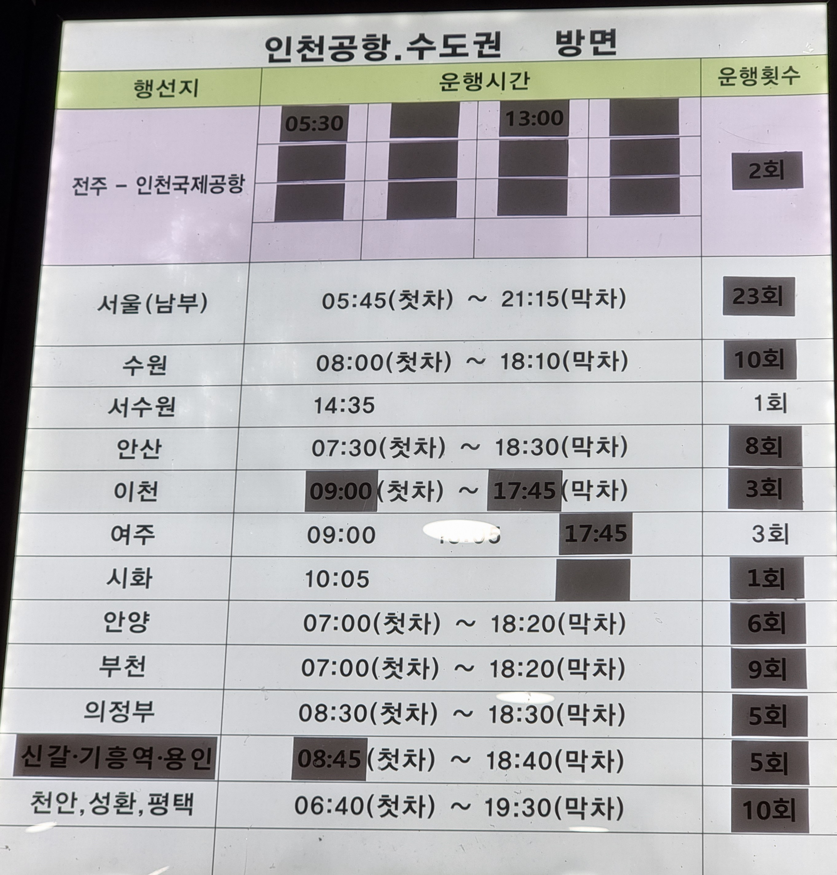 전주 시외버스터미널을 경유하는 버스 시간표와 시외버스 요금에 대하여 알아보자.