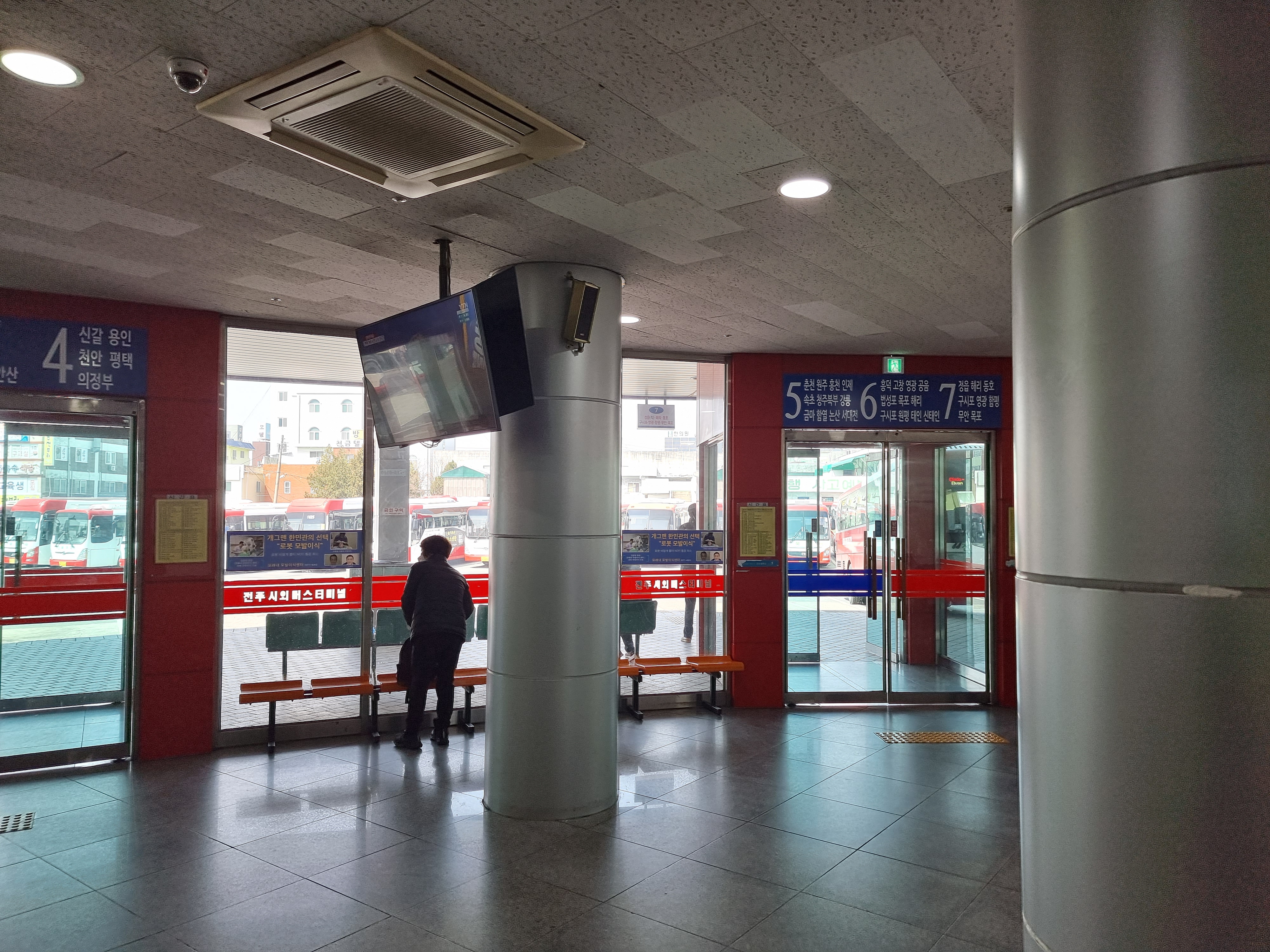 전주시외버스터미널을 경유하는 버스의 자세한 시간은 '시외버스 티머니'앱에서 확인 하면된다.