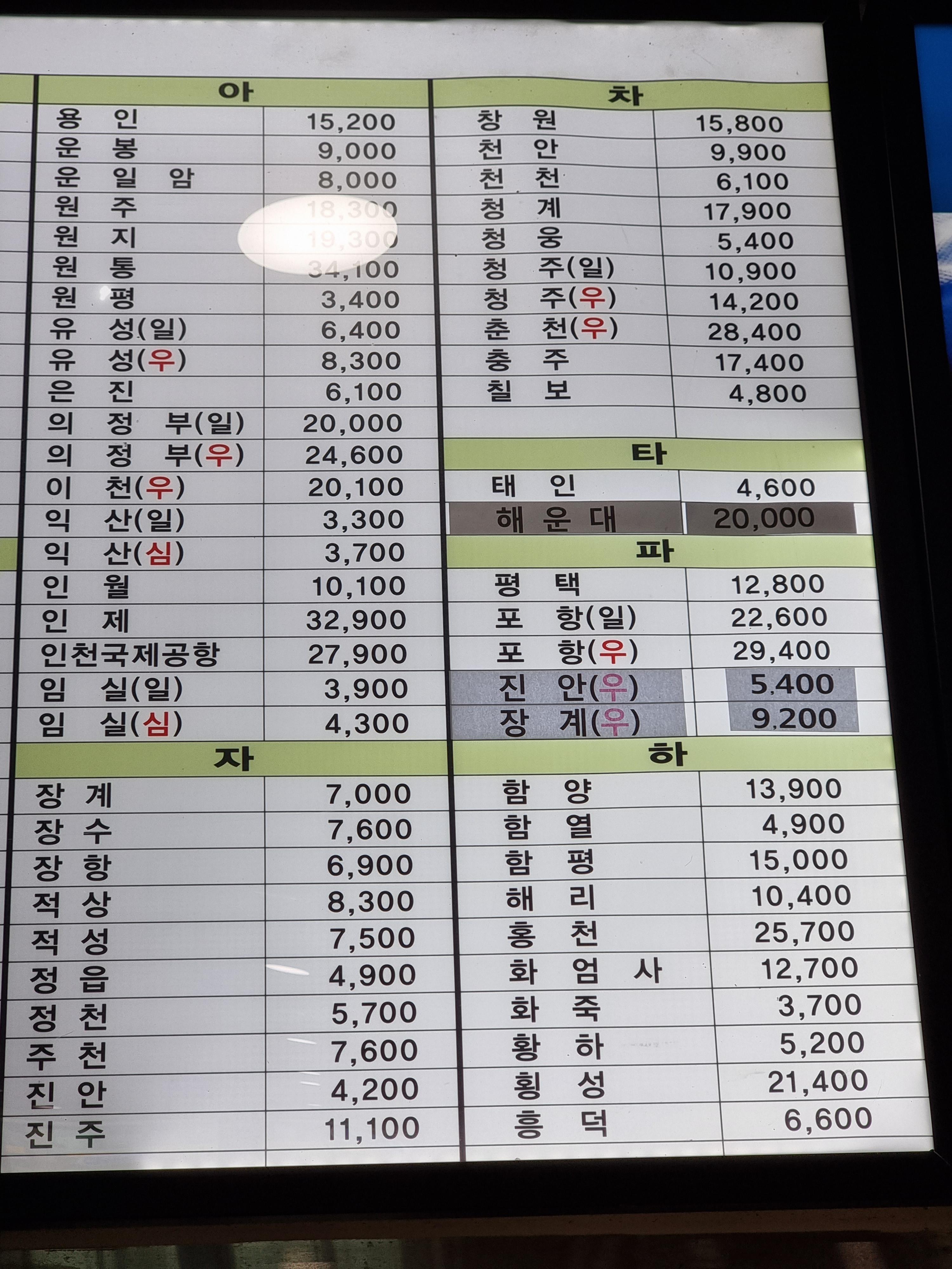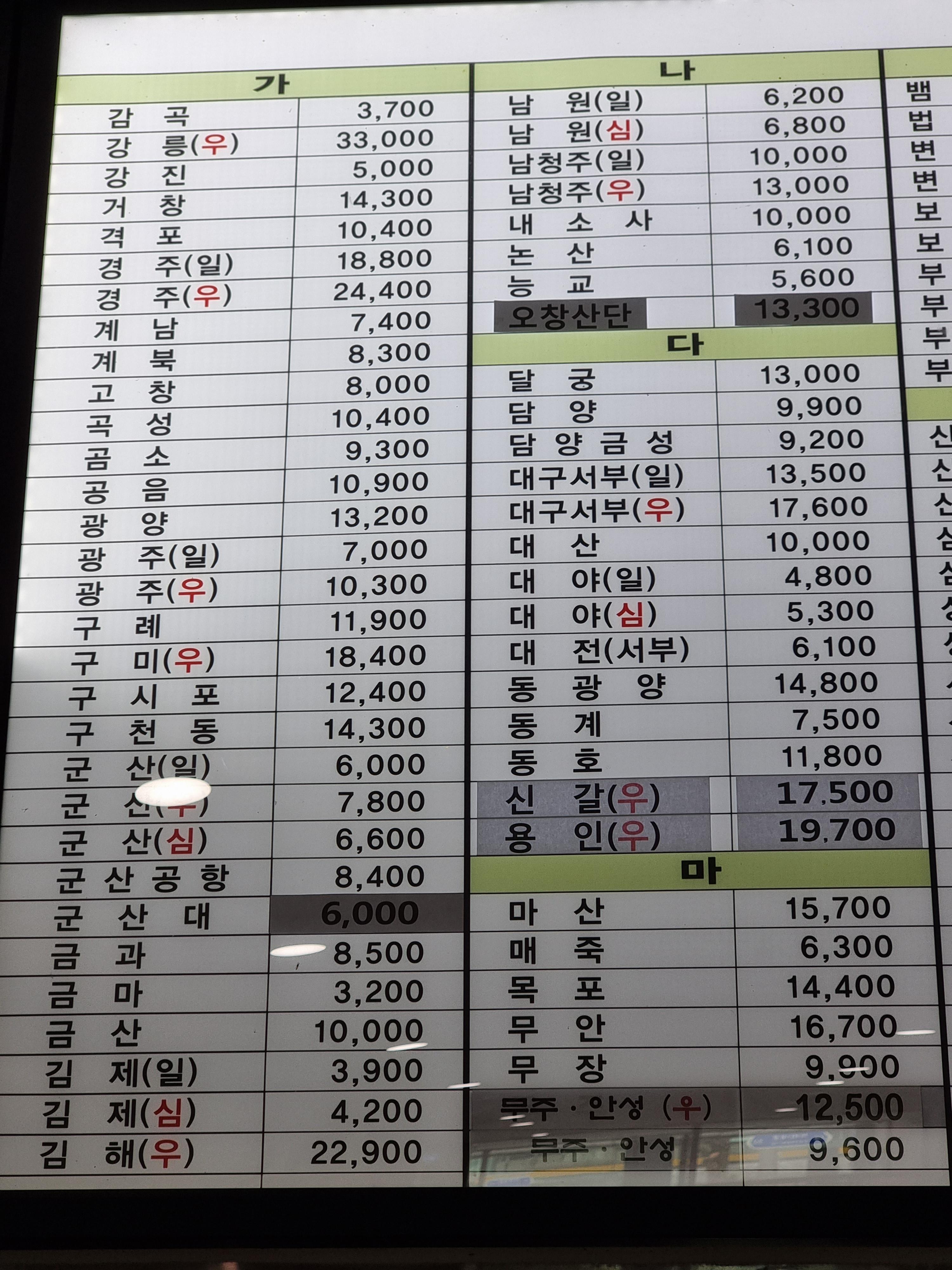 전주에서 뱀사골가는 시외버스 요금은 12,200원이고 변산욕장은 9,100원이다.