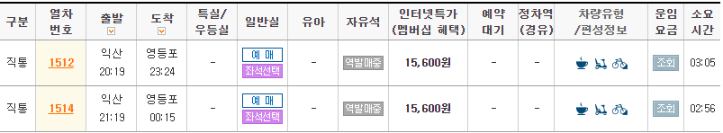 그리고 익산역에서 목포역가는 막차는 22시36분에 익산역을 출발한다.