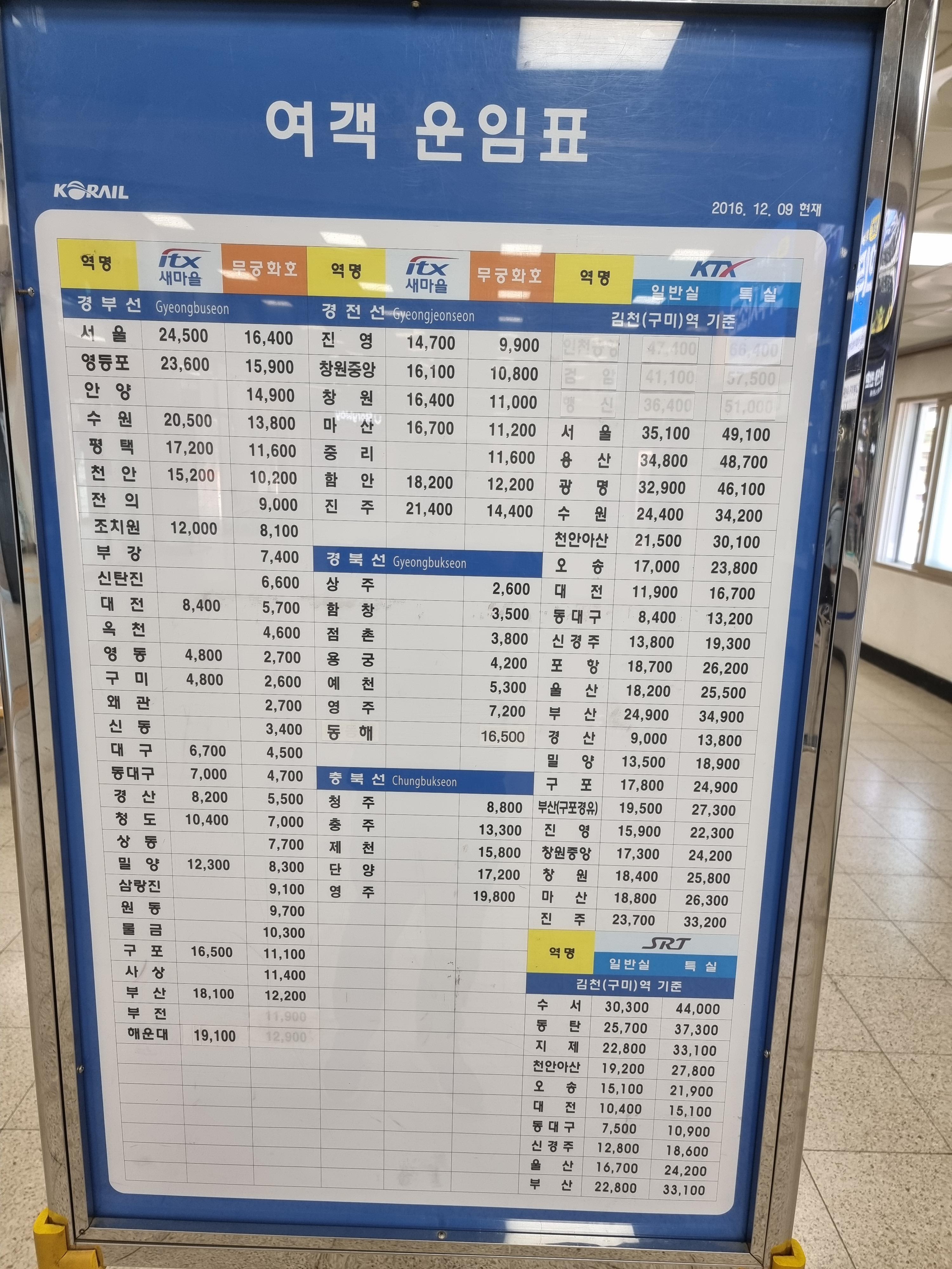 김천역에서 서울역까지 무궁화호 기차 요금은 16,400원이다.