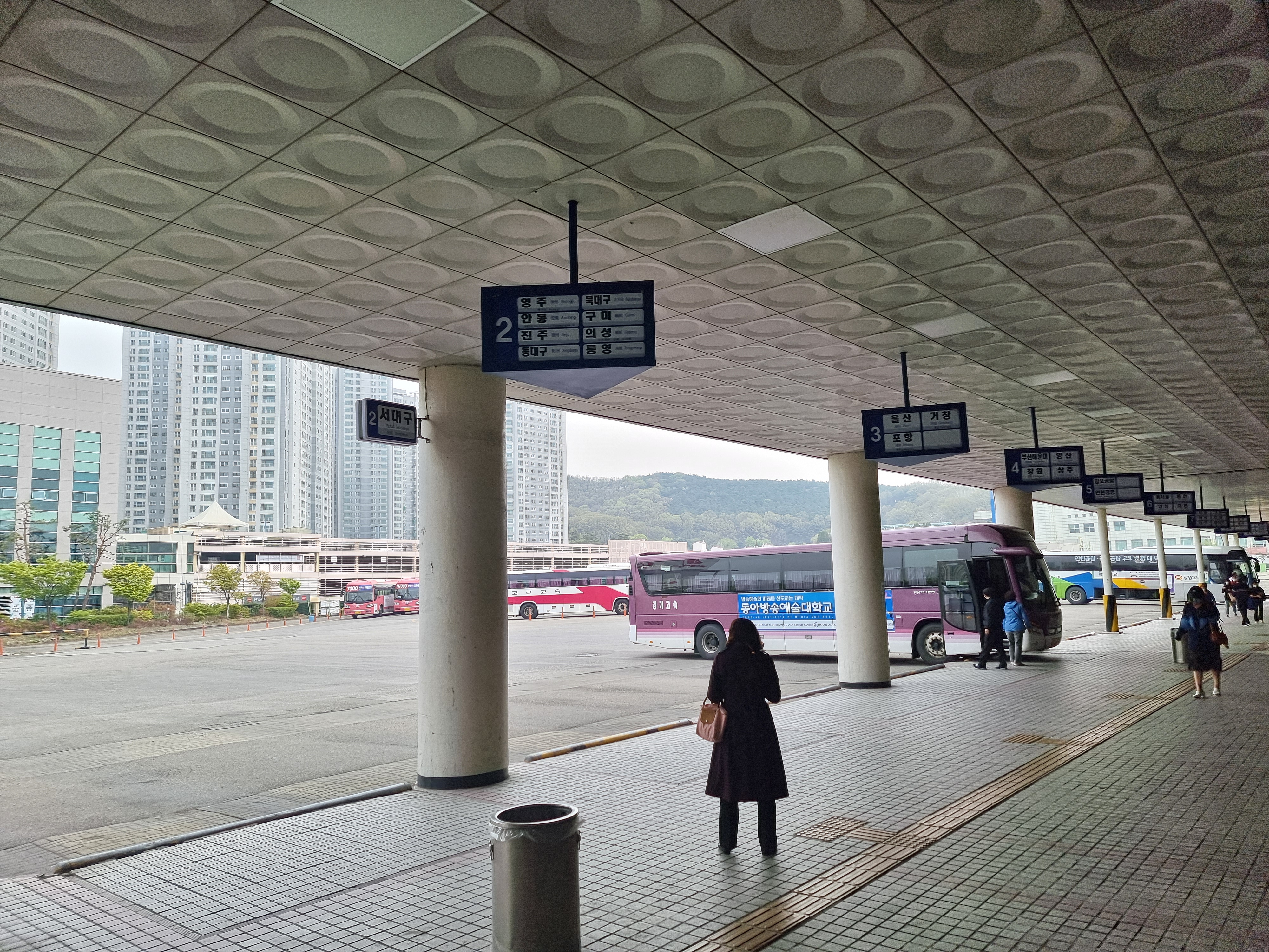 안산에서 동대구 가는 시외버스는 하루에 5회 운행되고 막차는 19시에 안산을 출발한다.