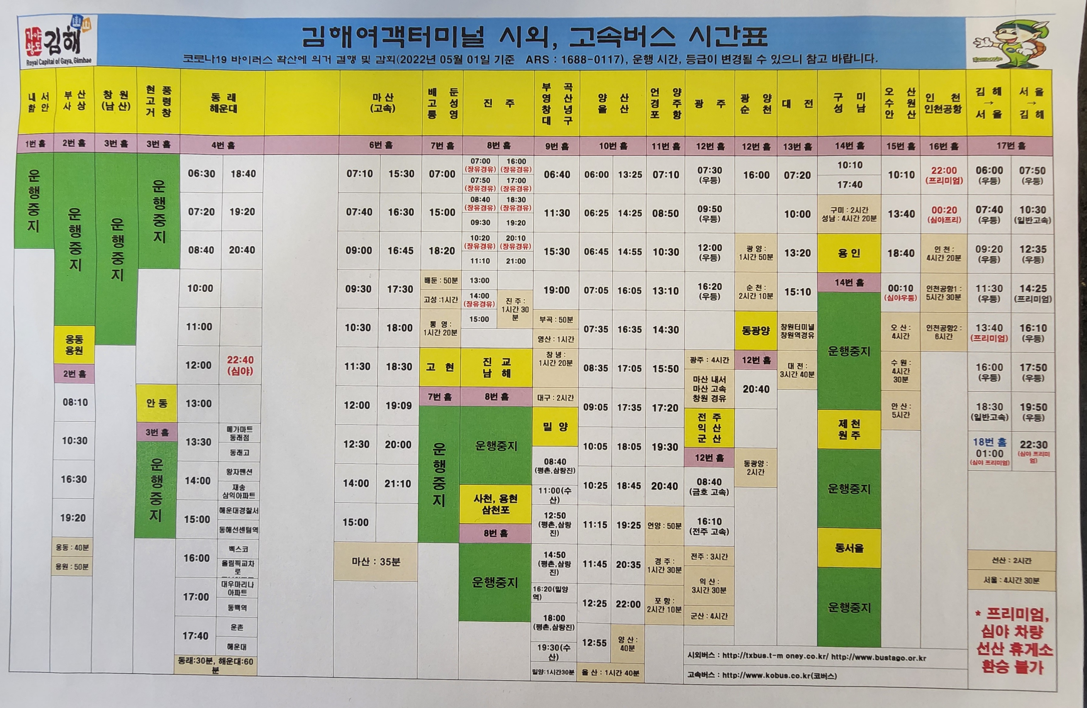 김해버스터미널의 버스 시간표에 대하여 알아보자.