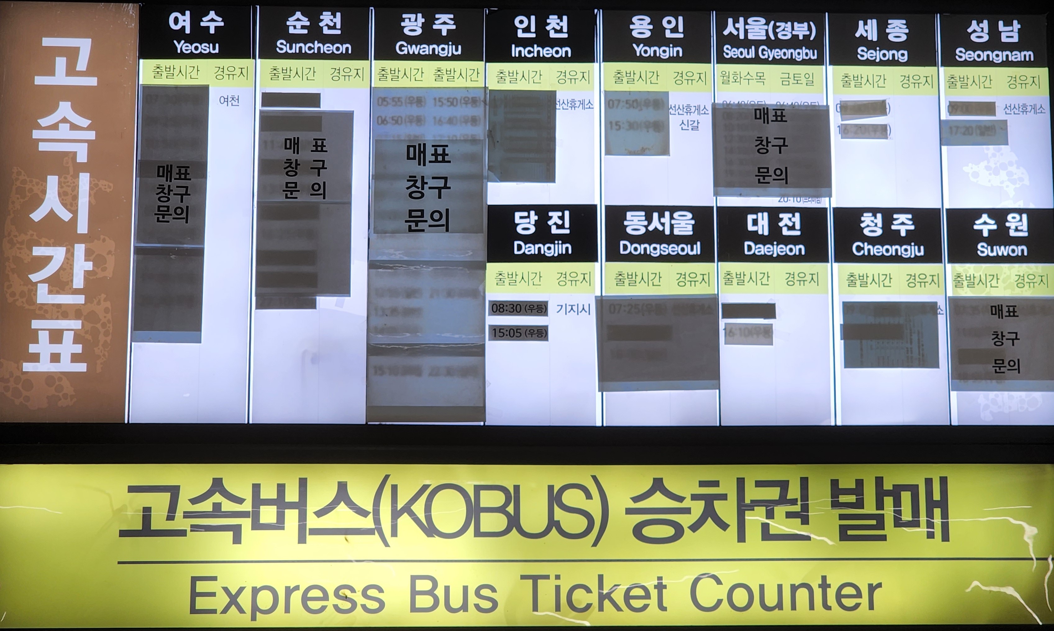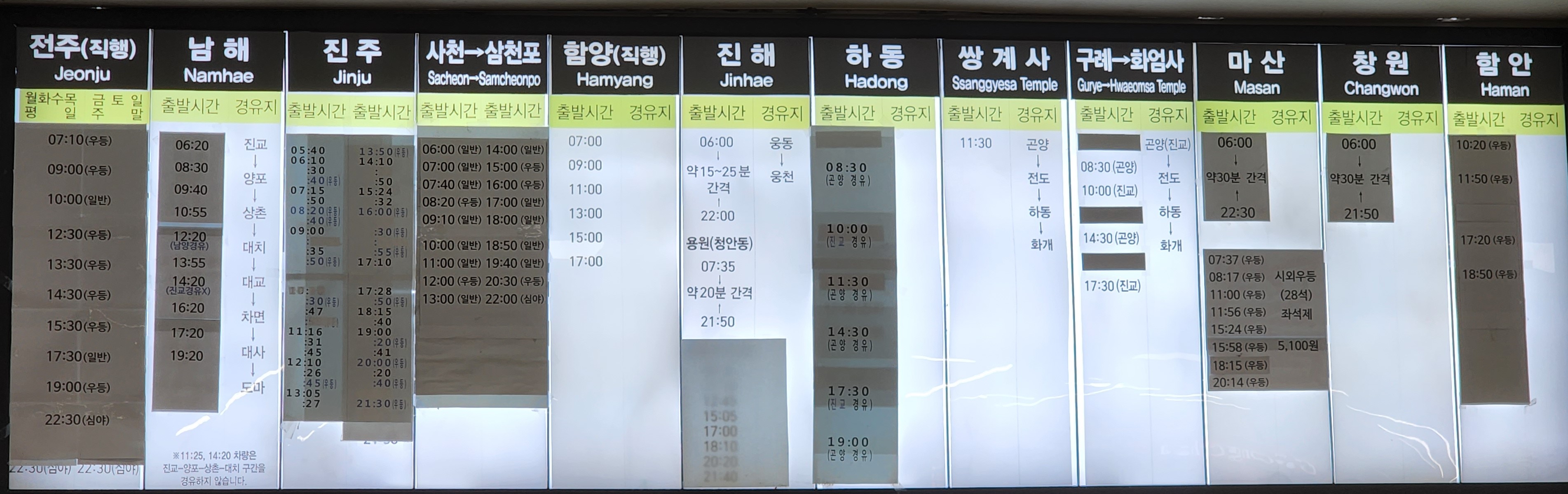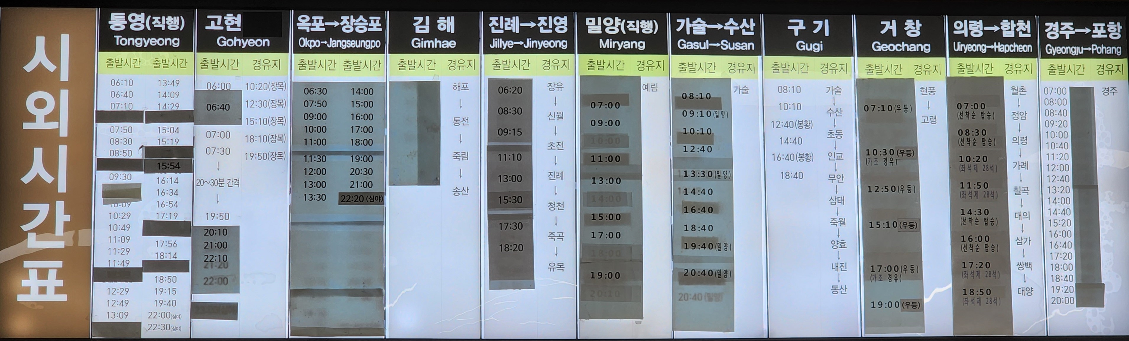 이외 다른 노선에 대한 시간표를 알고 싶으면 고속버스는 '버스타고' ,시외버스는 '시외버스 티머니'에서 확인 할 수 있다.