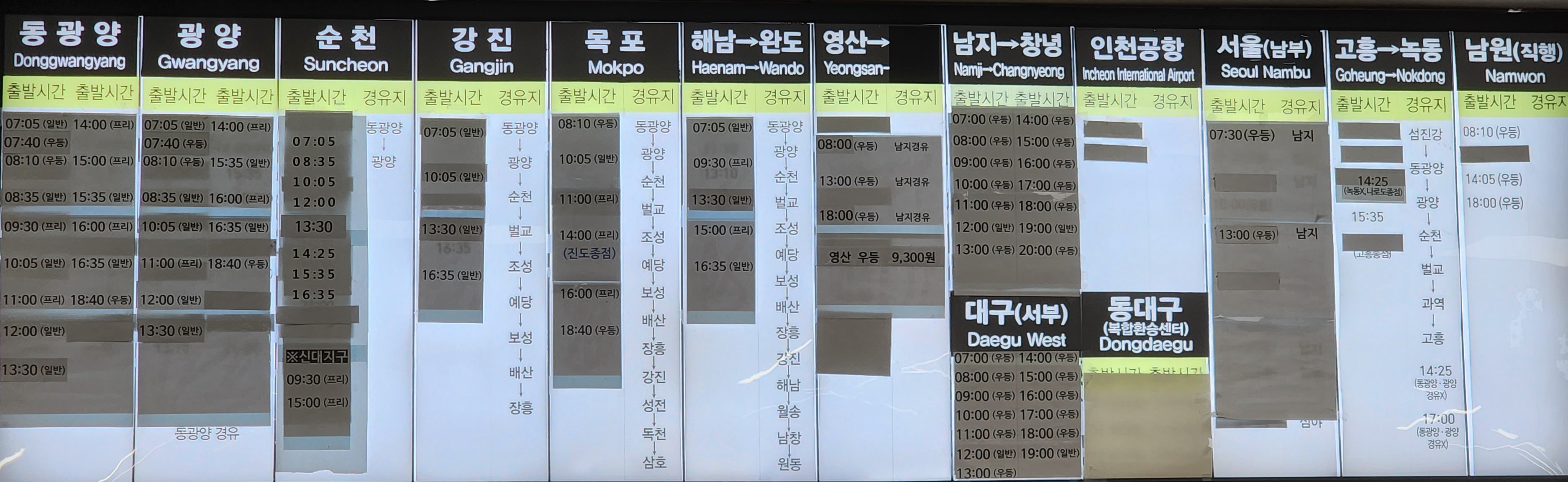 서부터미널에서 나로도가는 시외버스는 하루에 1회 14시25분에 서부터미널에서 출발한다.