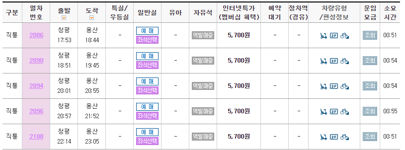 ■청평역 ITX 시간표