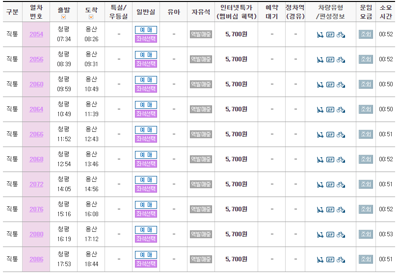 이외 다른 노선에 대한 시간표를 알고 싶으면 '레츠코레일'이나 모바일 '코레일 톡'에서 확인 하면 된다.