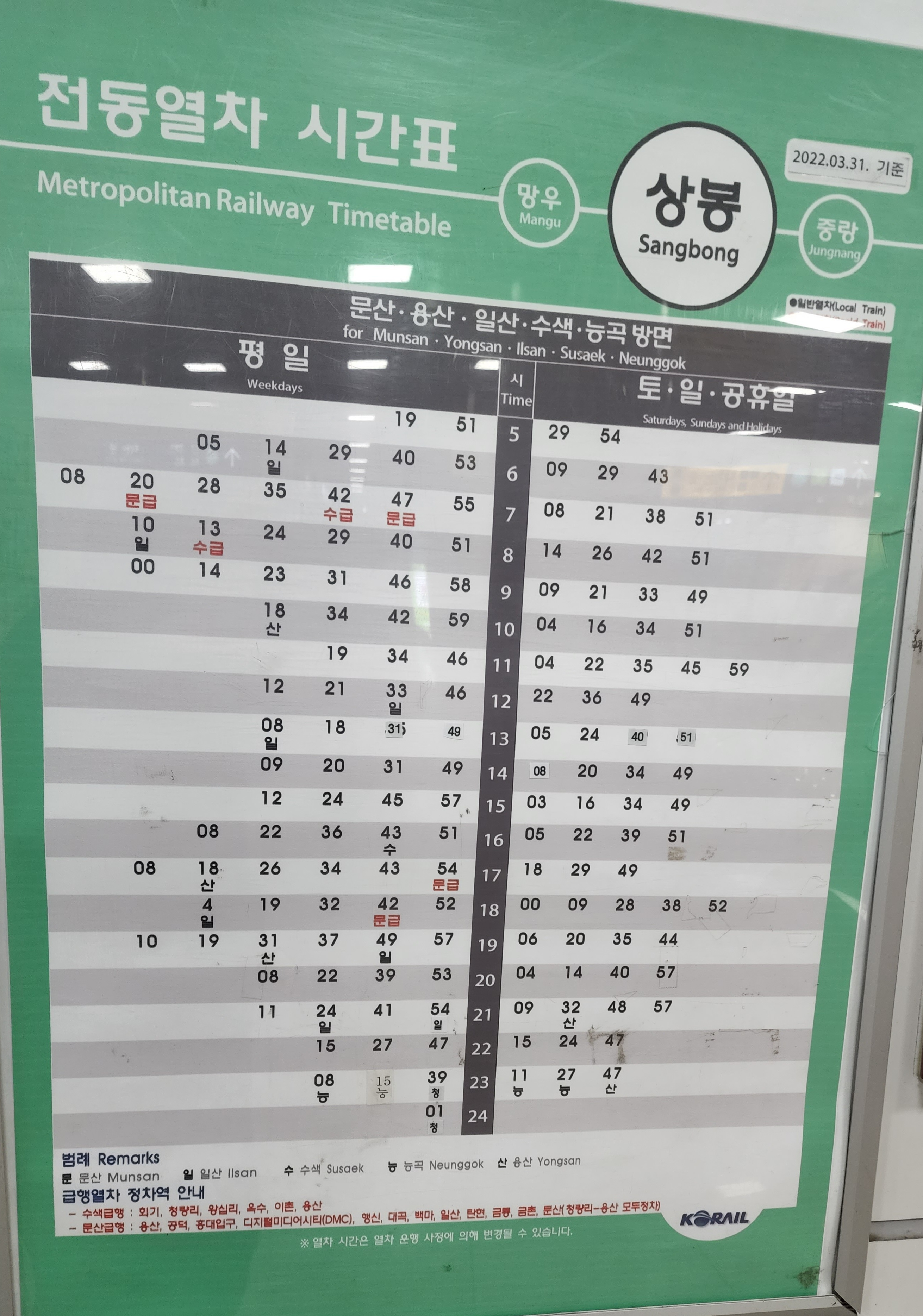 ■상봉역 전동열차 시간표