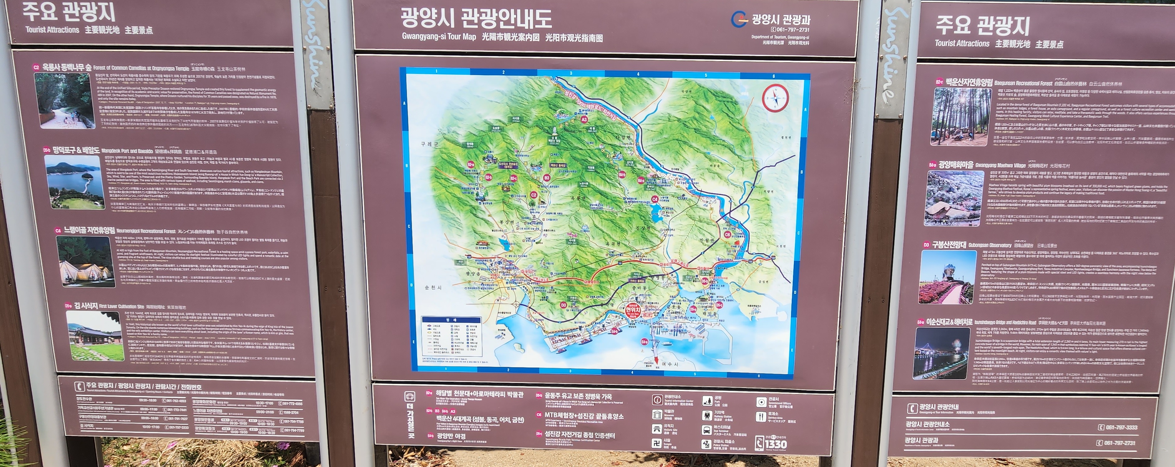 광양의 주요 관광지는 백운산 4대 계곡,원시림을 기반으로 삼나무 편백나무 수종의 인공림이 조화를 이루며 입구부터 상쾌한 삼림욕 기운을 만끽할 수 있는 백운산 자연휴양림,해발 473m의 구봉산에 설치하여 순천,여수.하동,남해까지 한눈에 볼 수 있는 구봉산전망대,광양 이순신대교,섬진강 망덕포구,광양매화마을 등의 관광지가 있는 곳이다.