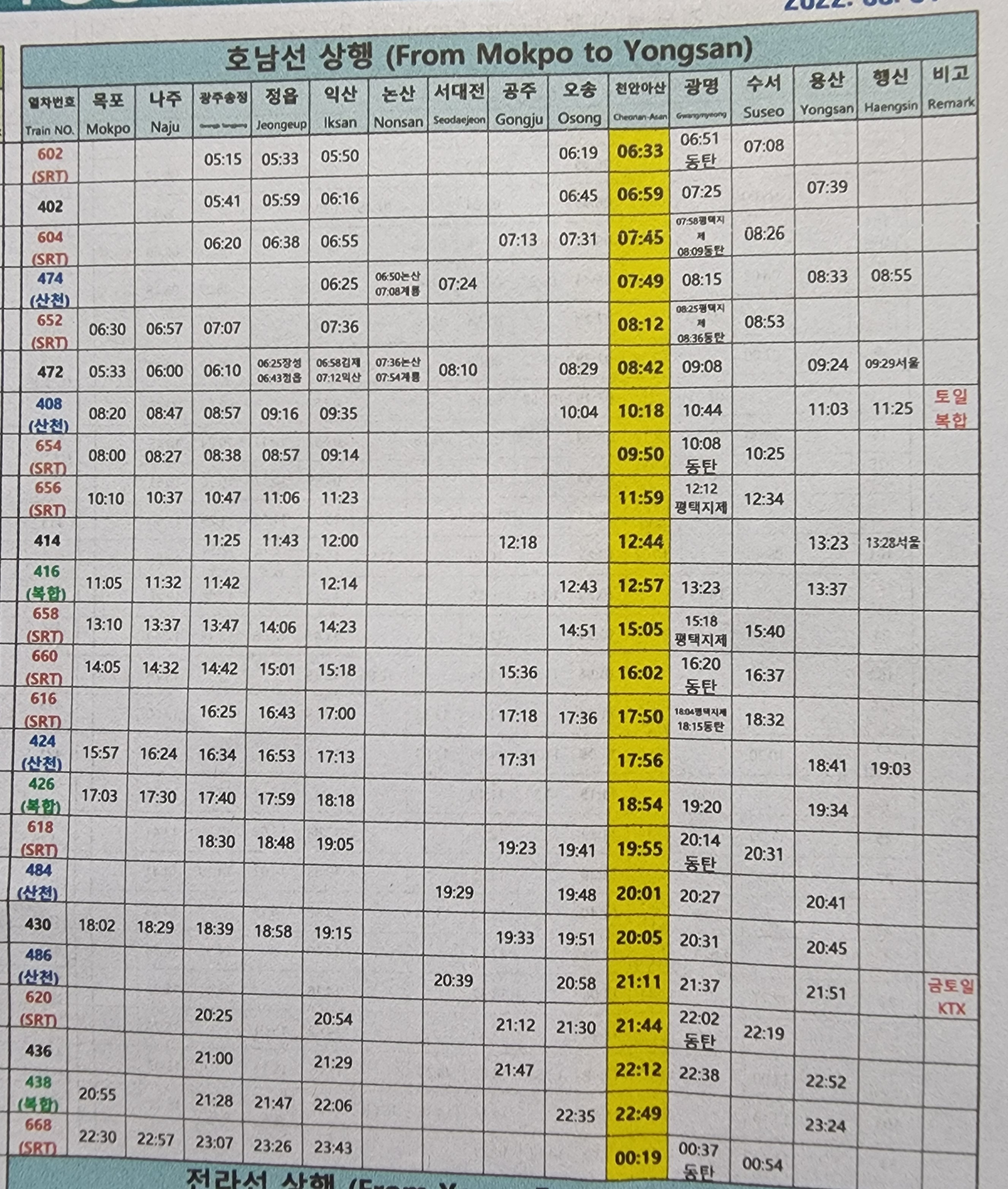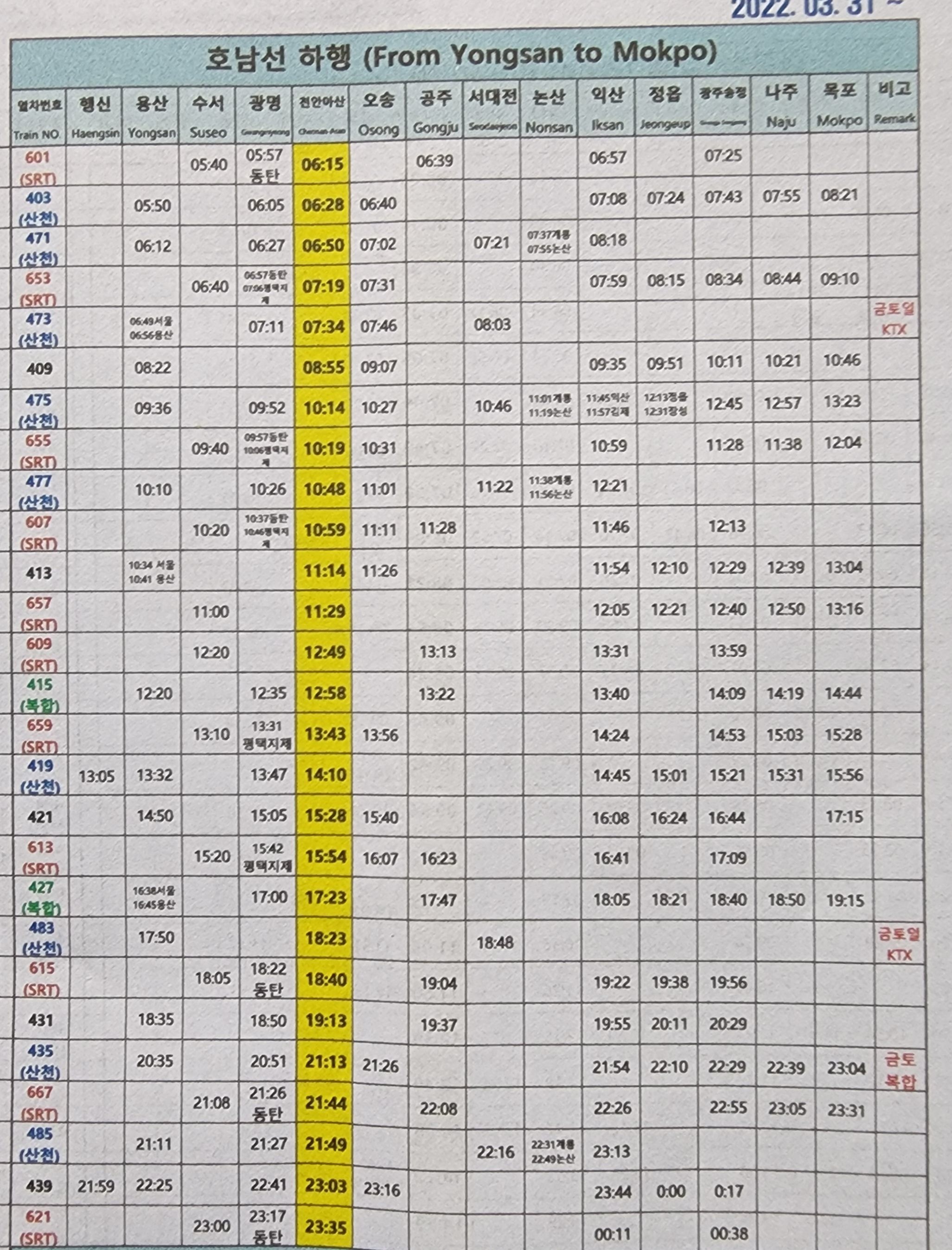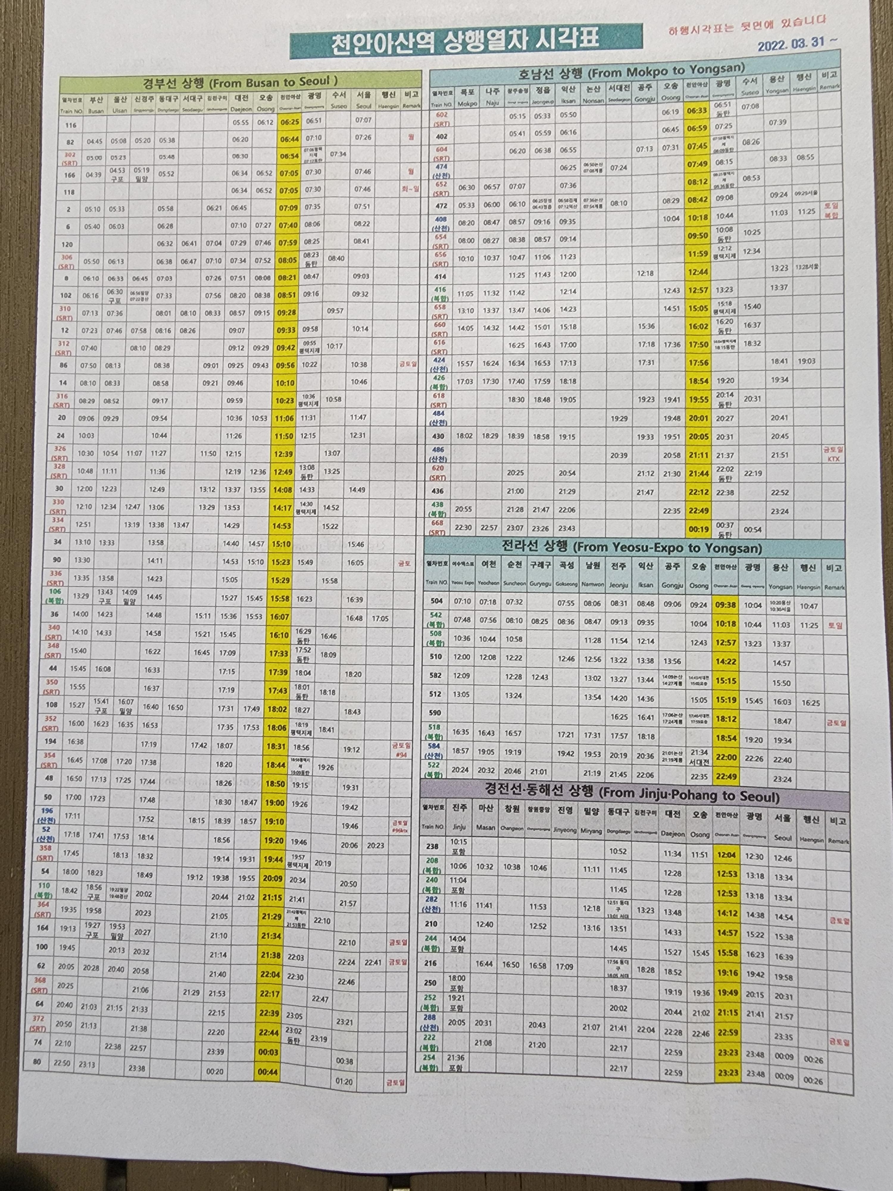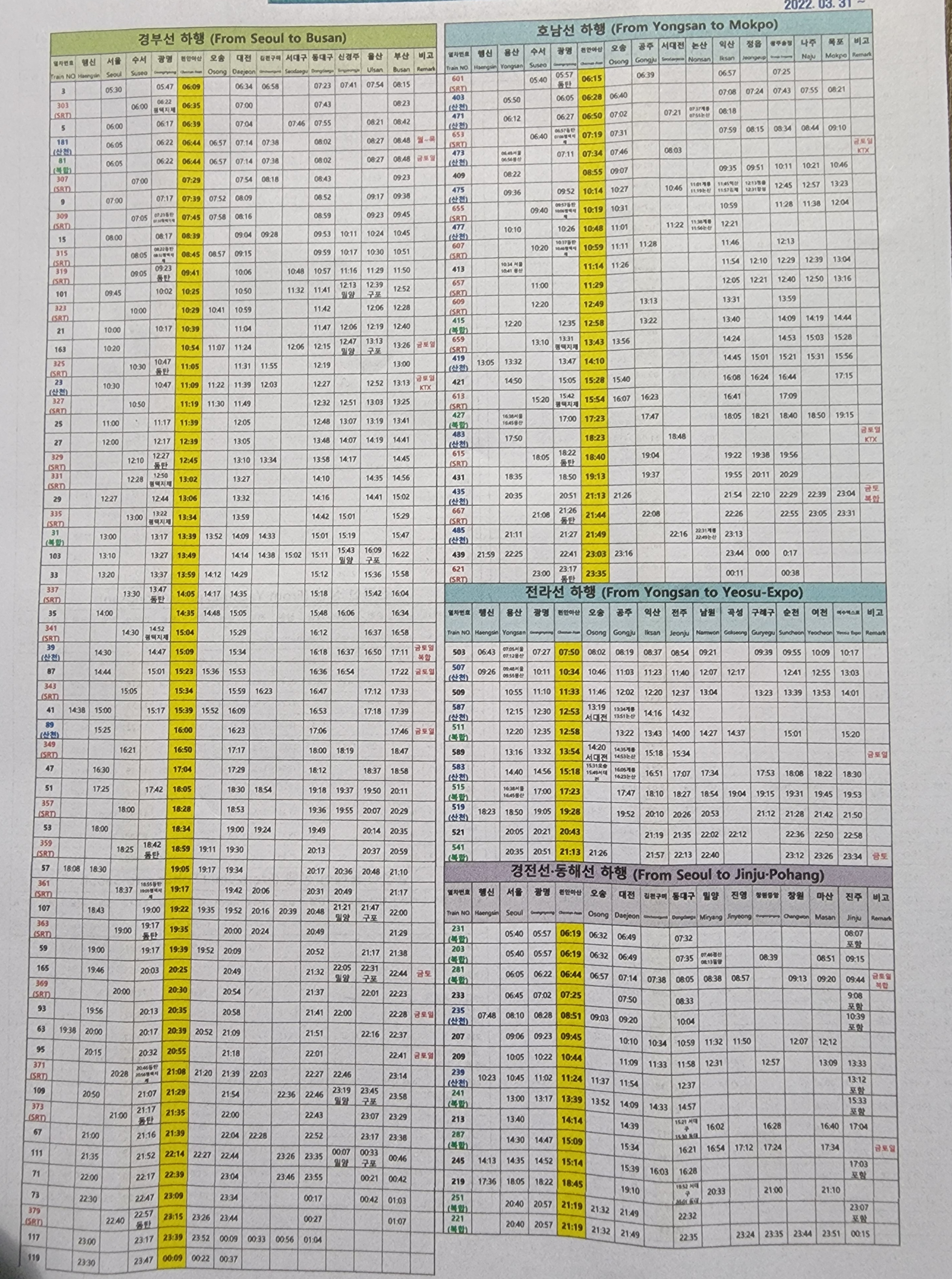 지금은 코로나 시국이라 일부 노선의 기차 시간표가 변경될 수 있으므로 기차 이용 전에 시간표를 다시한번 확인 하여야 한다.