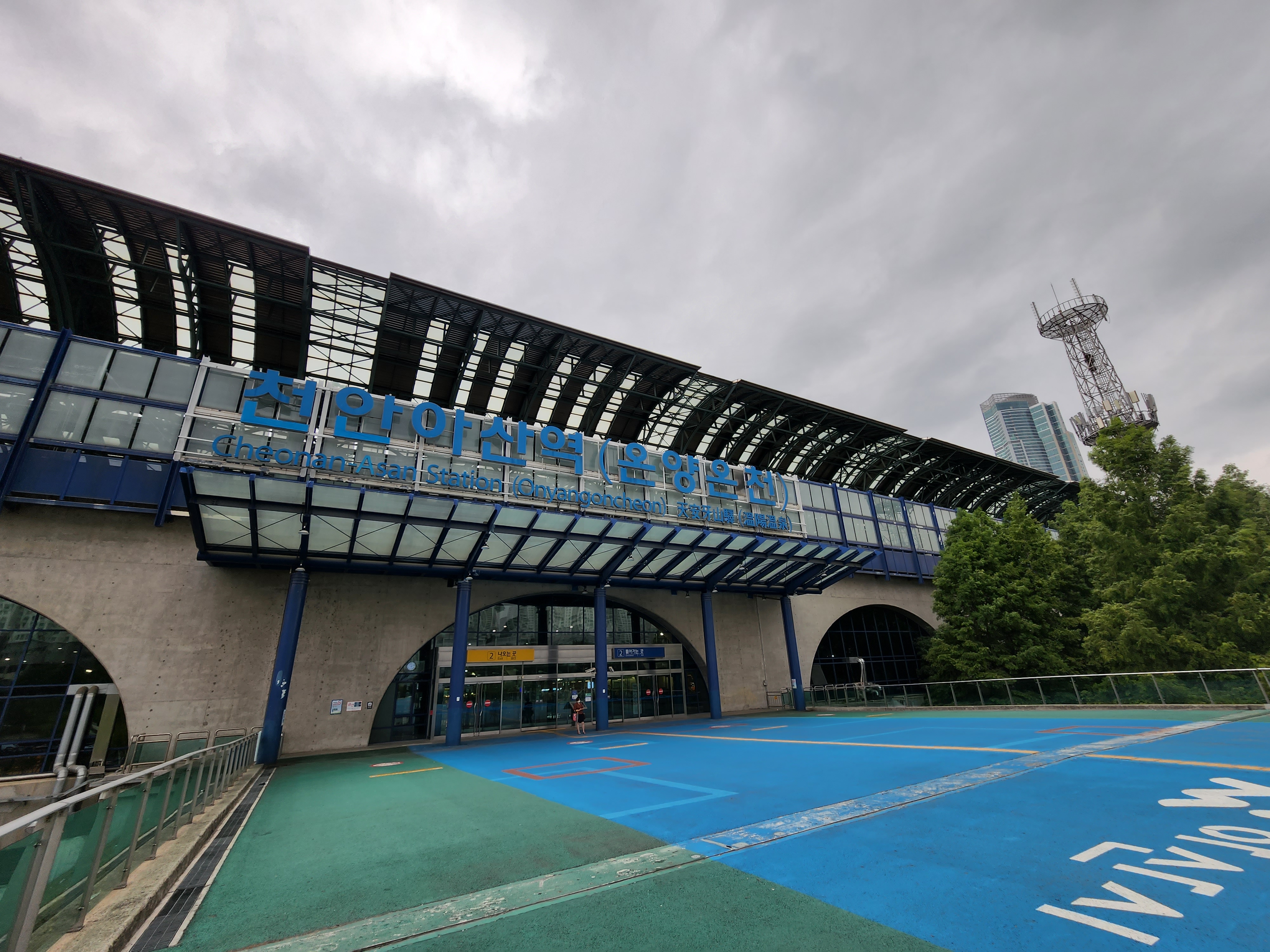 수도권 전철 1호선과 장항선을 운행하는 철도역인 아산역과 연결되어 도보로 약 5분 정도 이동하면 수도권 전철 환승도 편리한 역이다.