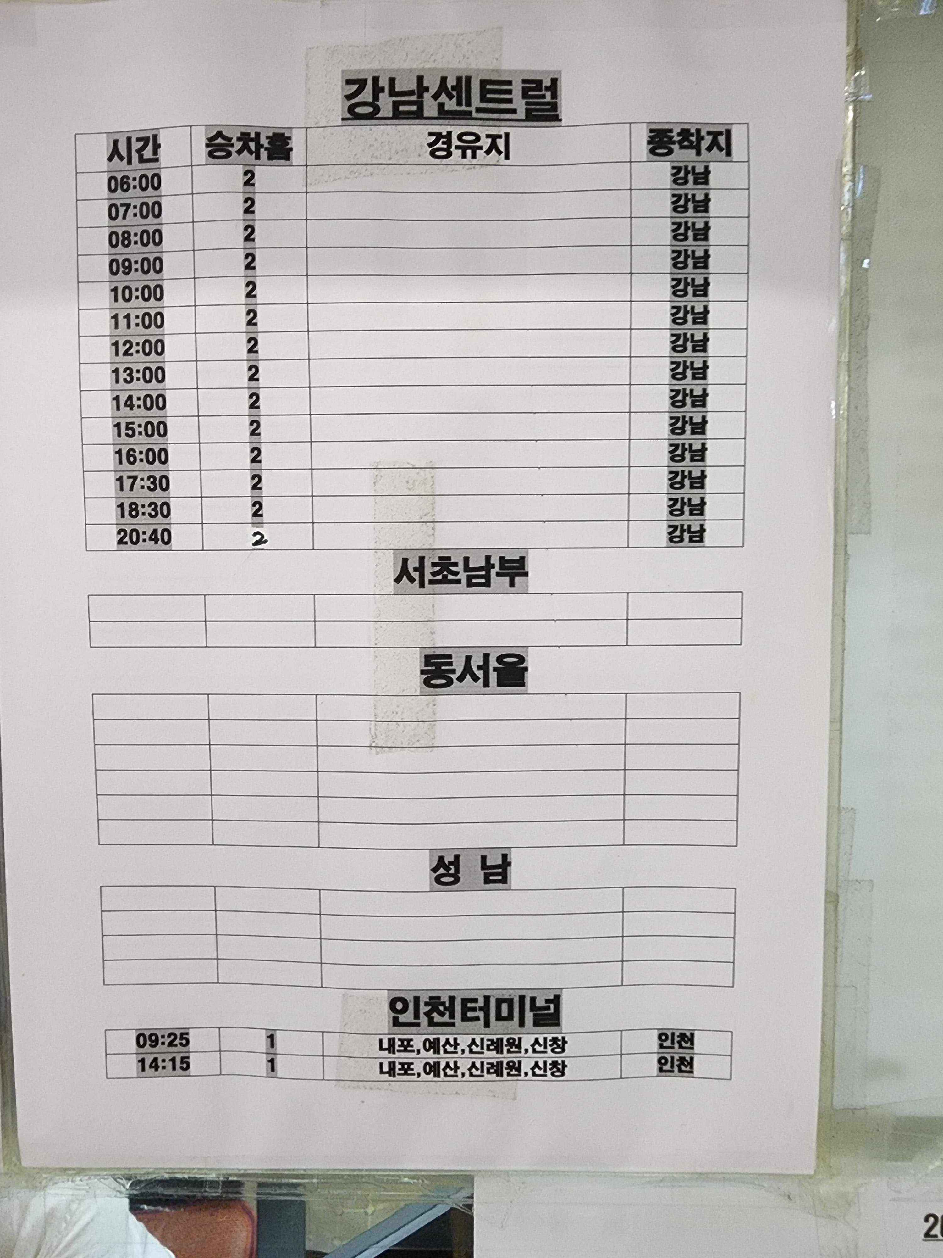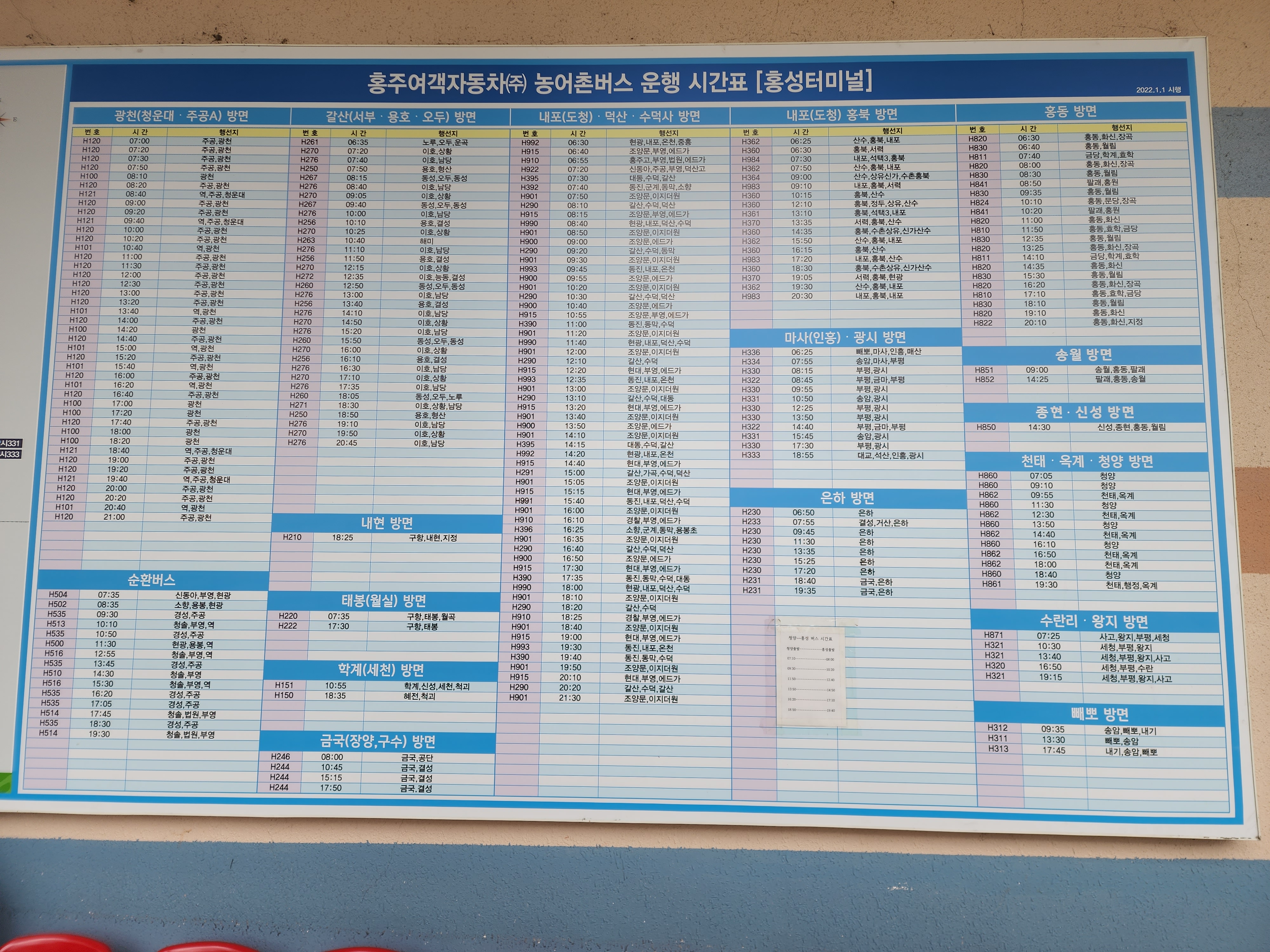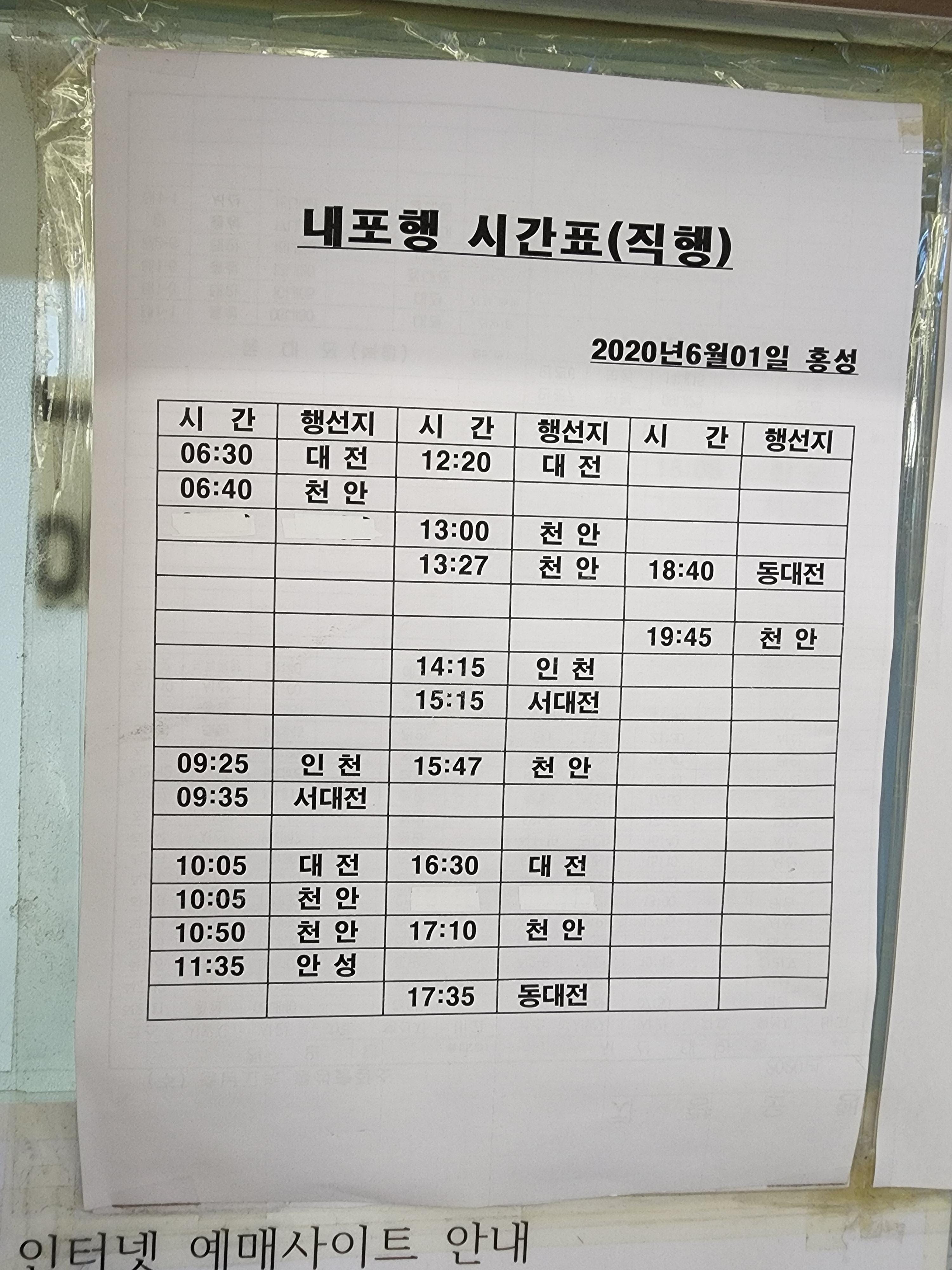 홍성종합터미널에서 인천가는 시외버스는 하루에2회 운행되고 시간은 09시25분/14시15분에 홍성을 출발한다.