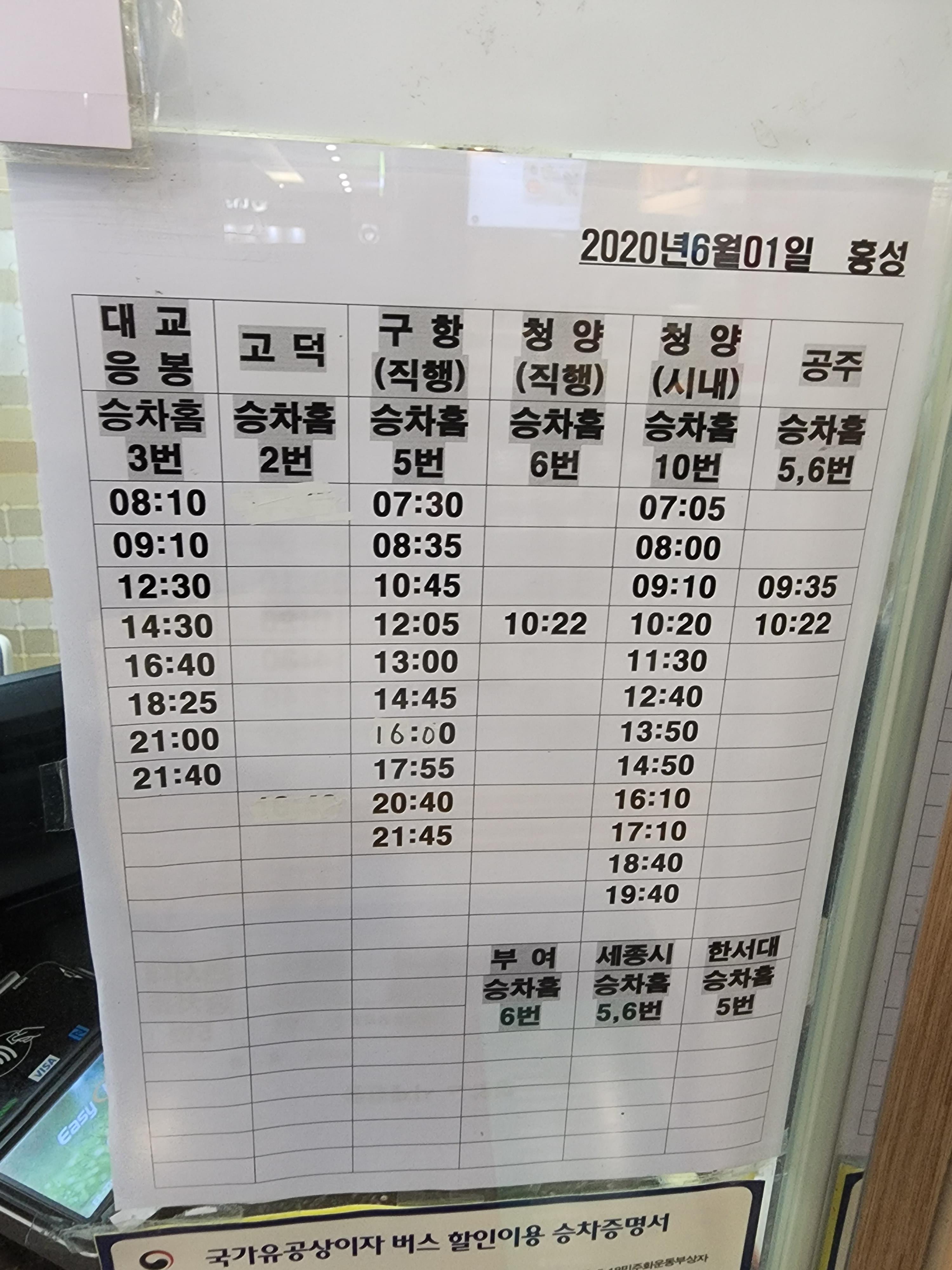 대전까지 요금은 8,800원이고 소요시간은 홍성을 출발하여 내포,대전청사를 경유하여 대전복합까지 약 1시간 55분이 소요된다.