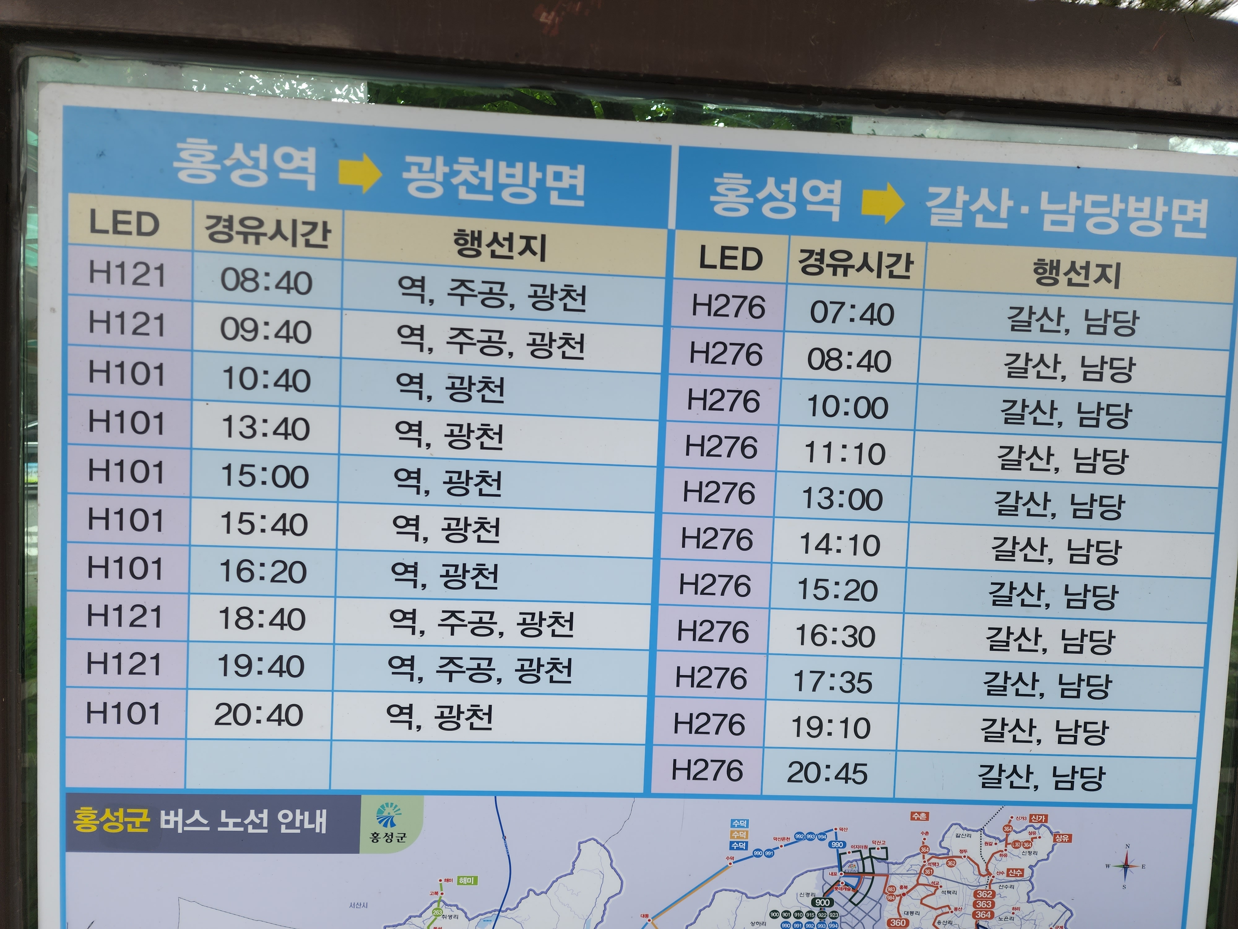 홍성에서 대전가는 시외버스는 하루에 6회가 운행되고 시간은 06시30분/10시05분/12시20분/16시30분/17시35분/18시40분에 홍성터미널을 출발한다.
