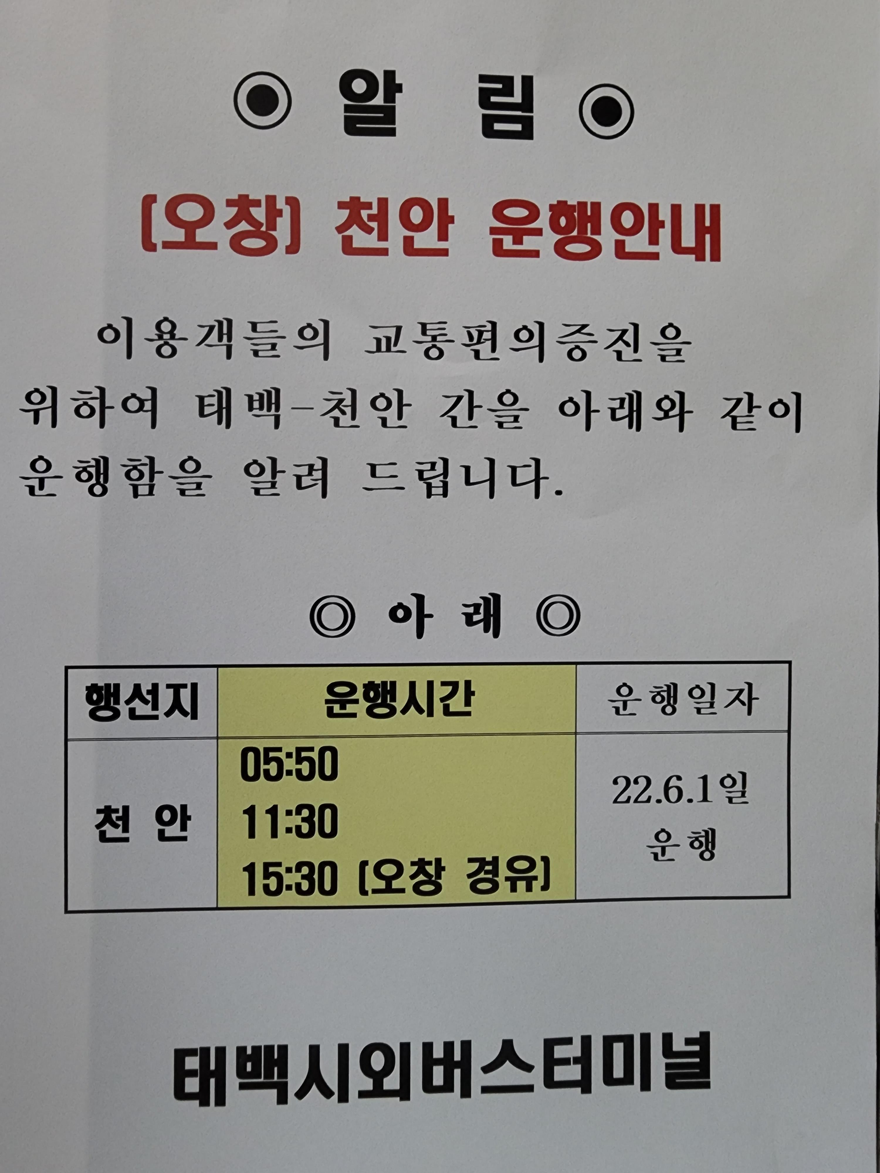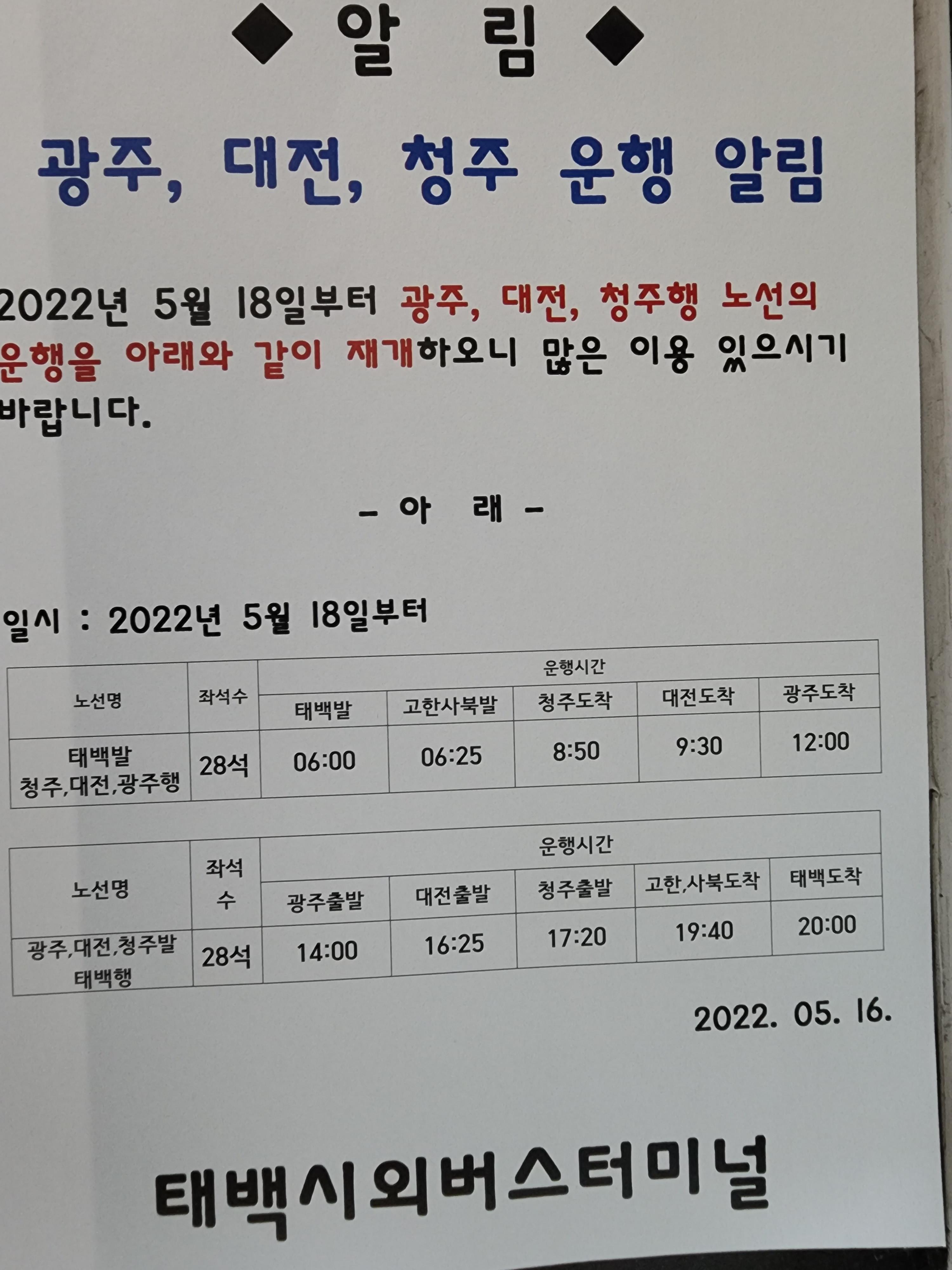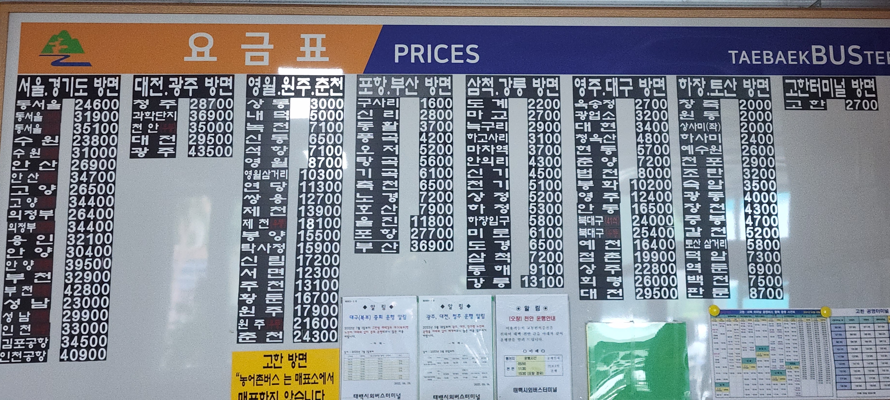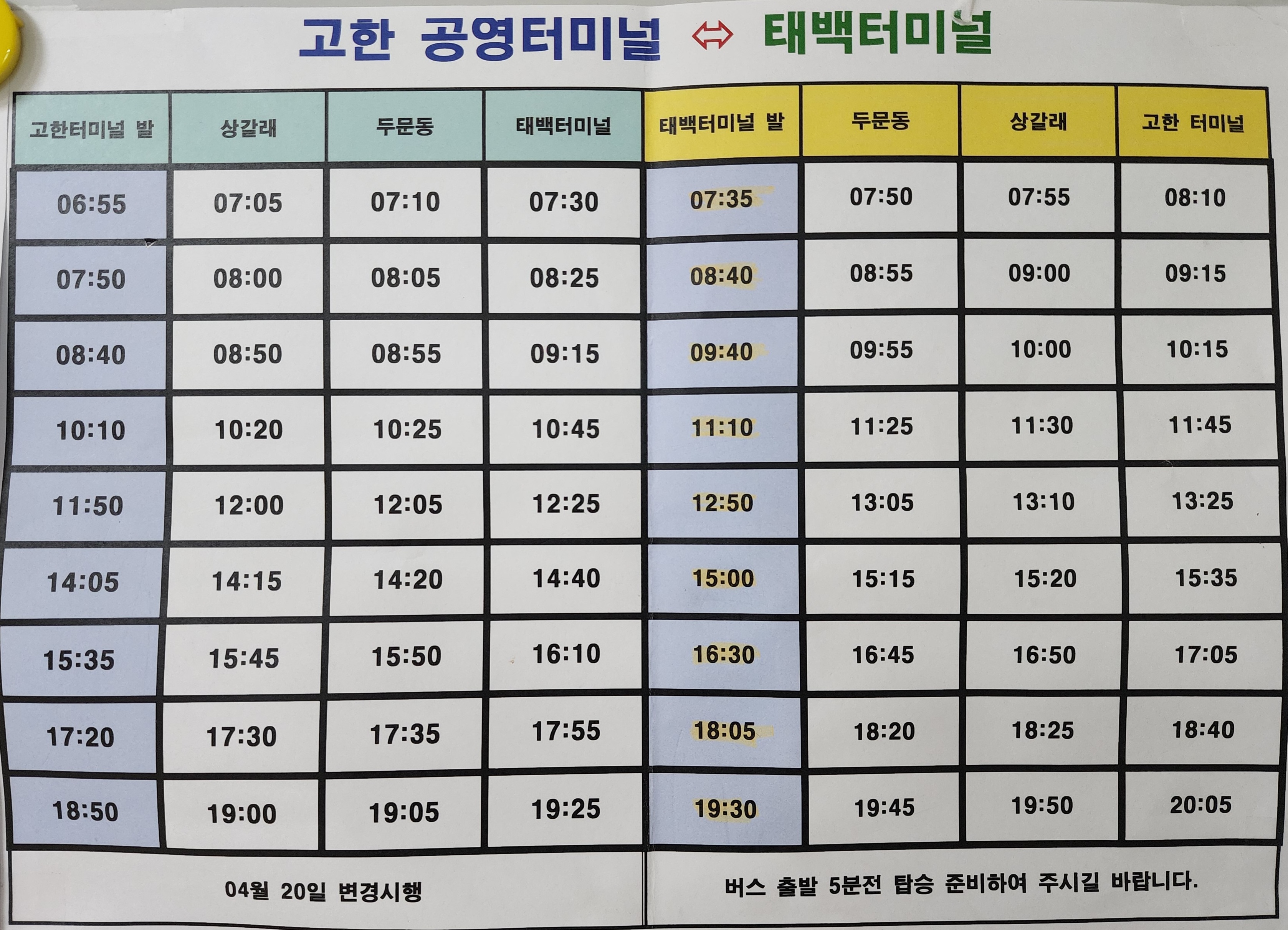 태백터미널의 시외버스와 시내버스 시간표에 대하여 알아보자.