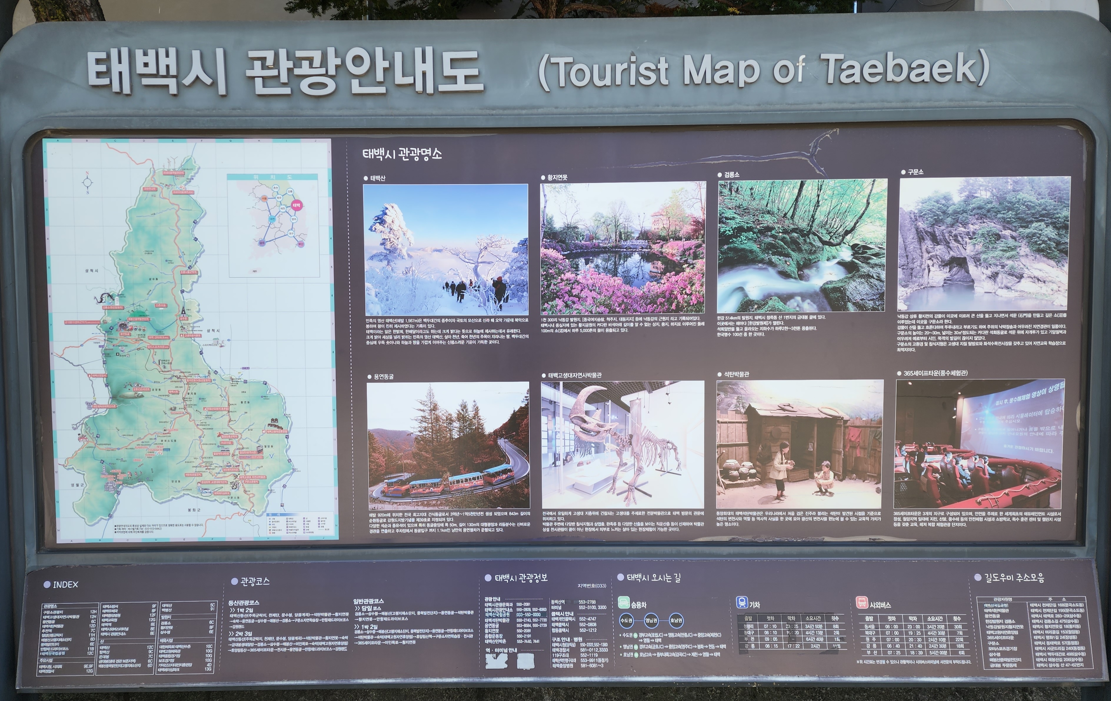 그리고 해발 800m에 위치한 유산양 목장으로 알프스의 목가적 풍경을 닮은 이색적인 관광지인 몽토산 산양목장,고생대 자연박물관,태백석탄 박물관 등의 관광지가 있는 곳이다.