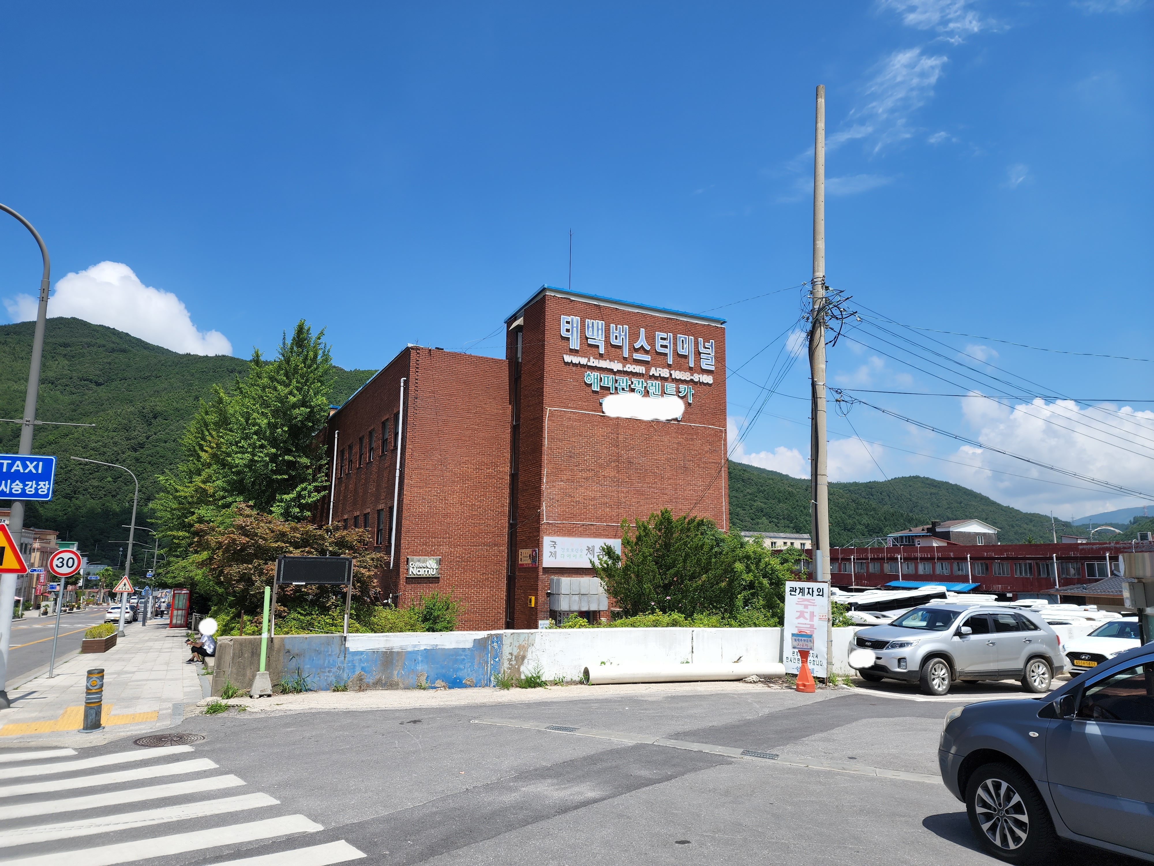 태백버스터미널 1970년대 개장한 오래된 건물로 현재 시외버스와 시내버스 노선이 운행되고 있다.