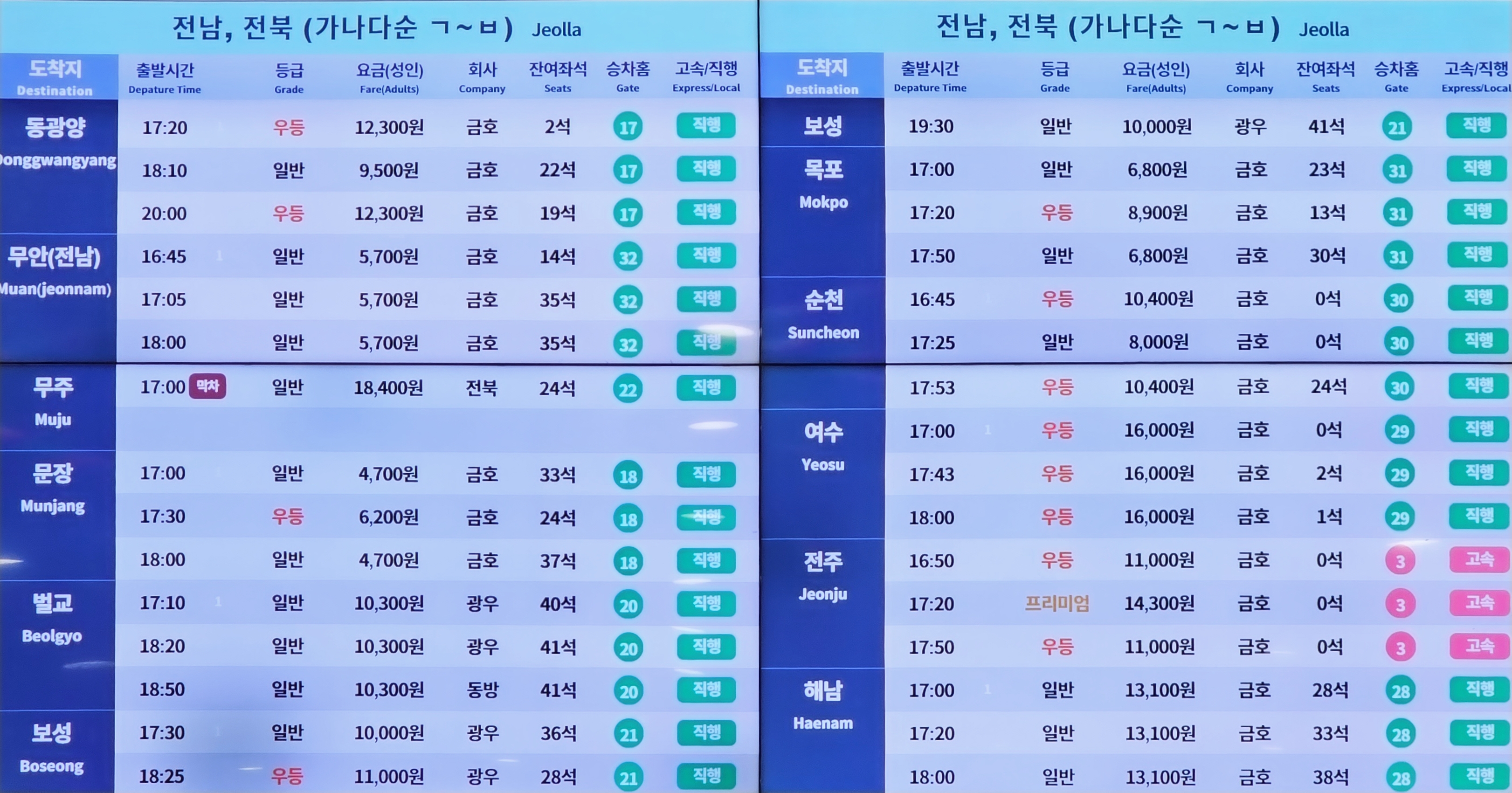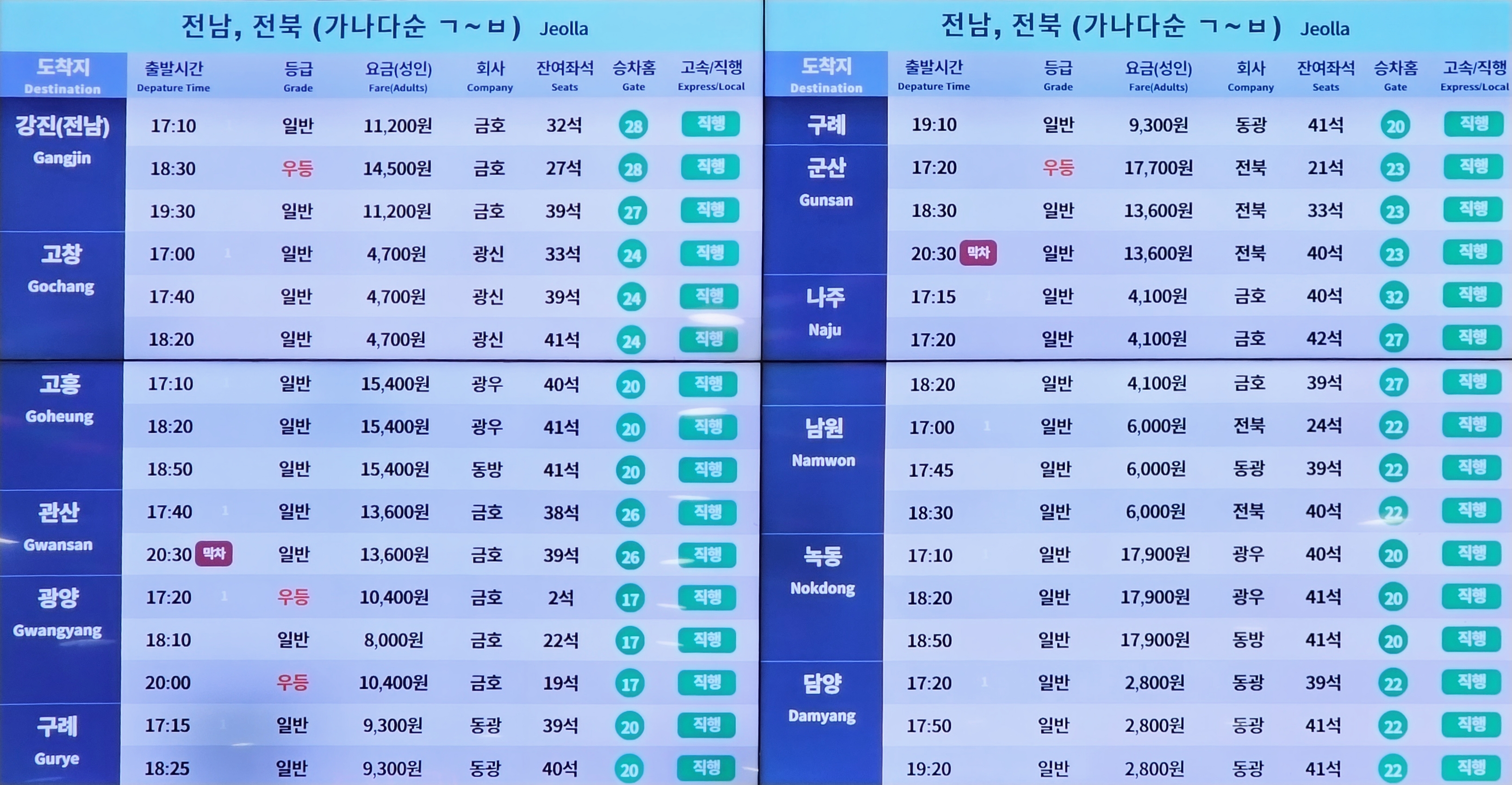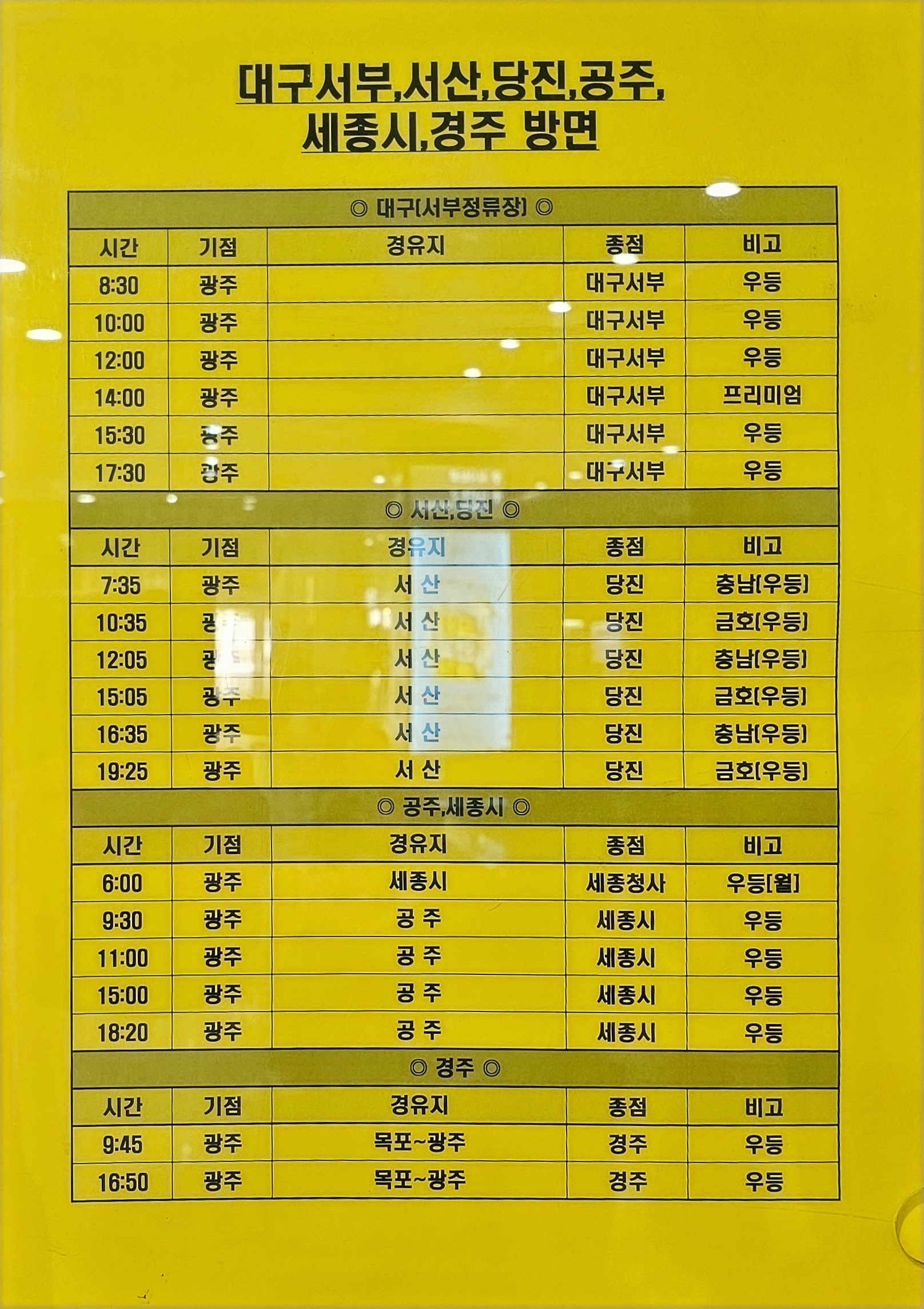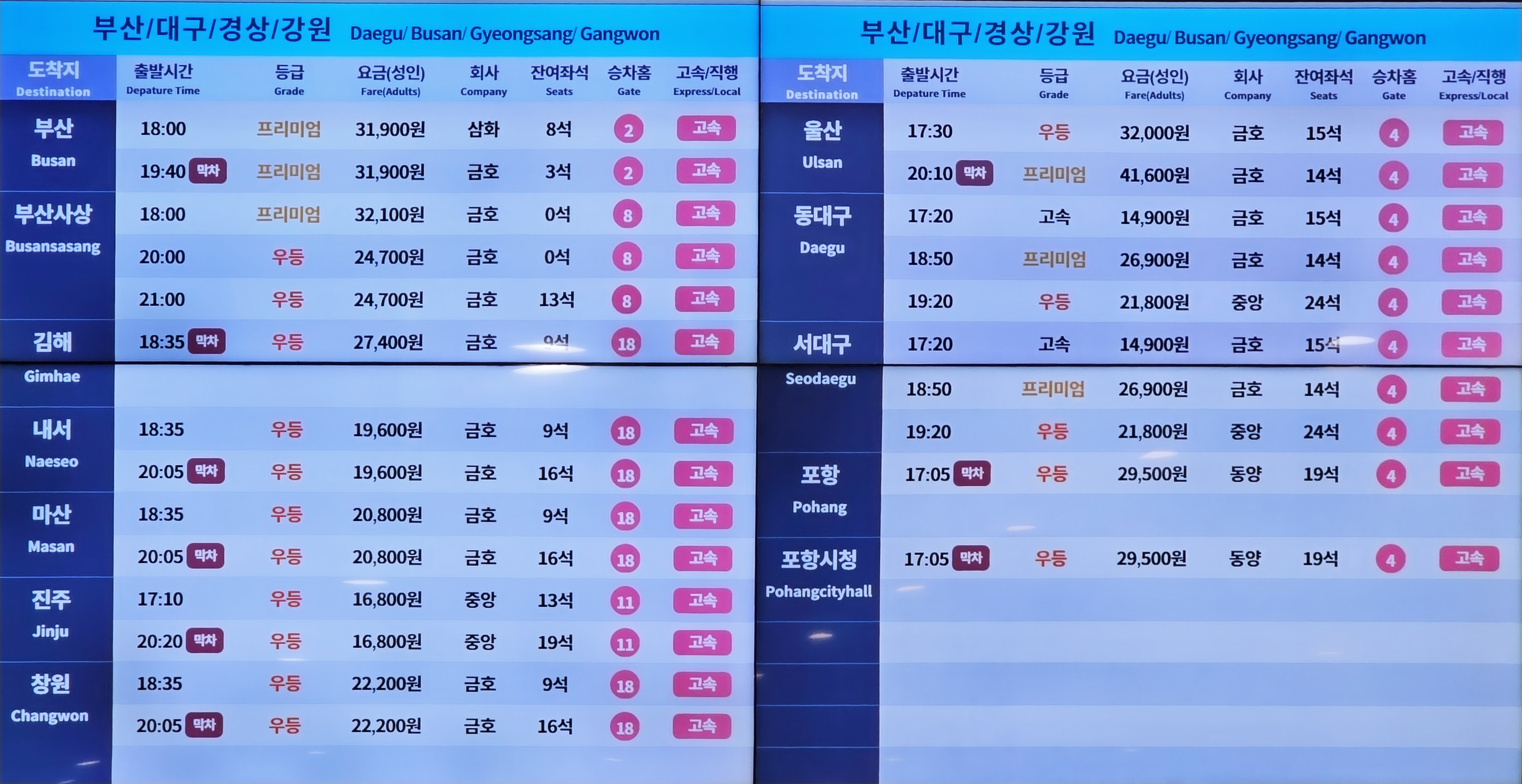 ▶고속버스 노선 시간표