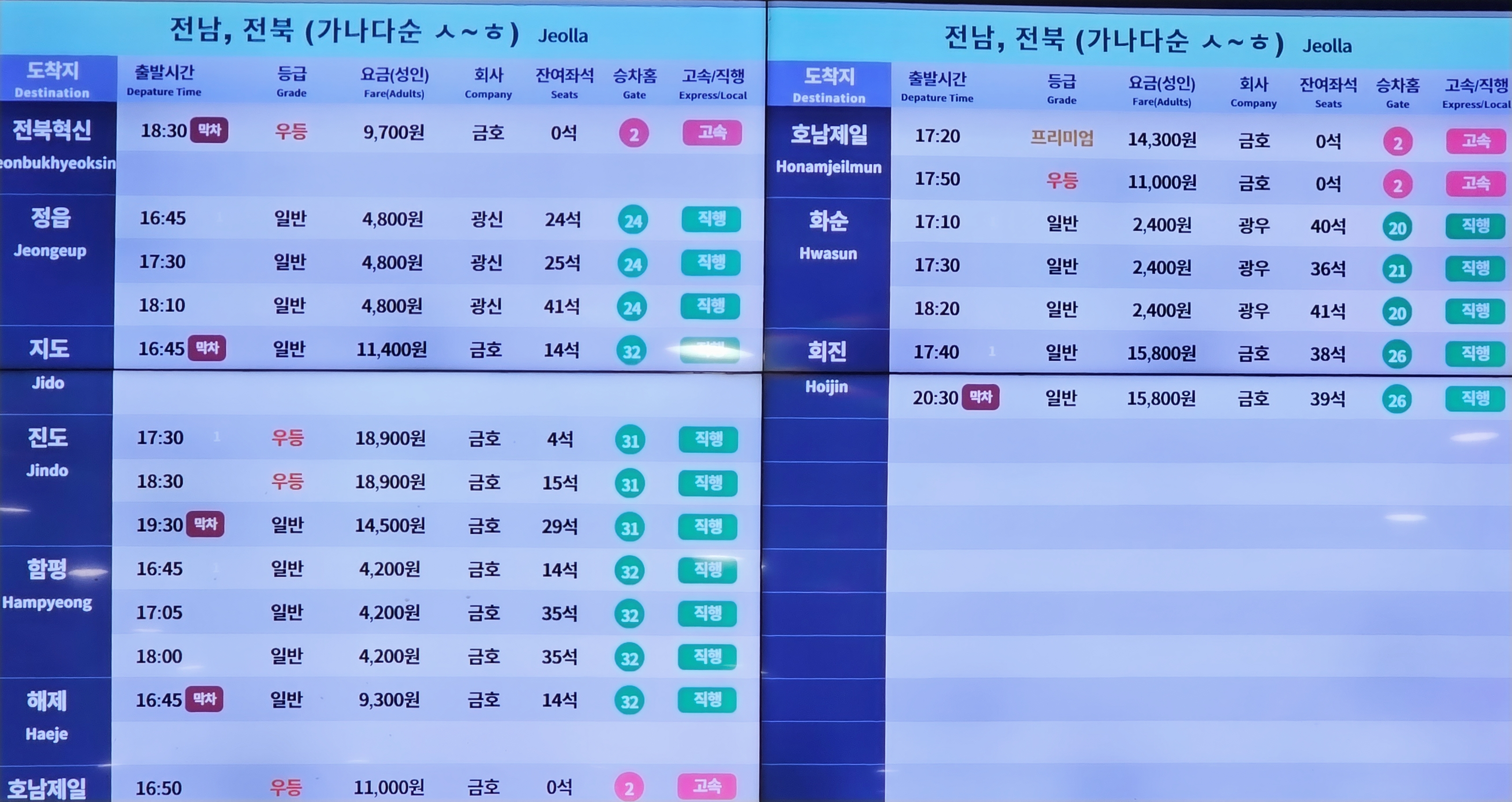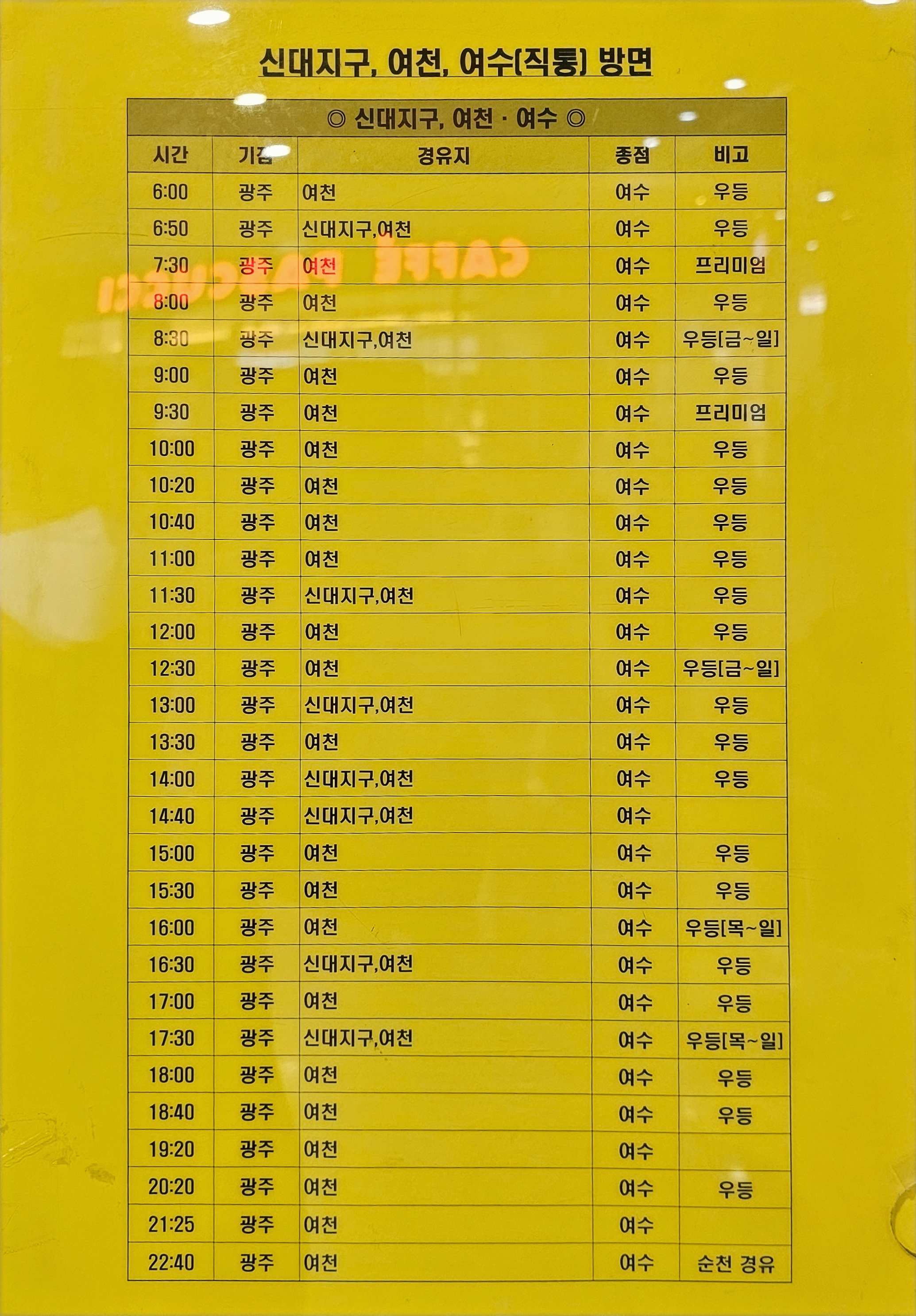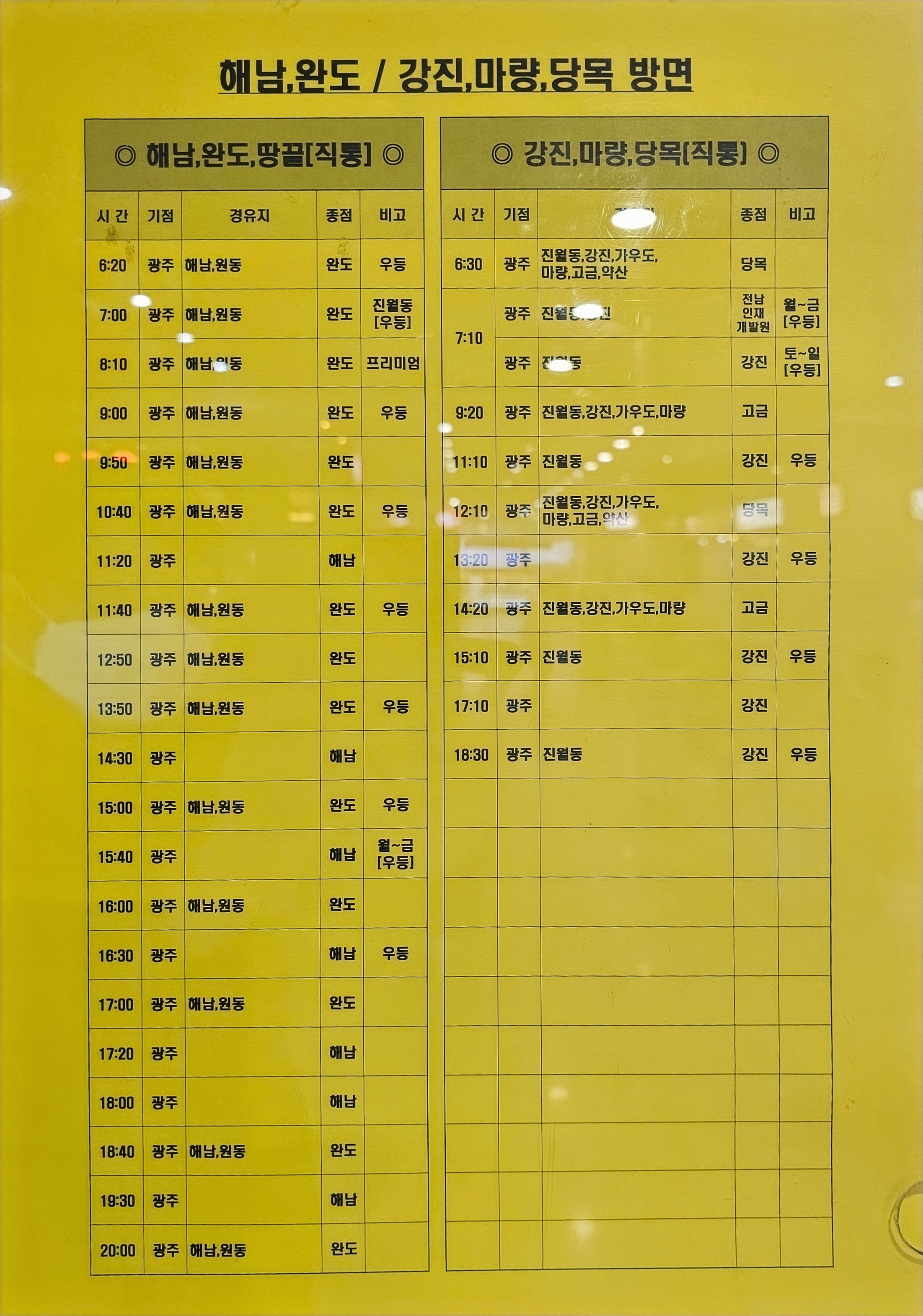 ▶고속버스 노선 시간표