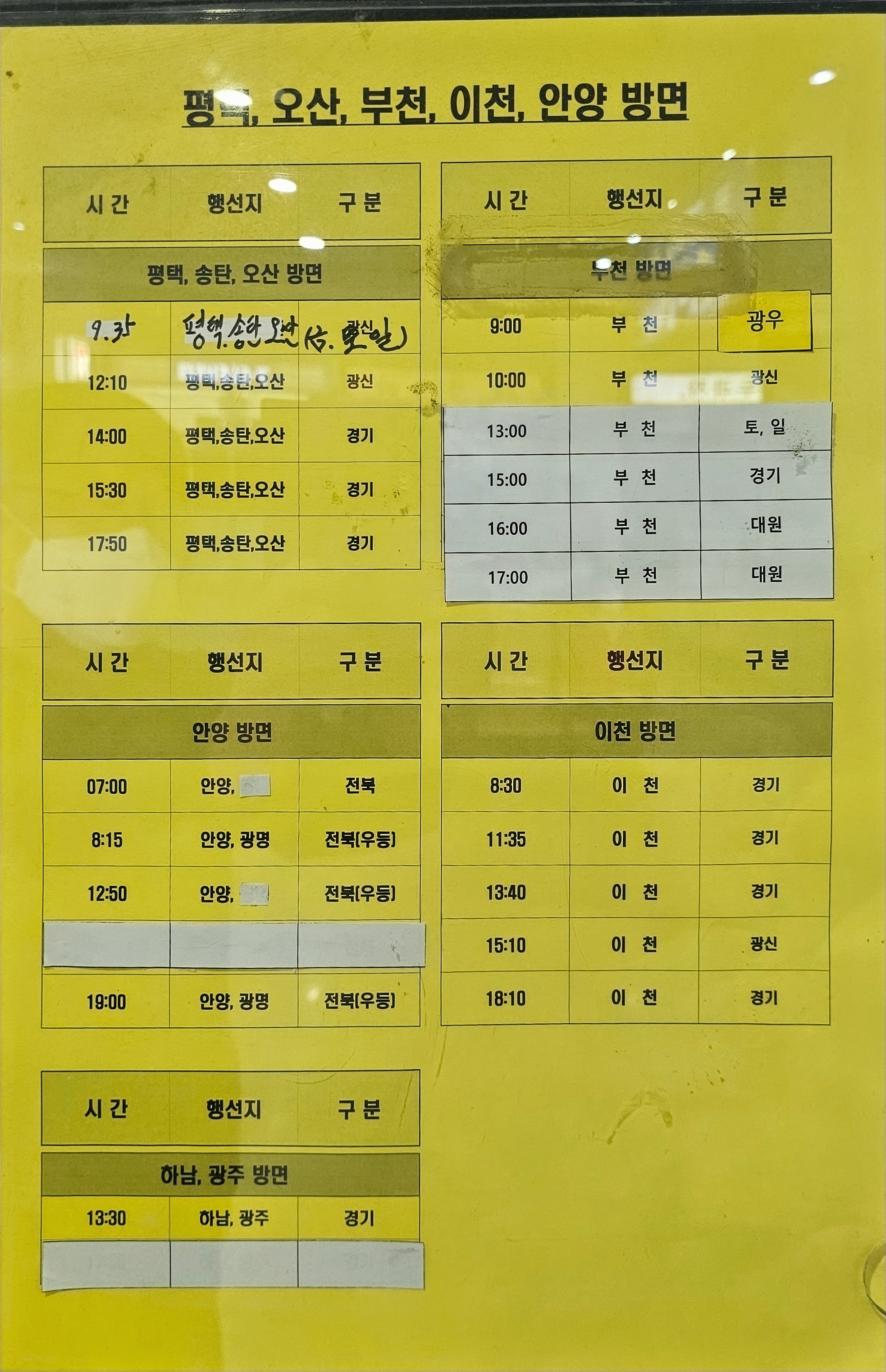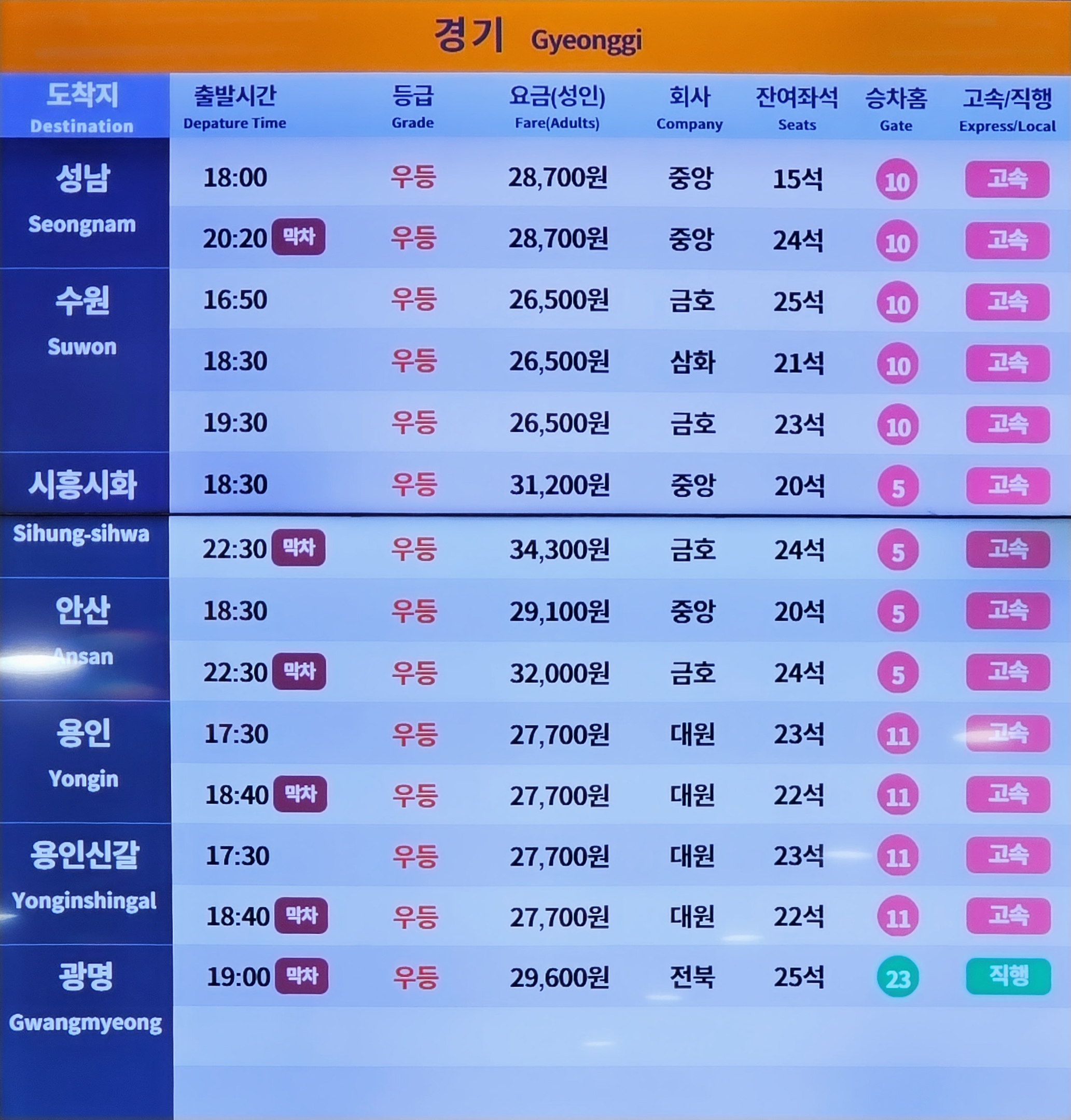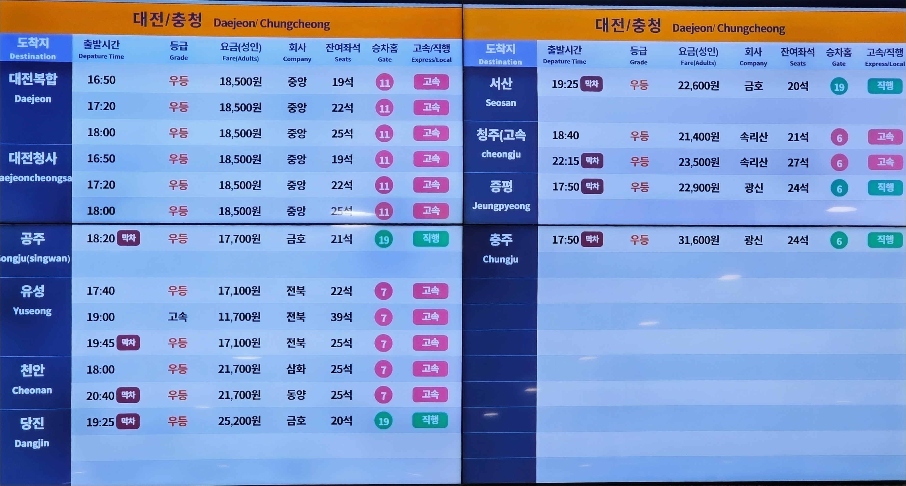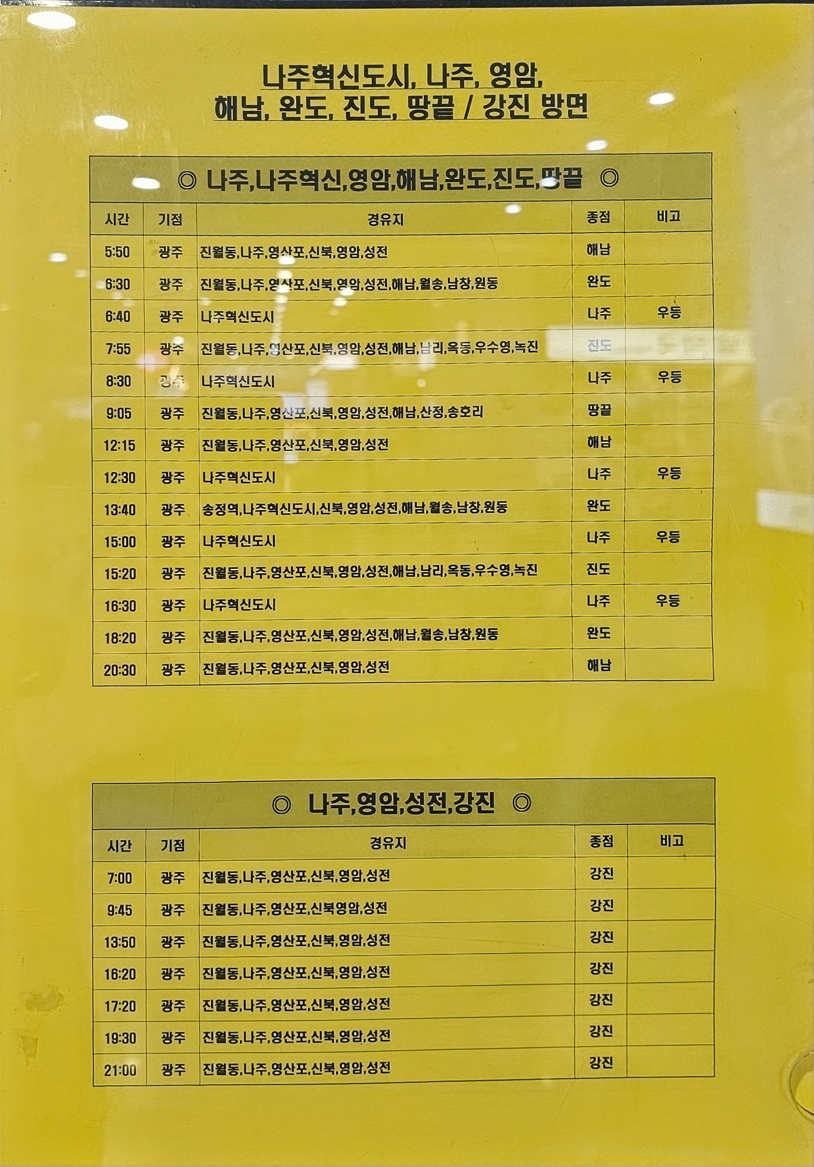 ▶고속버스 노선 시간표