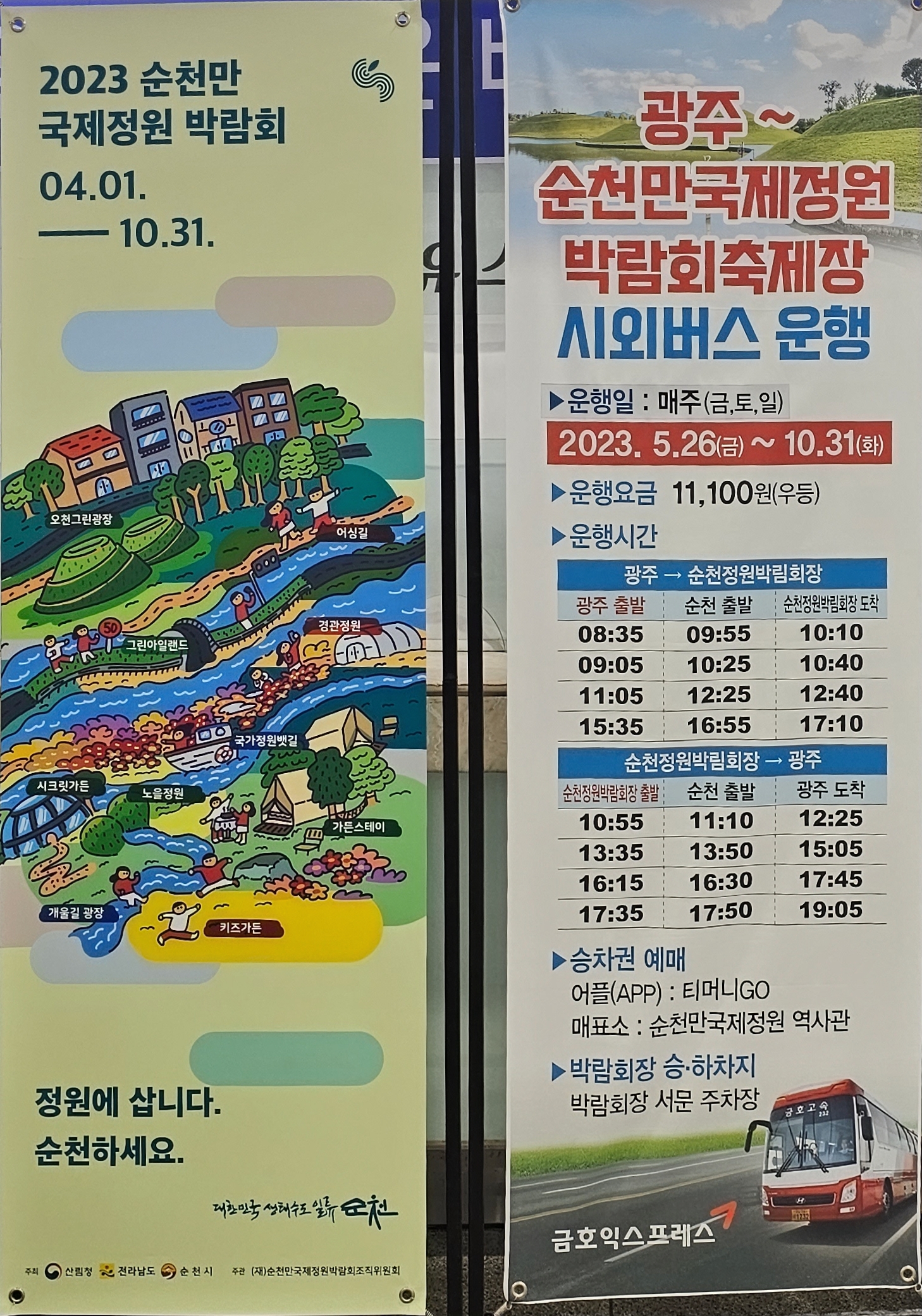 2023년 순천만 국제 박람회 기간에는 방문객의 이용편의를 위해 5월26일부터~10월31일 까지 광주종합터미널에서 순천만국제정원 박람회 축제장까지 금토일에 하루에 4회 운행하는데 이 시외버스는 순천을 경유한다.