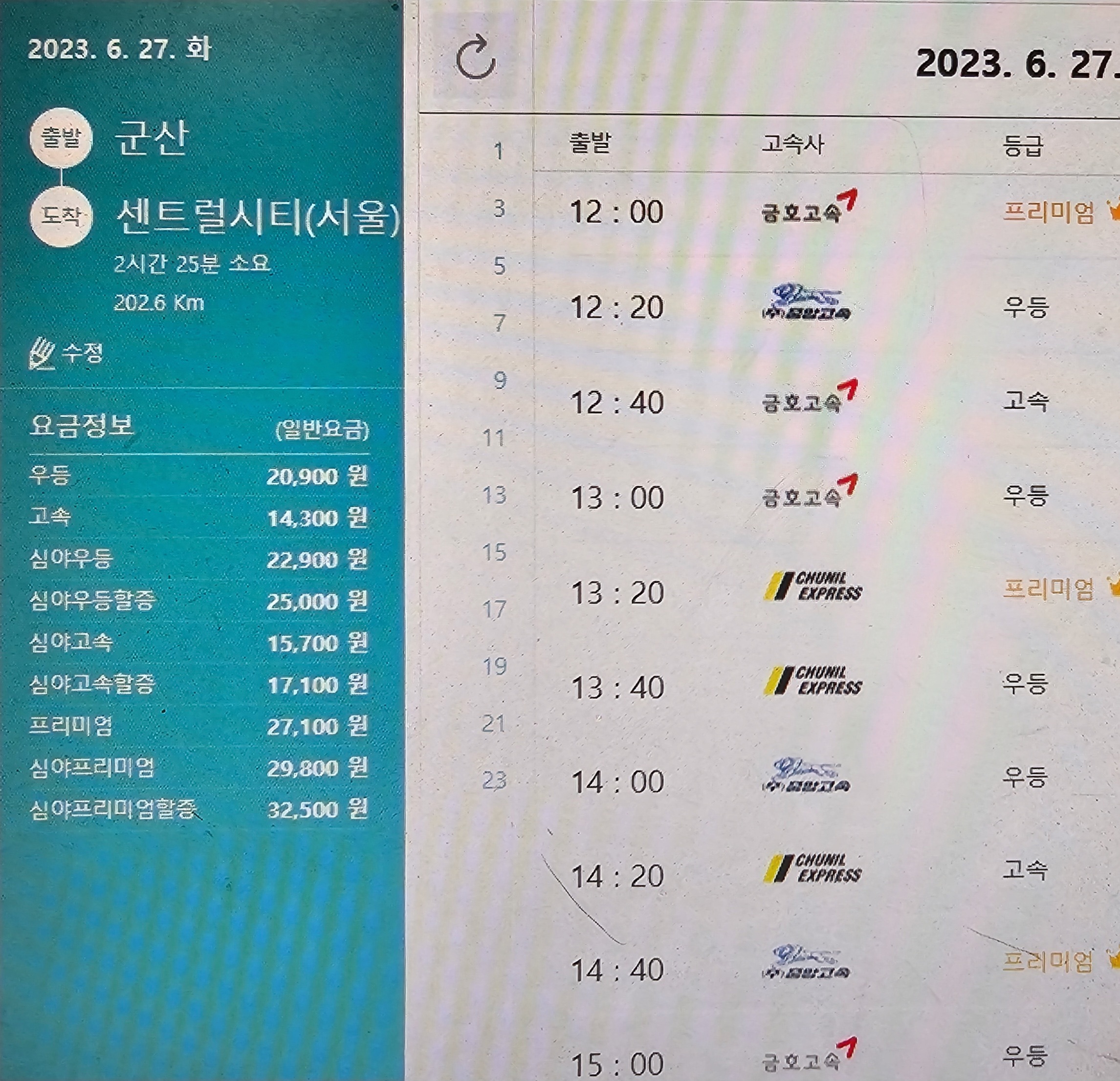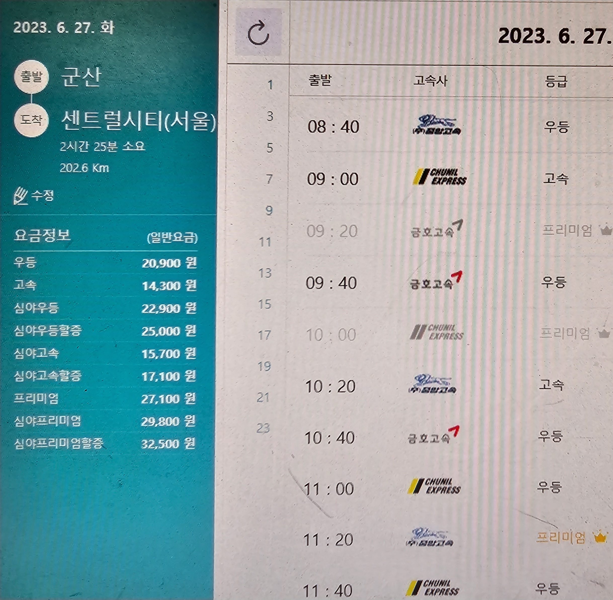 | 광주종합버스터미널 유스퀘어 시간표 예매(2023년 6월22일) (1) | 2023.06.22 |