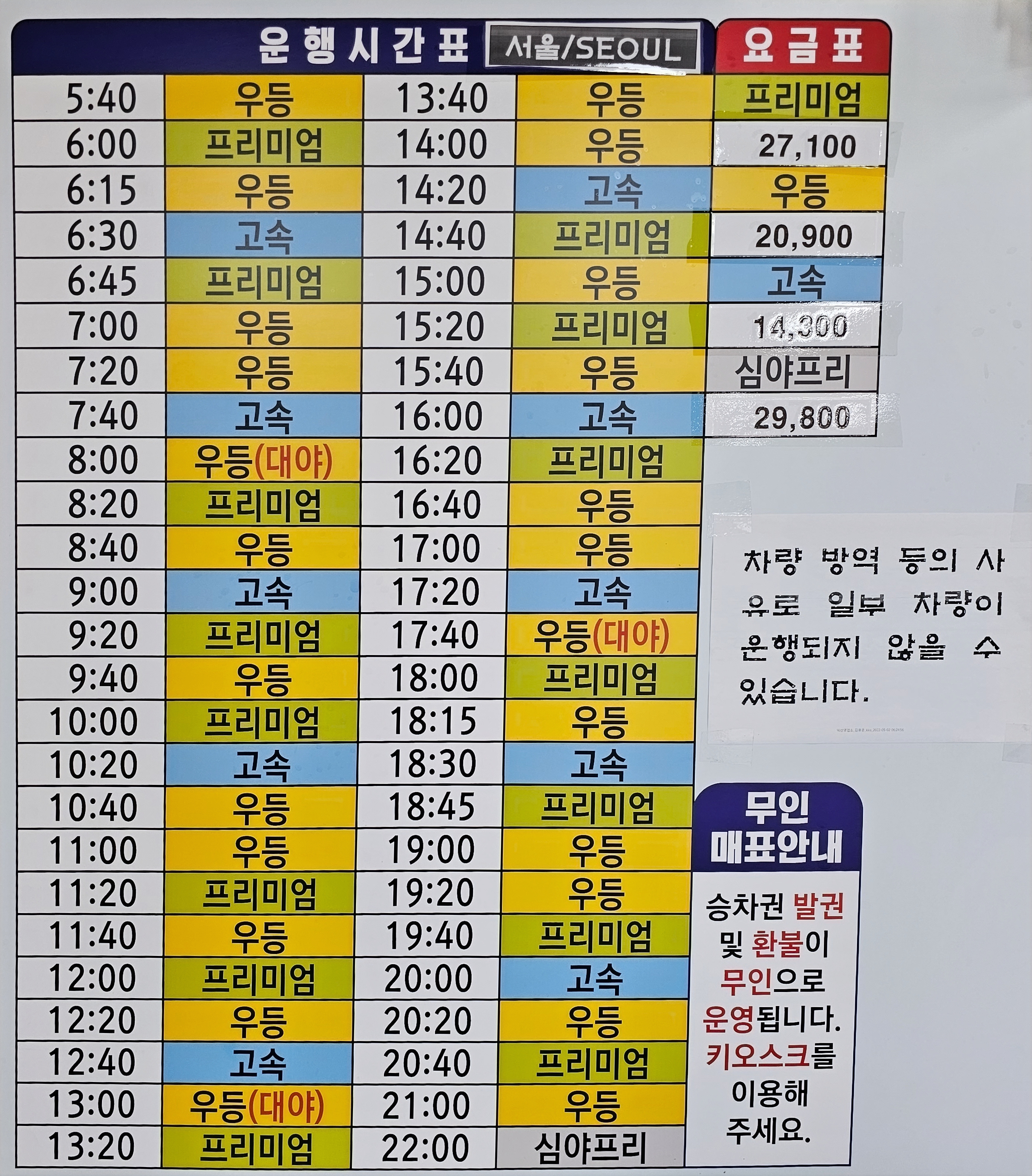 실시간 고속버스 시간표 확인 및 예매 바로가기☜