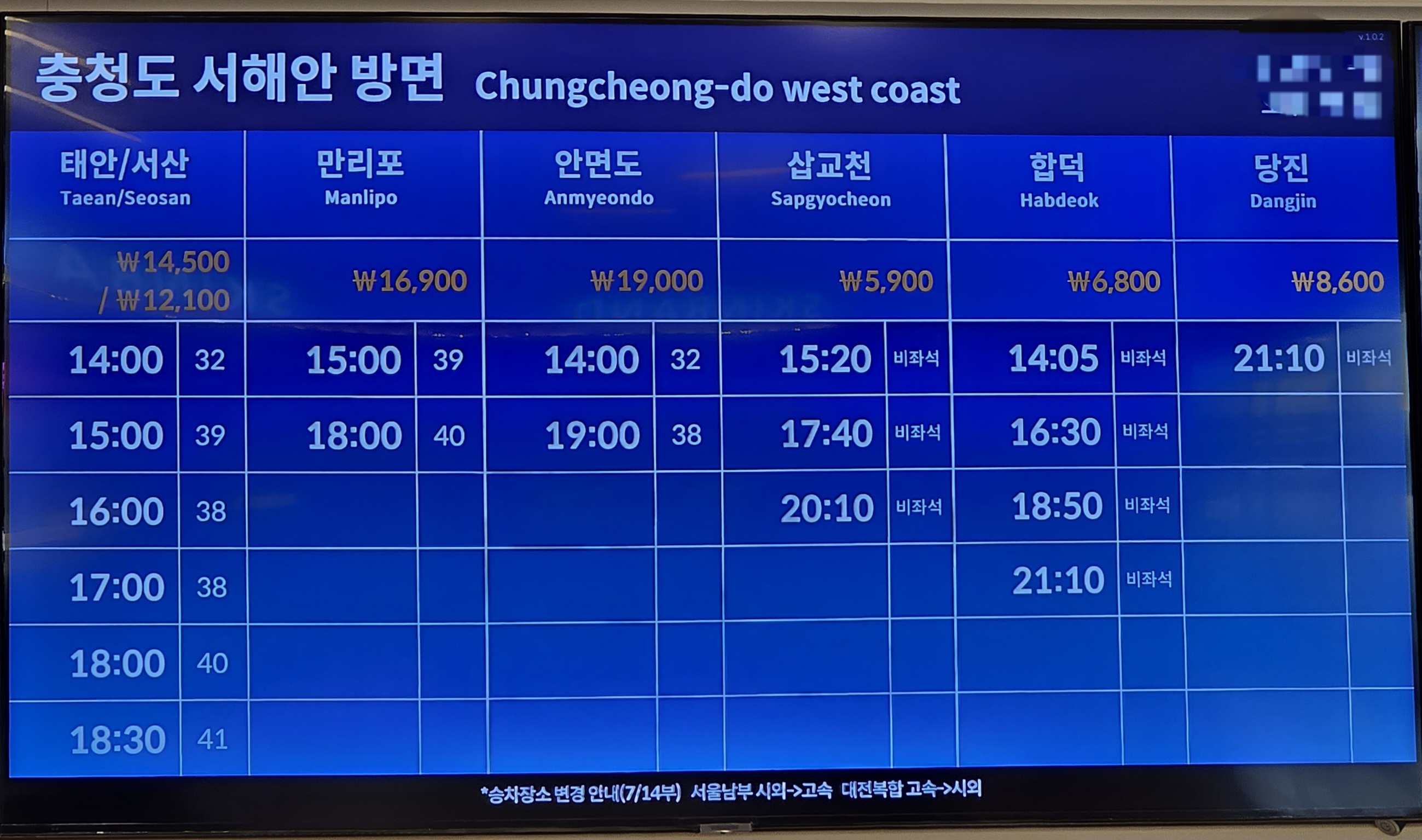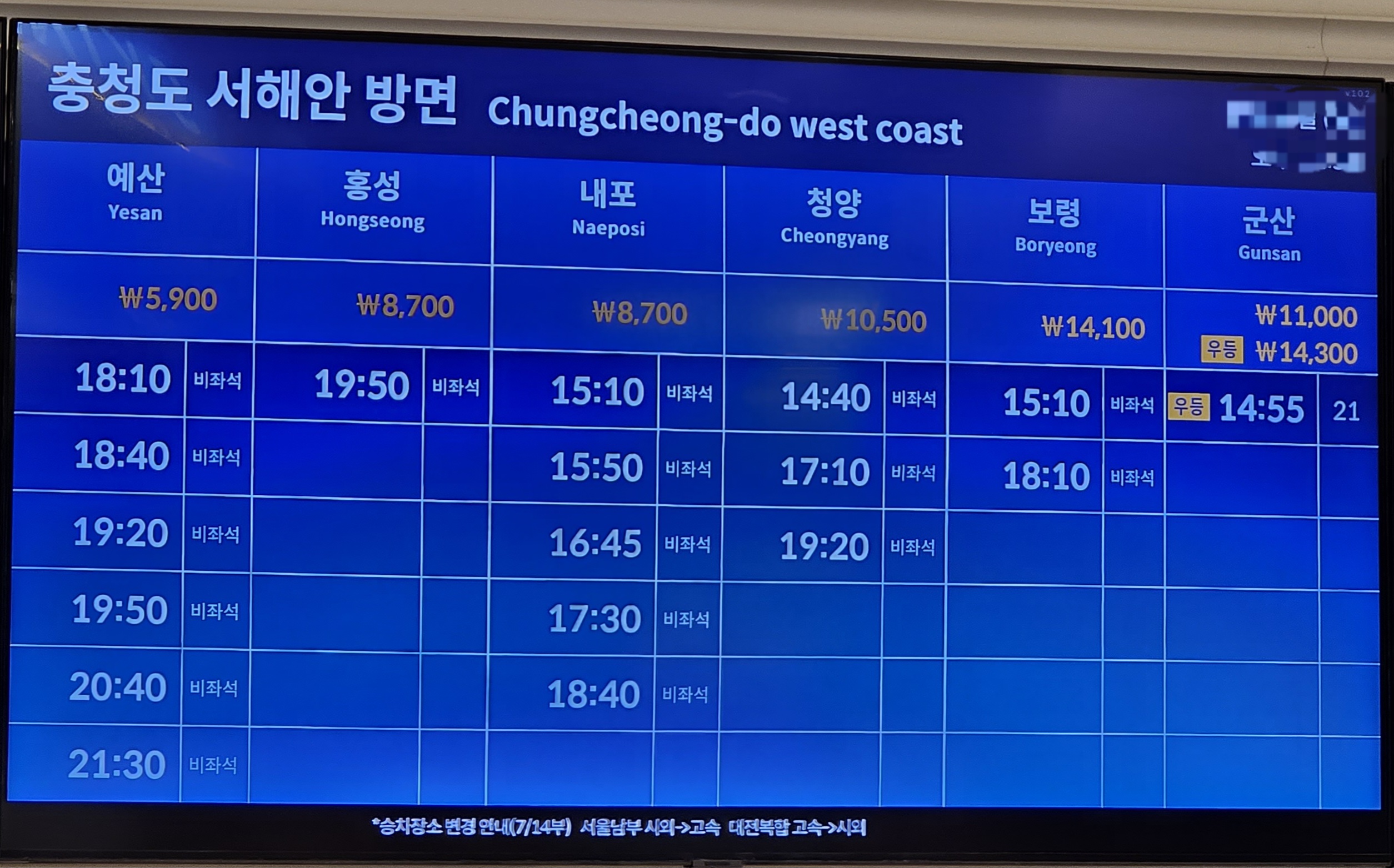 그리고 천안에서 대전복합가는 기존 고속버스터미널에서 이용하던 노선은 7월14일 부터는 시외버스터미널을 이용하여야 한다.