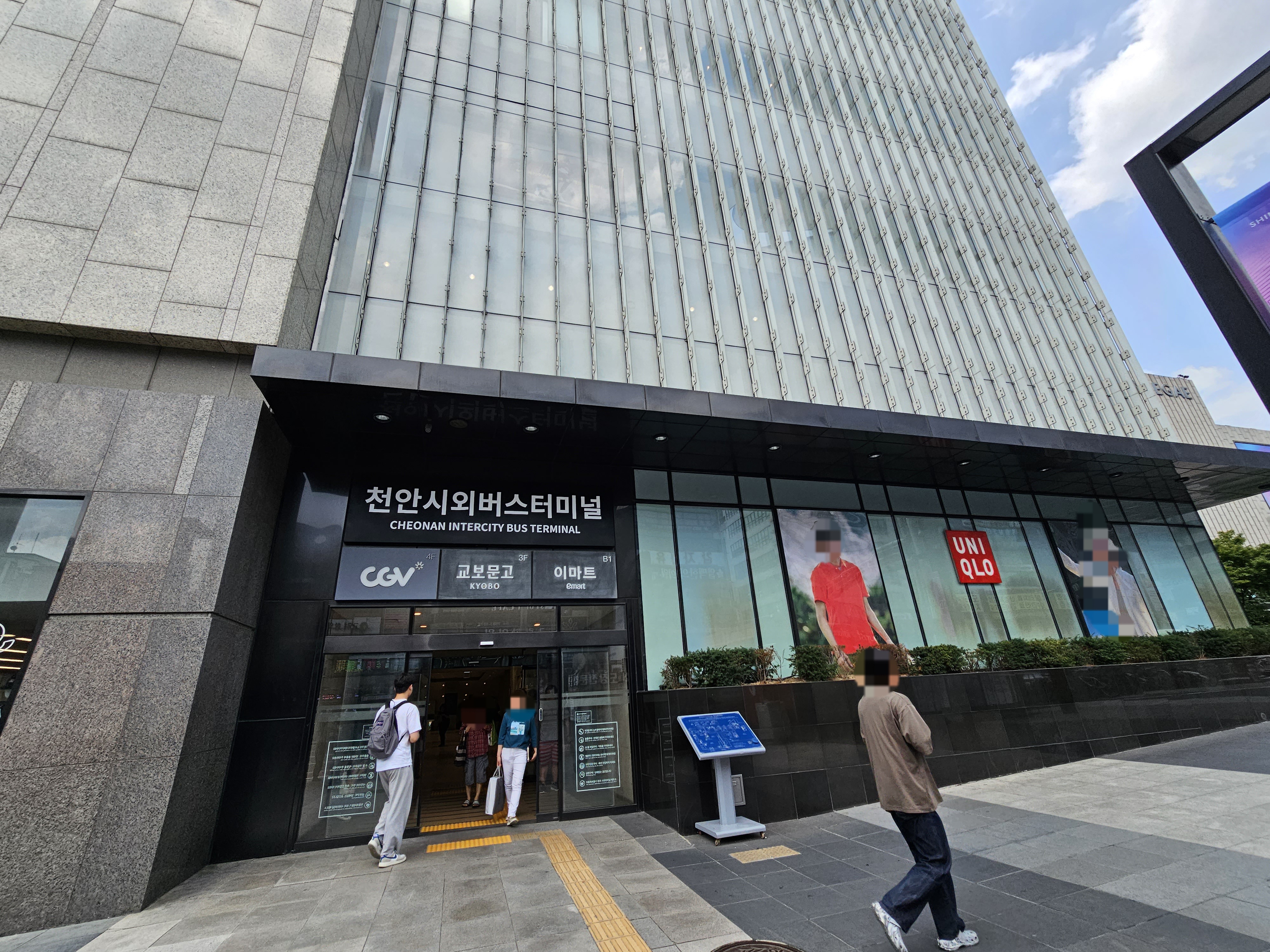 천안버스터미널은 신세계 백화점 왼쪽건물에 별도로 운영중인 고속버스터미널과 신세계 백화점 지하1층인 시외버스터미널로 분리되어 운영되고 있다.