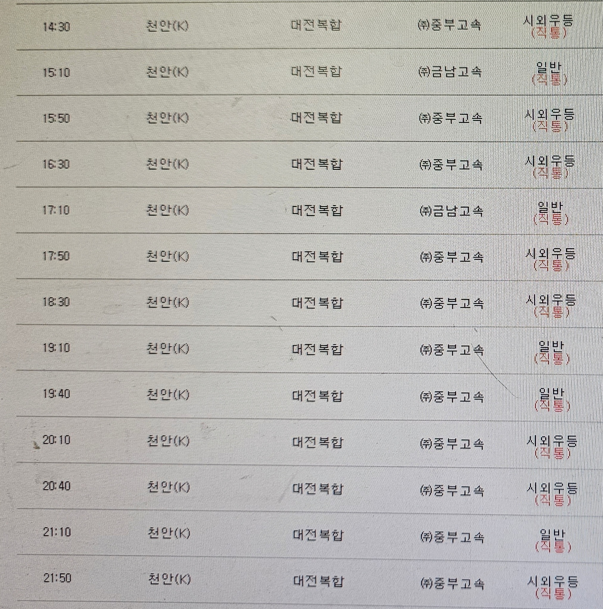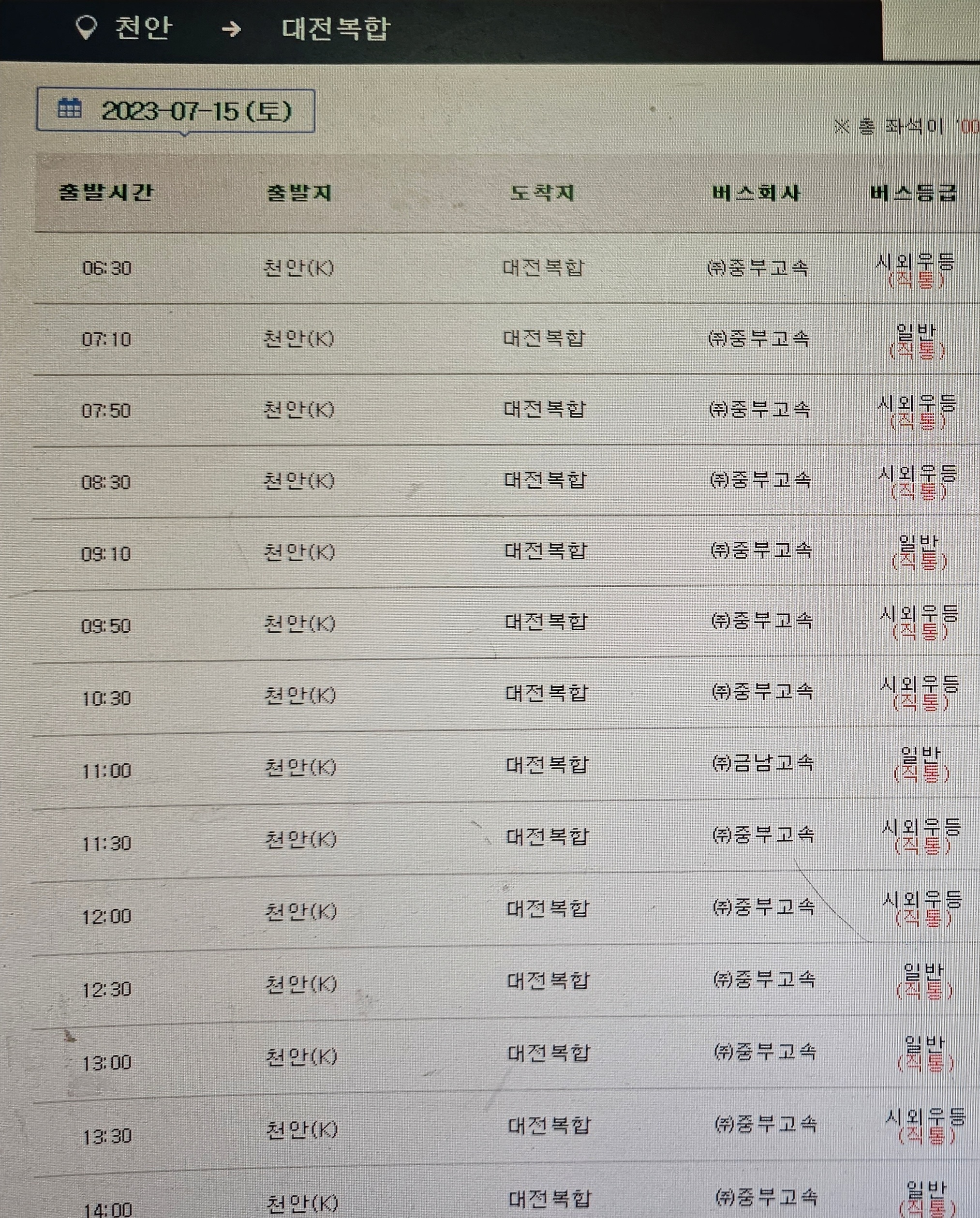 천안에서 대전가는 버스는 고속버스 노선에서 시외버스 노선으로 2023년 7월14이 변경되어 승차홈도 시외버스터미널에서 승차 하여야 한다.
