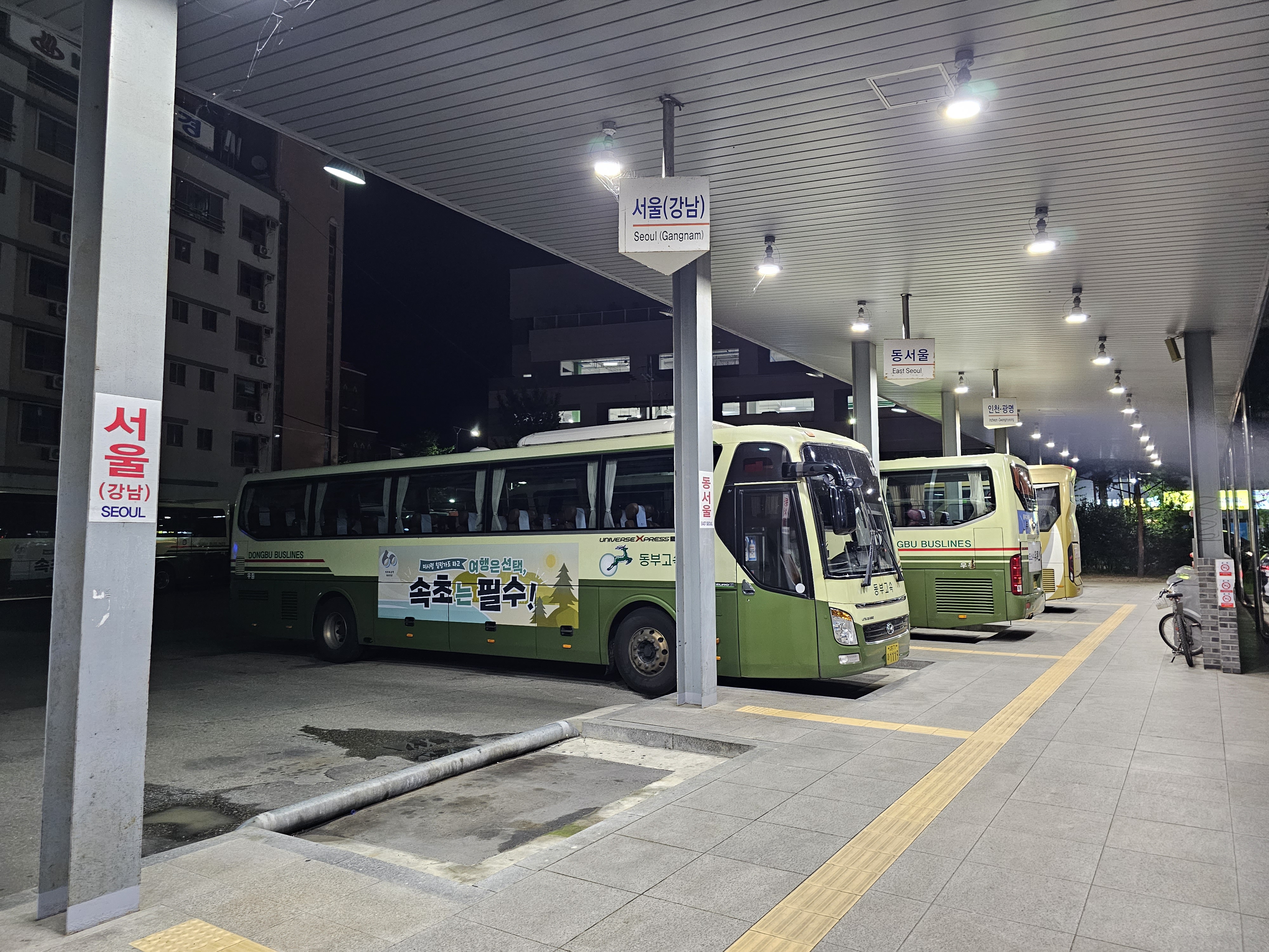 속초고속버스터미널엣 서울 강남까지는 약 2시간 30분이 소요된다.