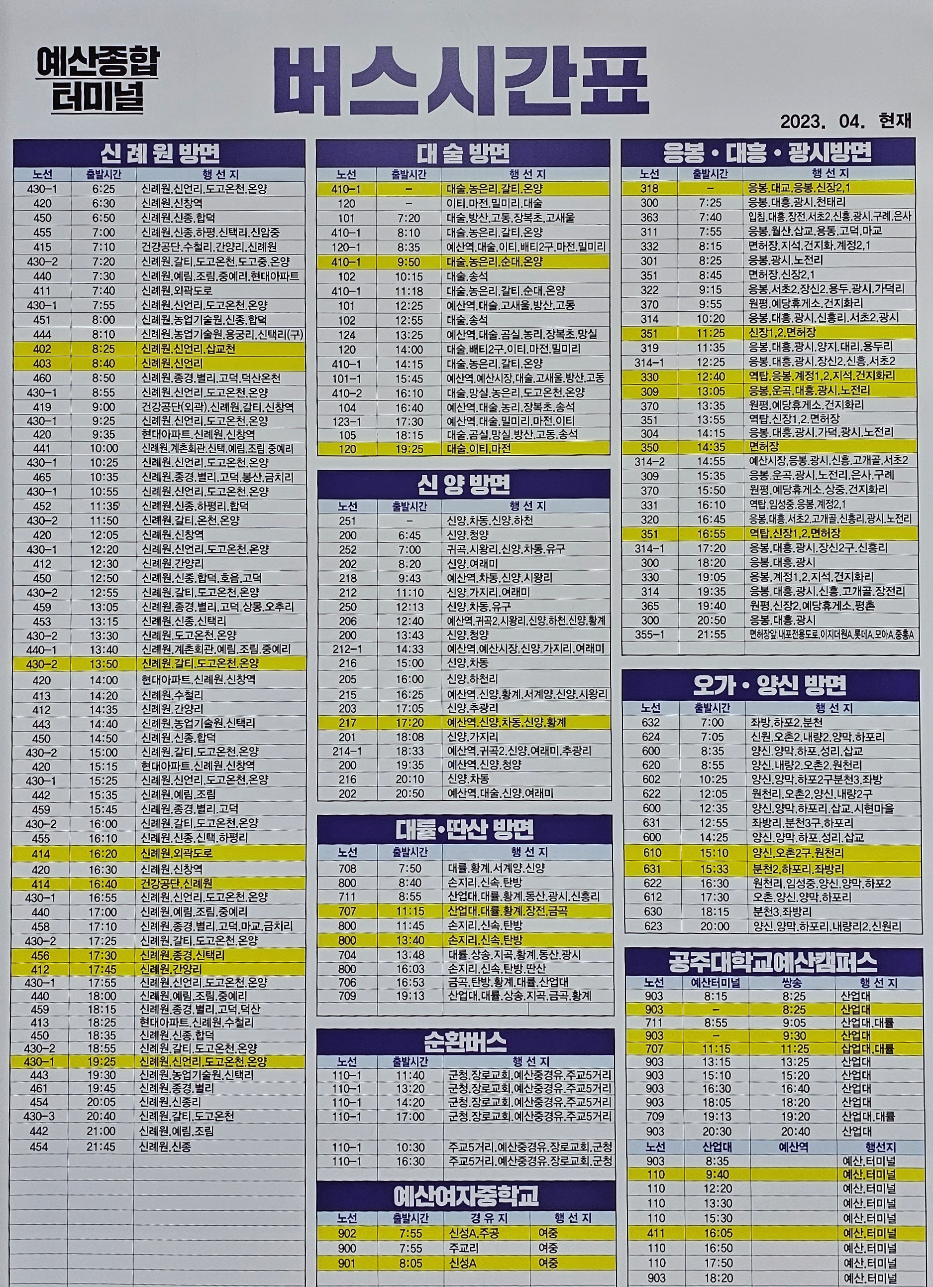 예산터미널의 시간표와 예산터미널에서 예당호 출렁다리 가는 버스 시간표에 대하여 알아보자.