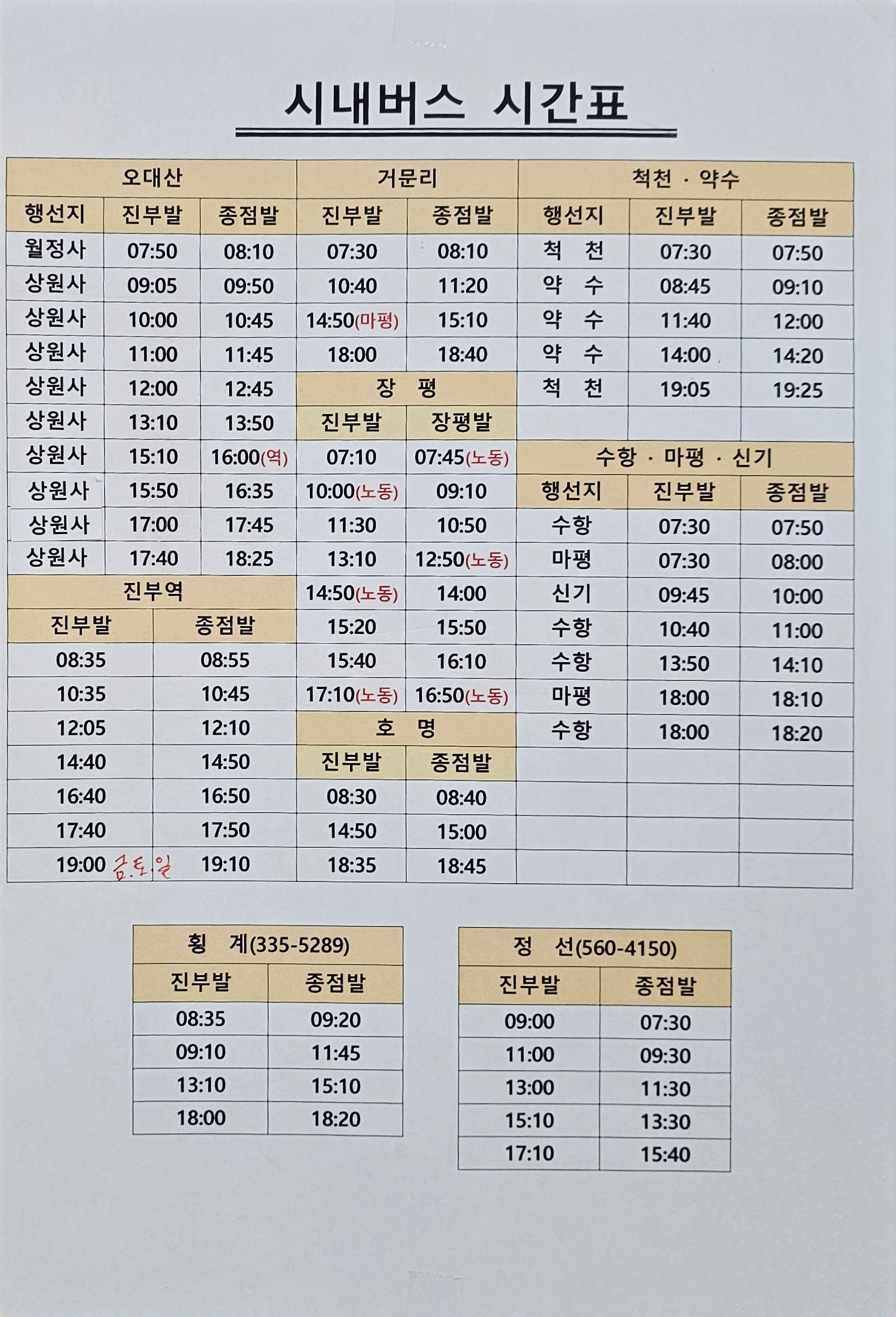■진부터미널 시내버스 시간표