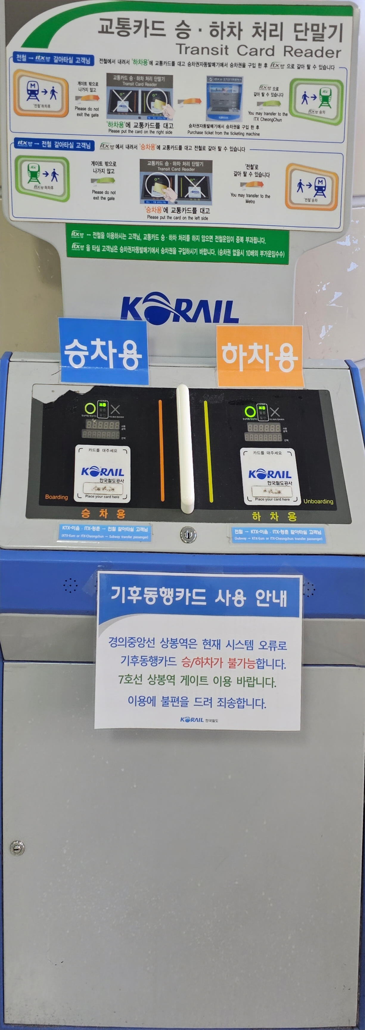 춘천가는 ITX 청춘열차는 교통카드로는 승차가 되지 않고,반드시 철도 승차권을 구입하여 승차 하여야 한다.