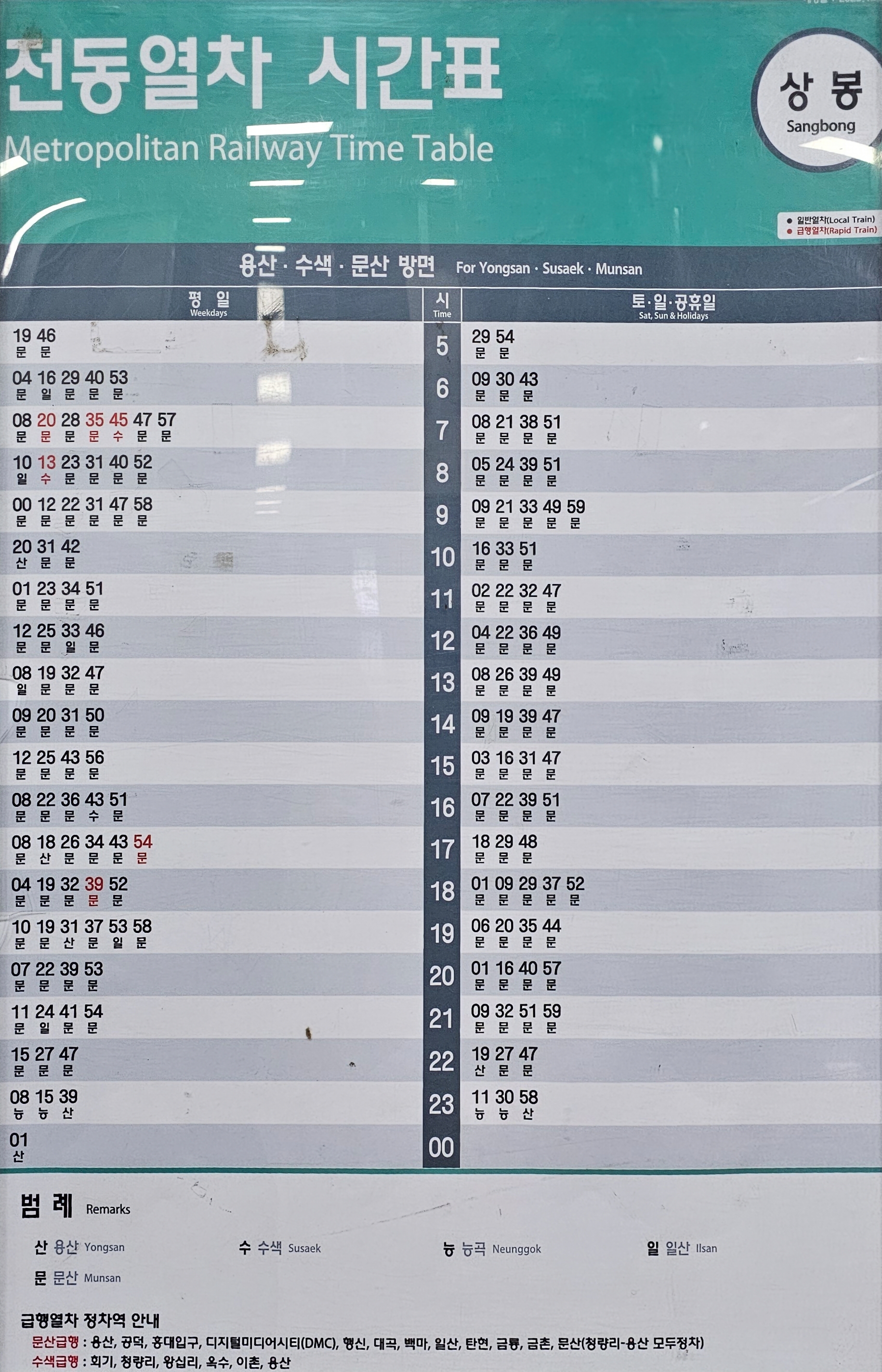 ■상봉역 경의 중앙선 전철 시간표