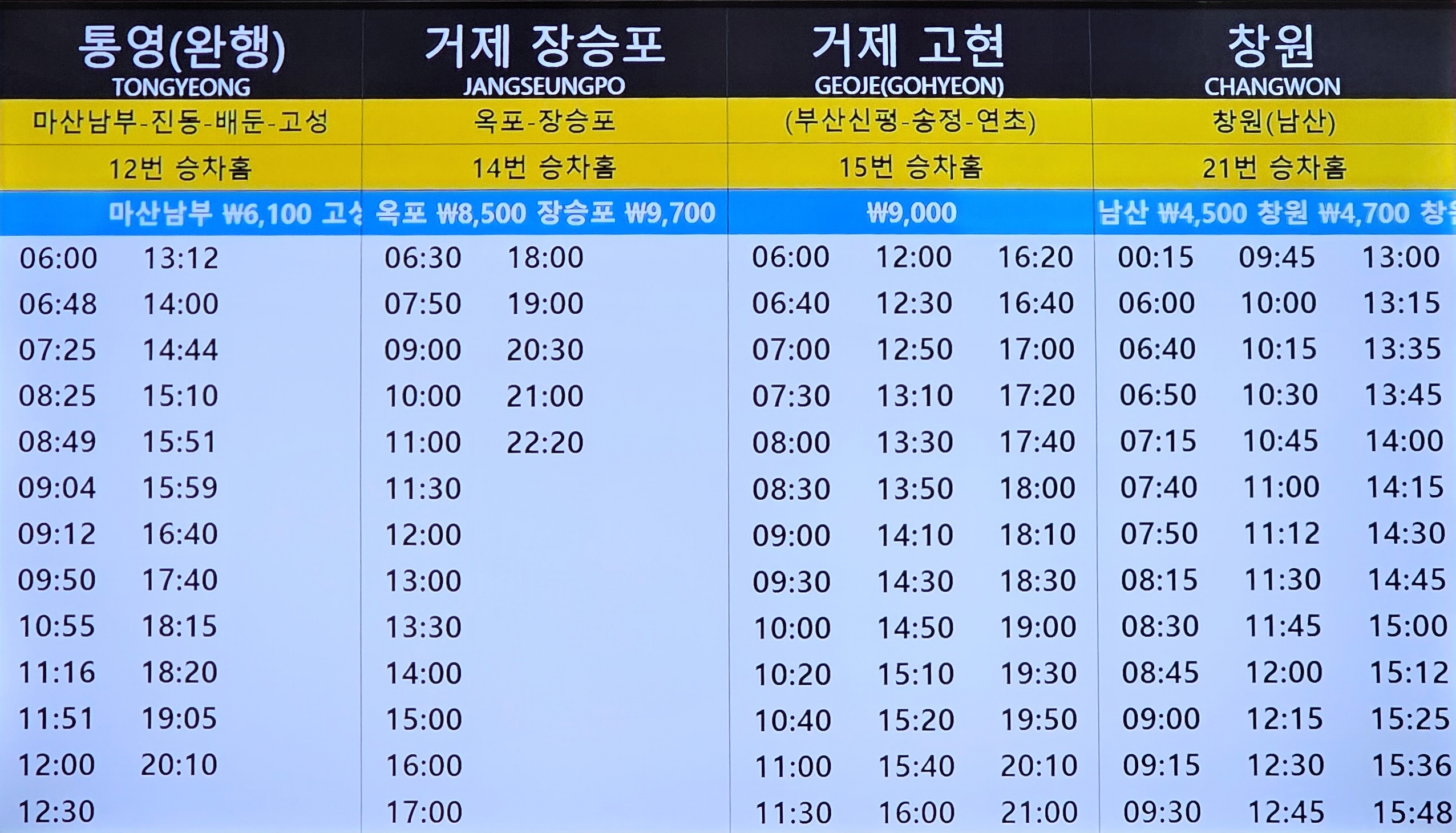 부산고속버스터미널 시간표(2024년 1월 6일 기준)시외버스 통도사