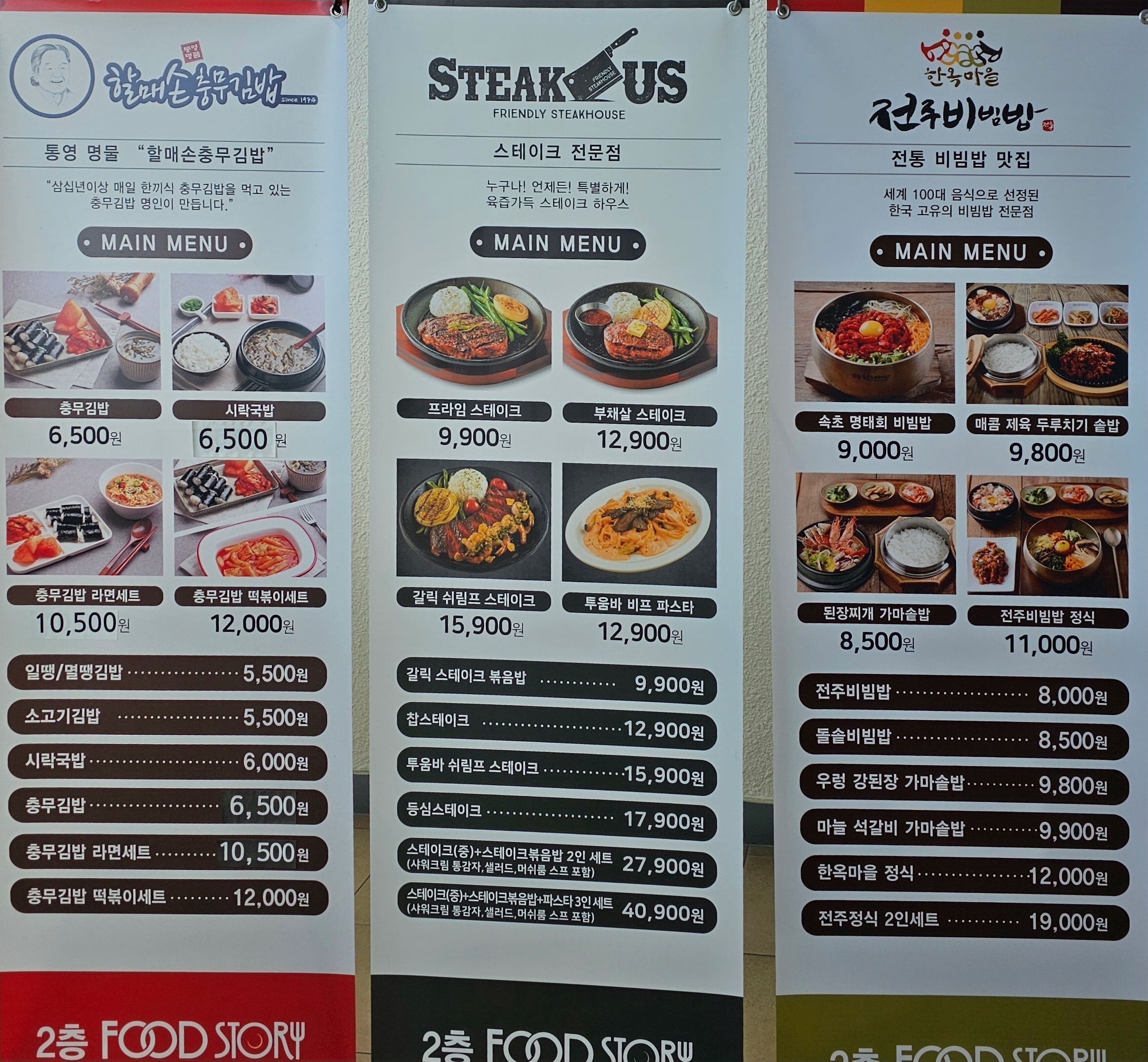 부산서부버스터미널 2층 푸트코트 식당가에 입점에 있는 식당들의 메뉴판과 가격표를 비교해 보았다.