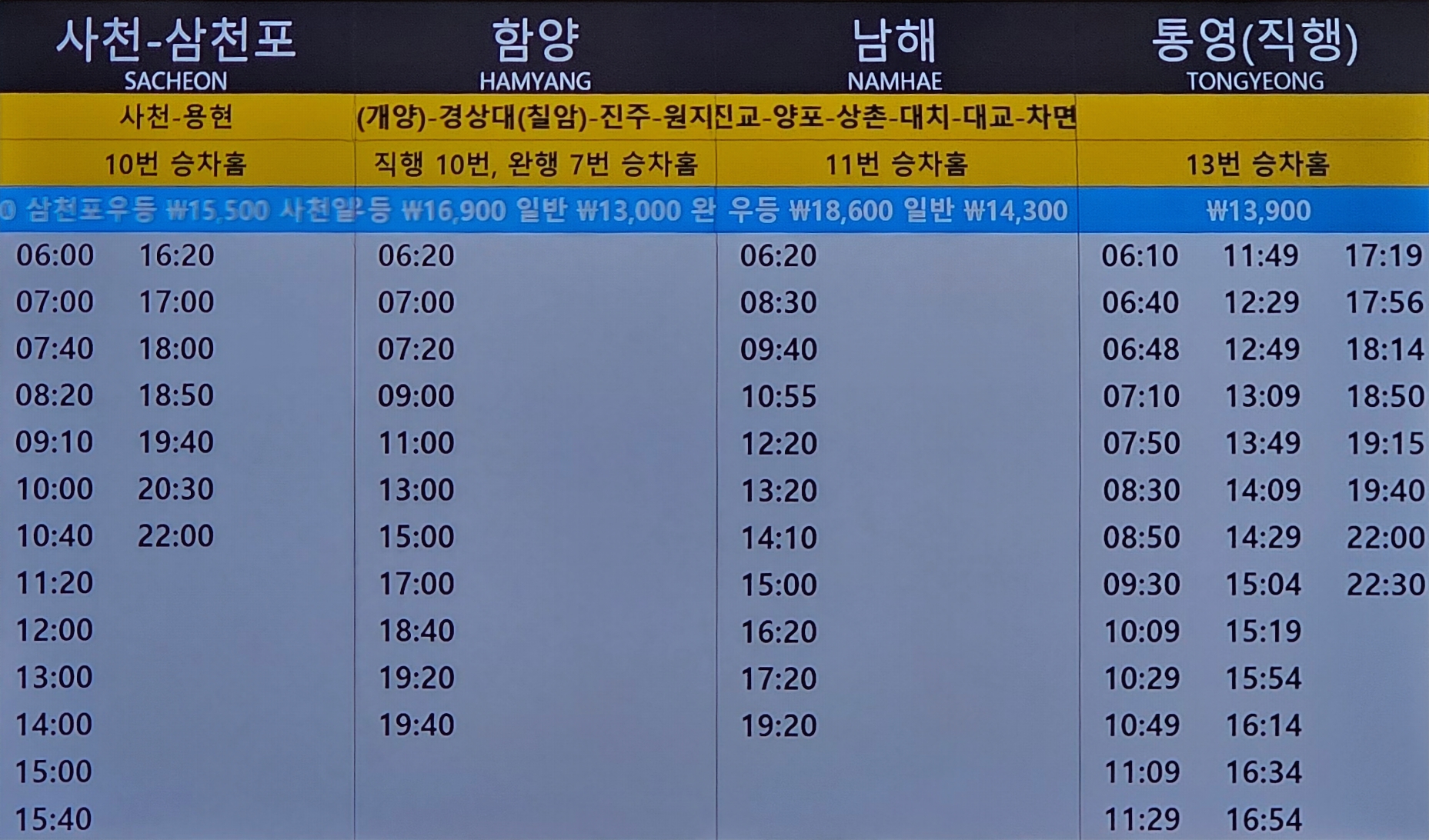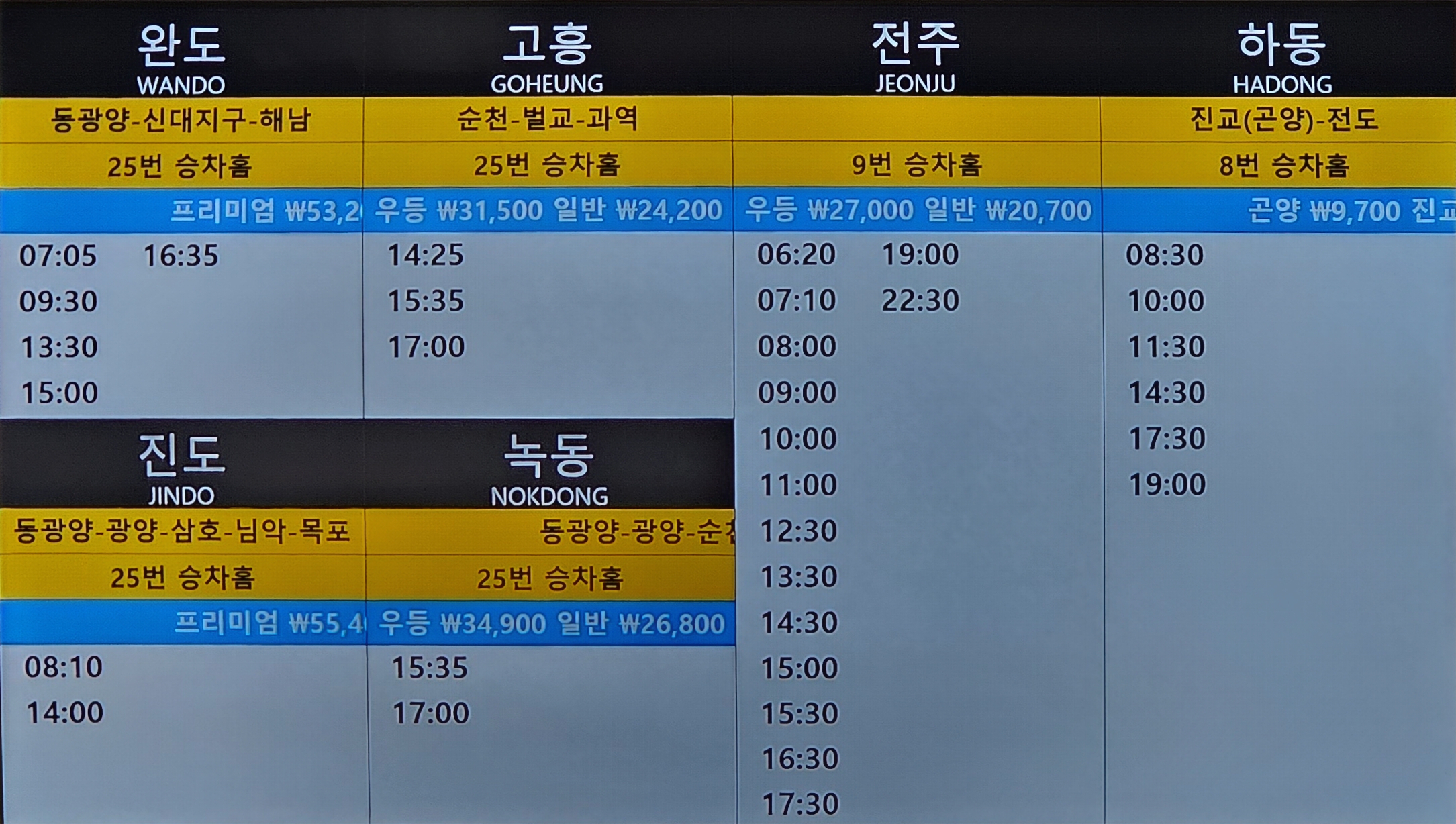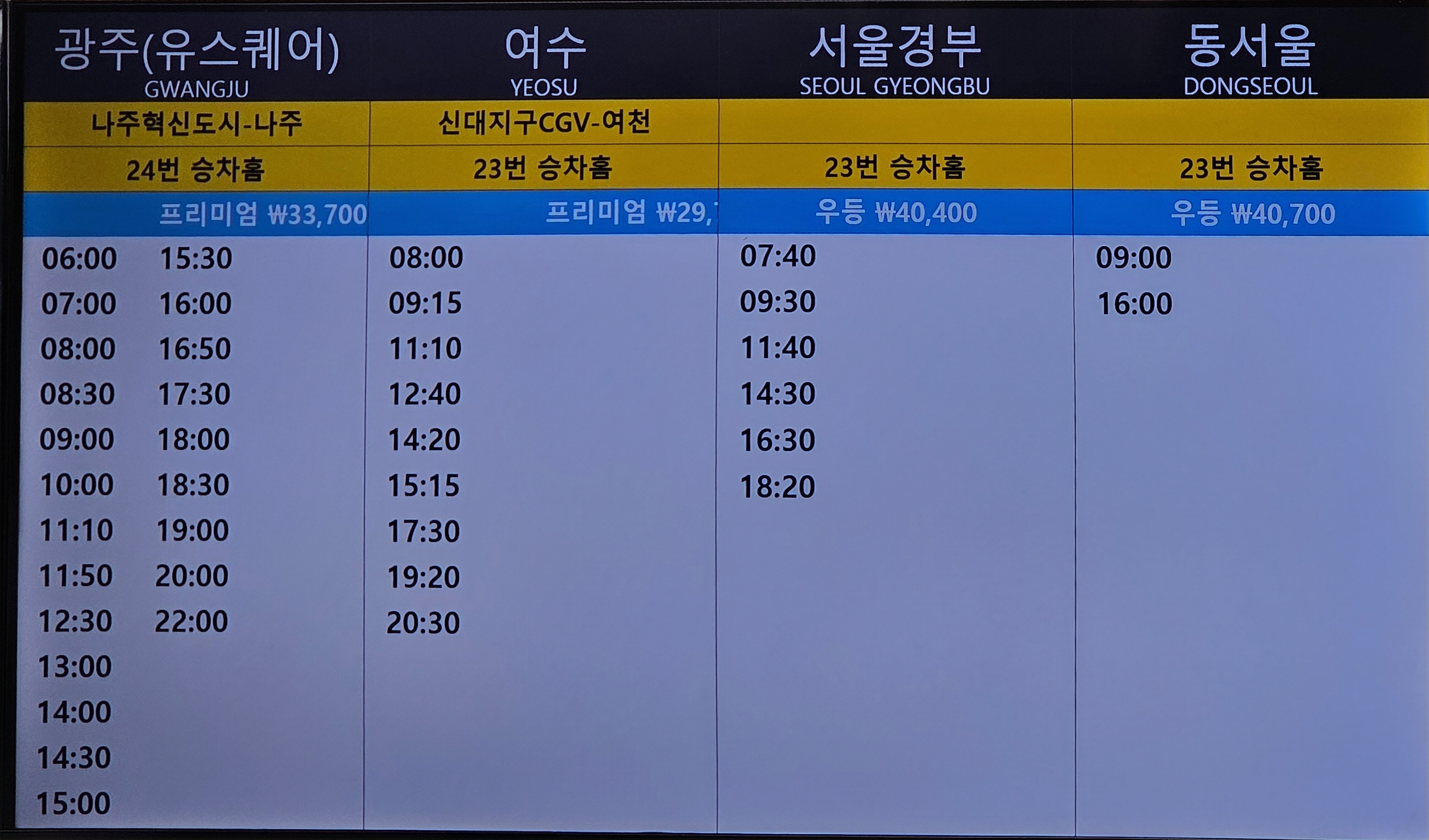 | 광주 유스퀘어 터미널 시간표(2024년 3월 15일 기준)맛집 (2) | 2024.03.15 |