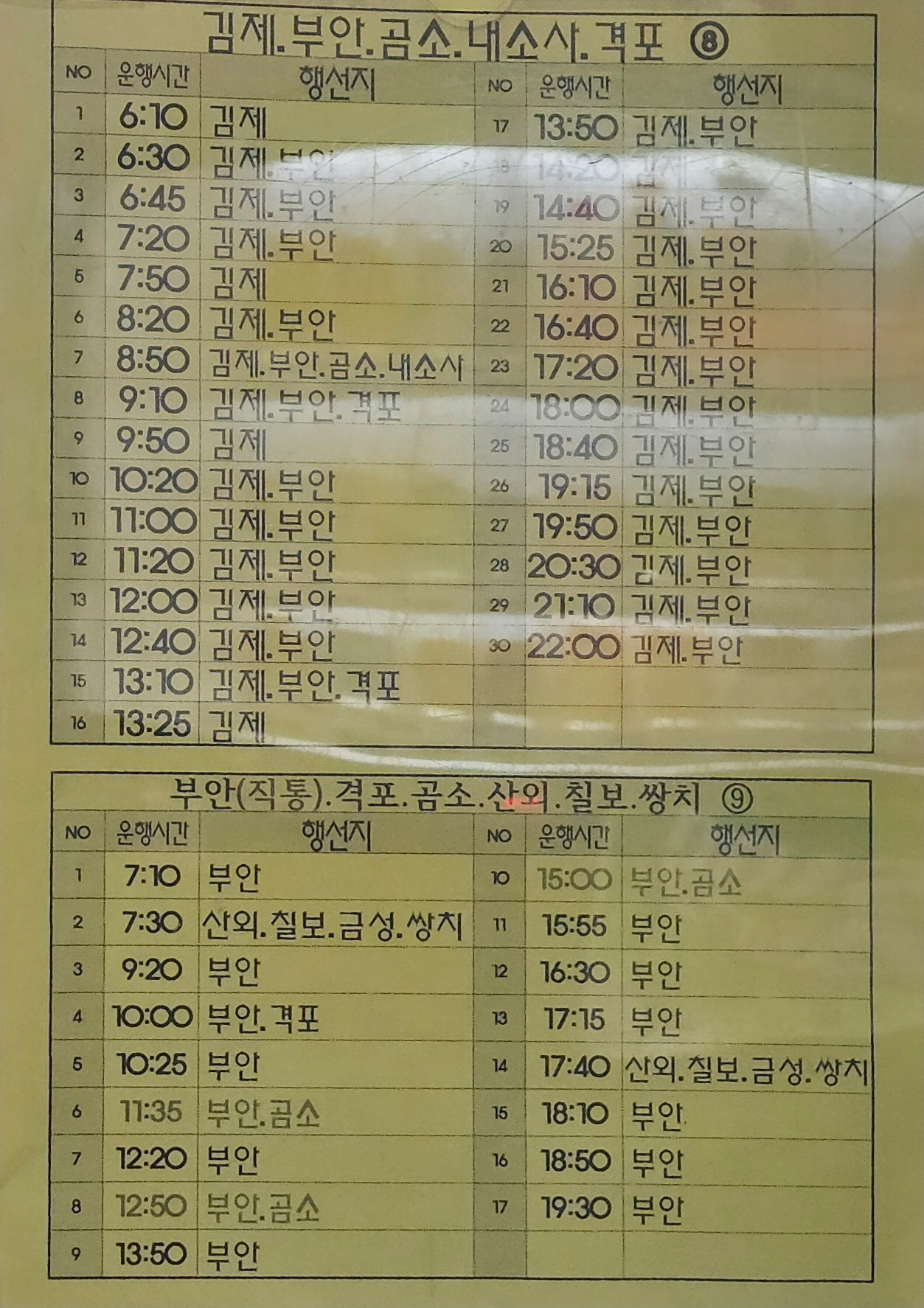 그리고 부산서부가는 막차는 전주에서 22시30분에 운행한다.