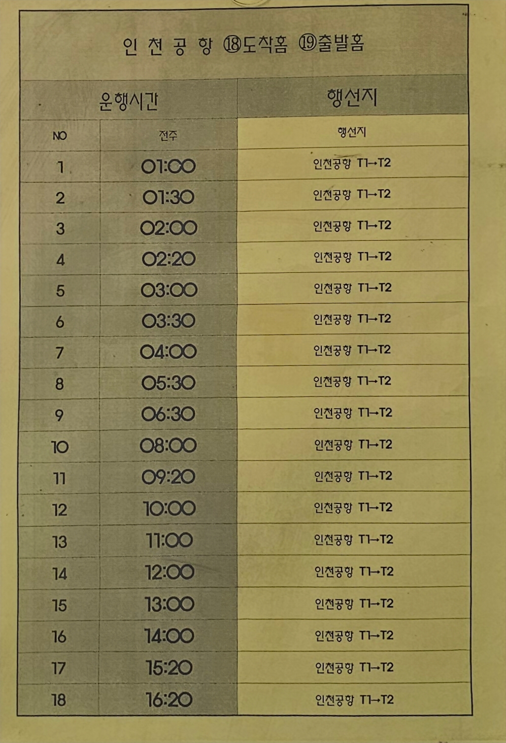 인천공항 방면 버스는 제1여객터미널을 경유하여 제2여객터미널까지 운행한다.
