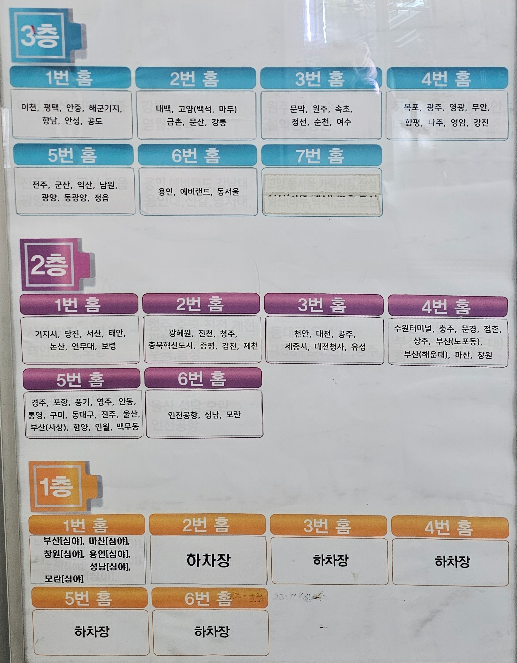 심야버스 승차홈은 1층 1번 승차홈이다.