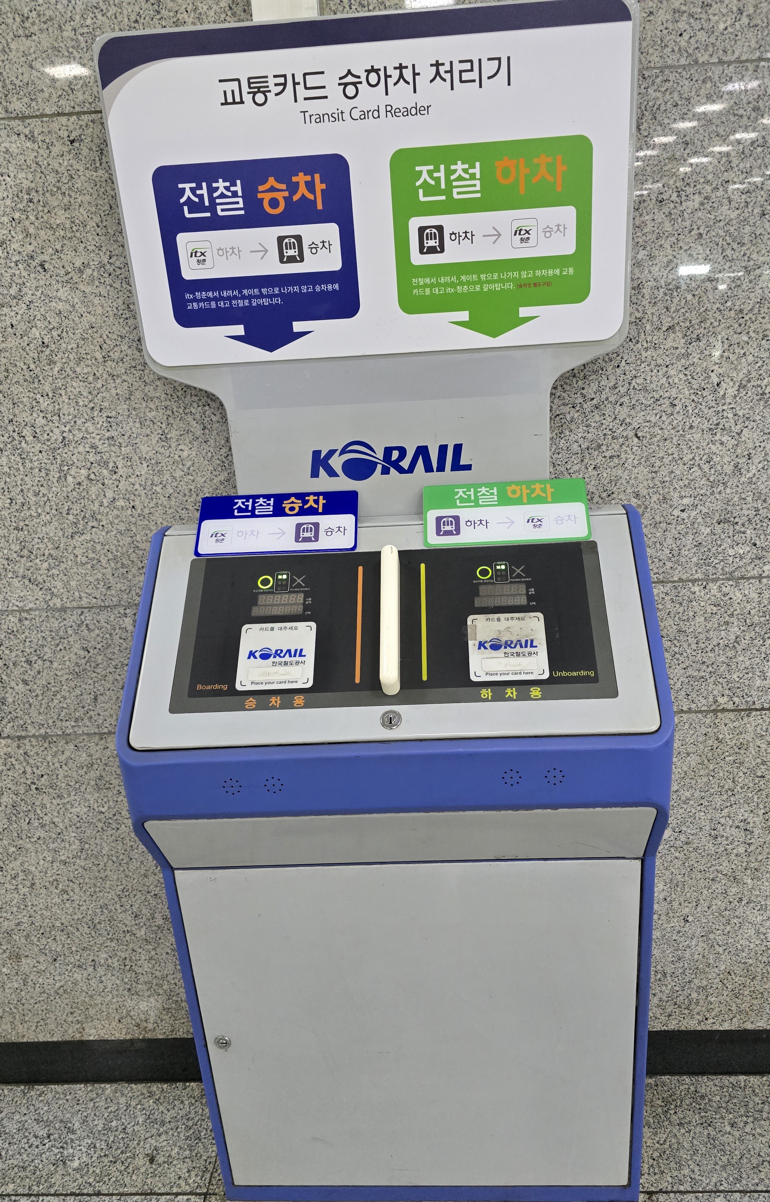 ITX 청춘열차 이용하다가 전철로 환승할 경우에는 승강장 내에 설치된 환승 단말기에서 승하차 처리를 하여야 한다.