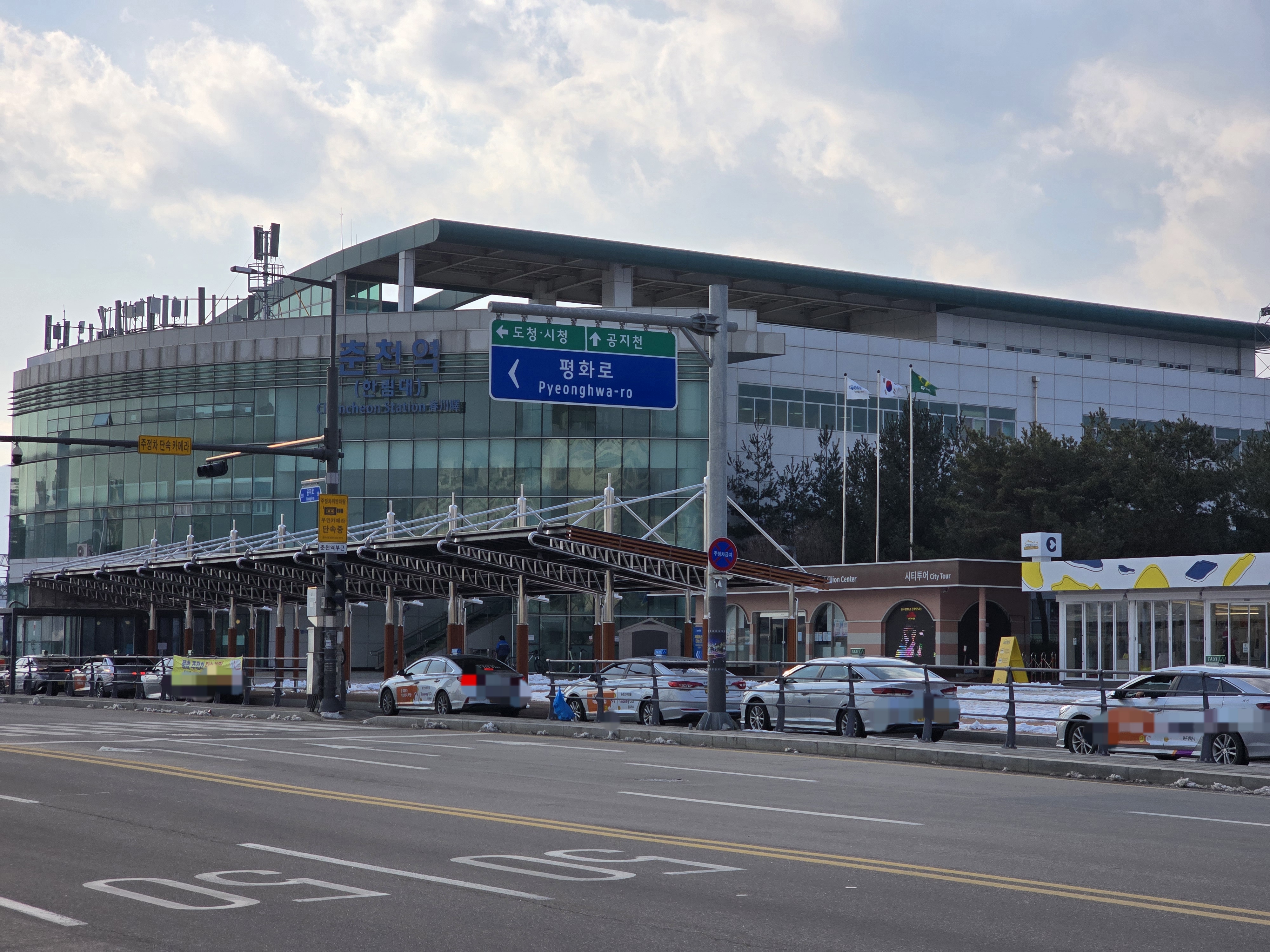 춘천역에서 출발하는 화천이나 양구 방면 시외버스는 춘천시외버스터미널에서 출발하는 버스이므로 춘천역에는 약 7분후에 도착한다고 보면 된다.