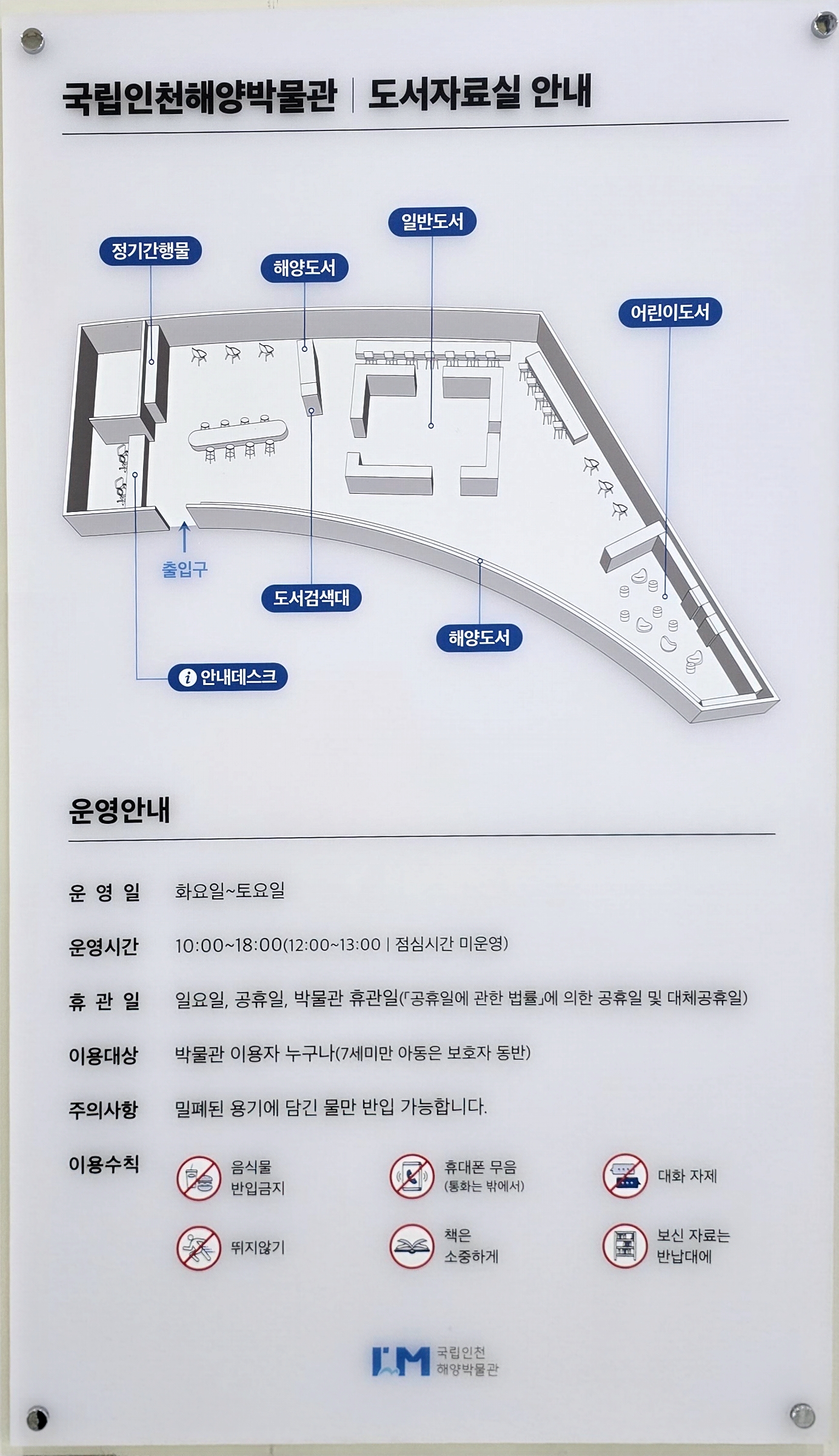 인천 해양박물관 해양자료실 운영시간은 화~토요일 10시~18시까지 운영된다.